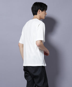 テレコデザインがポイントのUネックTシャツ。シンプルながらも立体感のある生地表面が、さりげないアクセントにぴったりの1枚です。