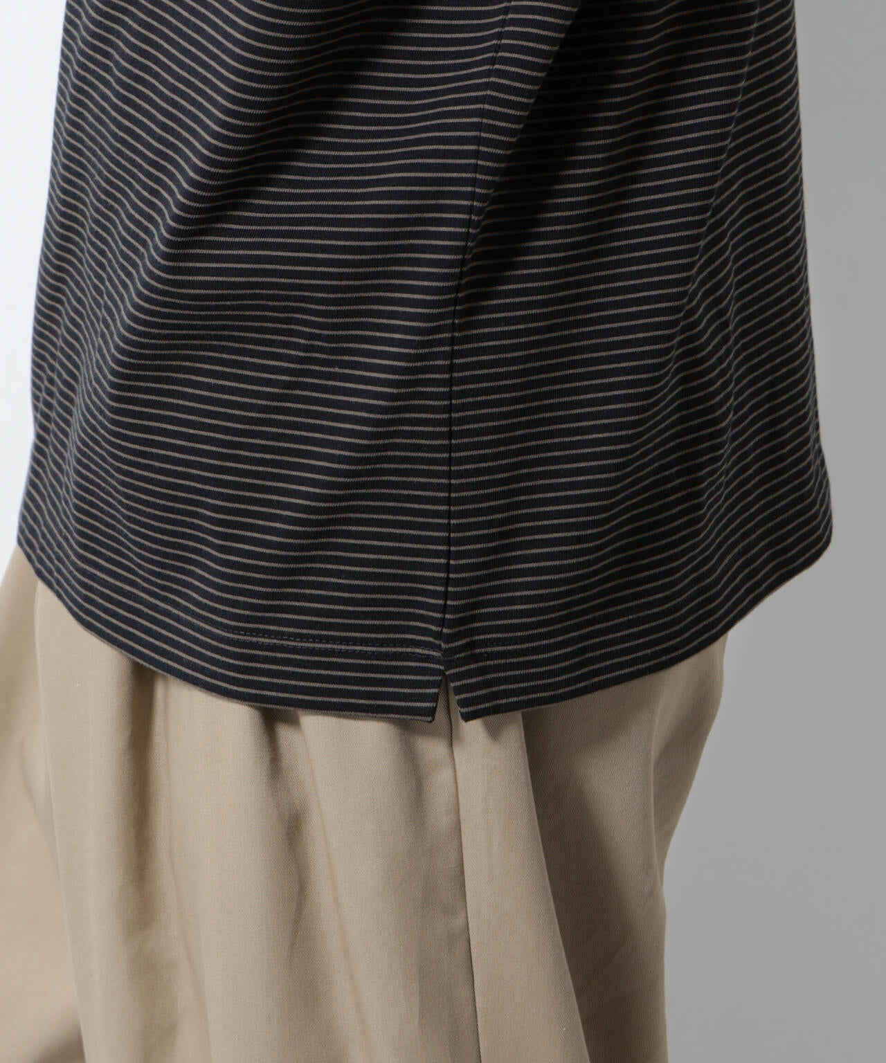 毛羽を抑えた高級感漂うオリジナルのボーダーTシャツ。シルケット加工を施した素地はカジュアルになりすぎないので、きれいめなスタイリングにマッチする一枚です。