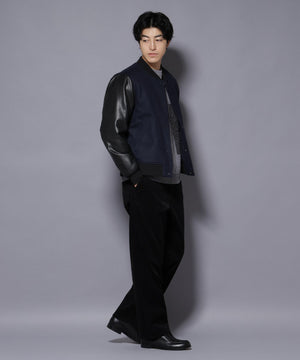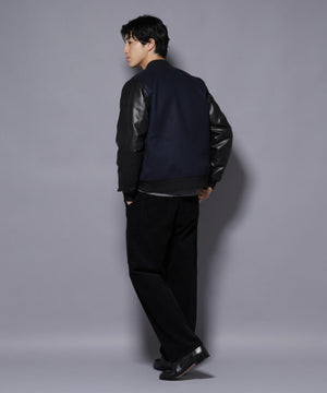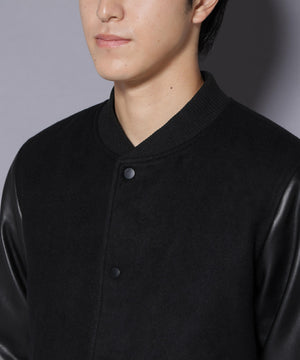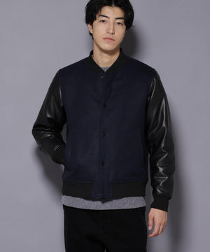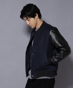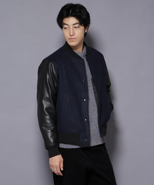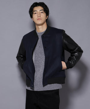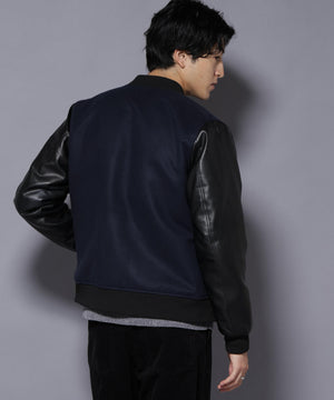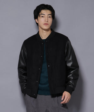 ・身頃はテックメルトン、袖にはフェイクレザーを使用したスタジャン