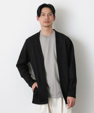 「フェイクスエード」シリーズのトッパーカーディガン。伸縮性だけでなく、心地よいタッチ感を演出した生地を採用。軽い羽織としておすすめのアイテムです。