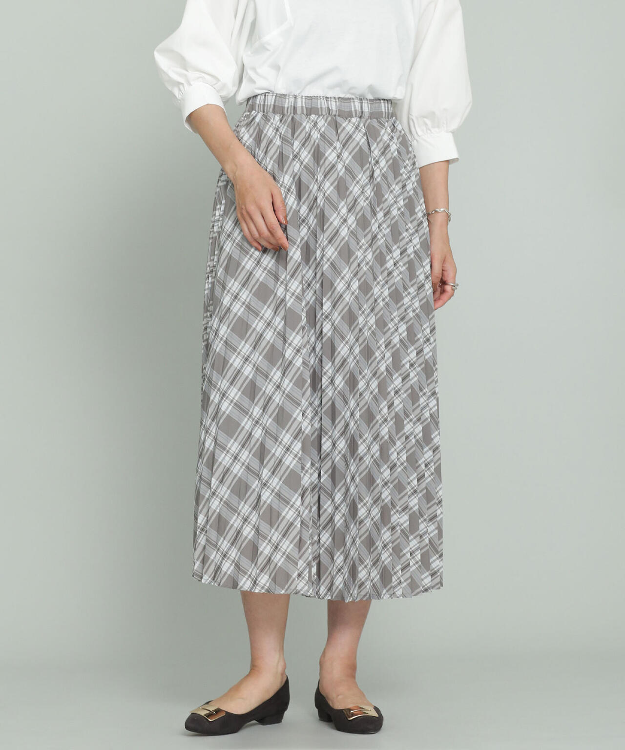 細かなプリーツデザインで女性らしいく可愛らしいチェックのスカート。裏地付きで透ける心配もない、一枚あるとコーデの差し色になるアイテムです!
