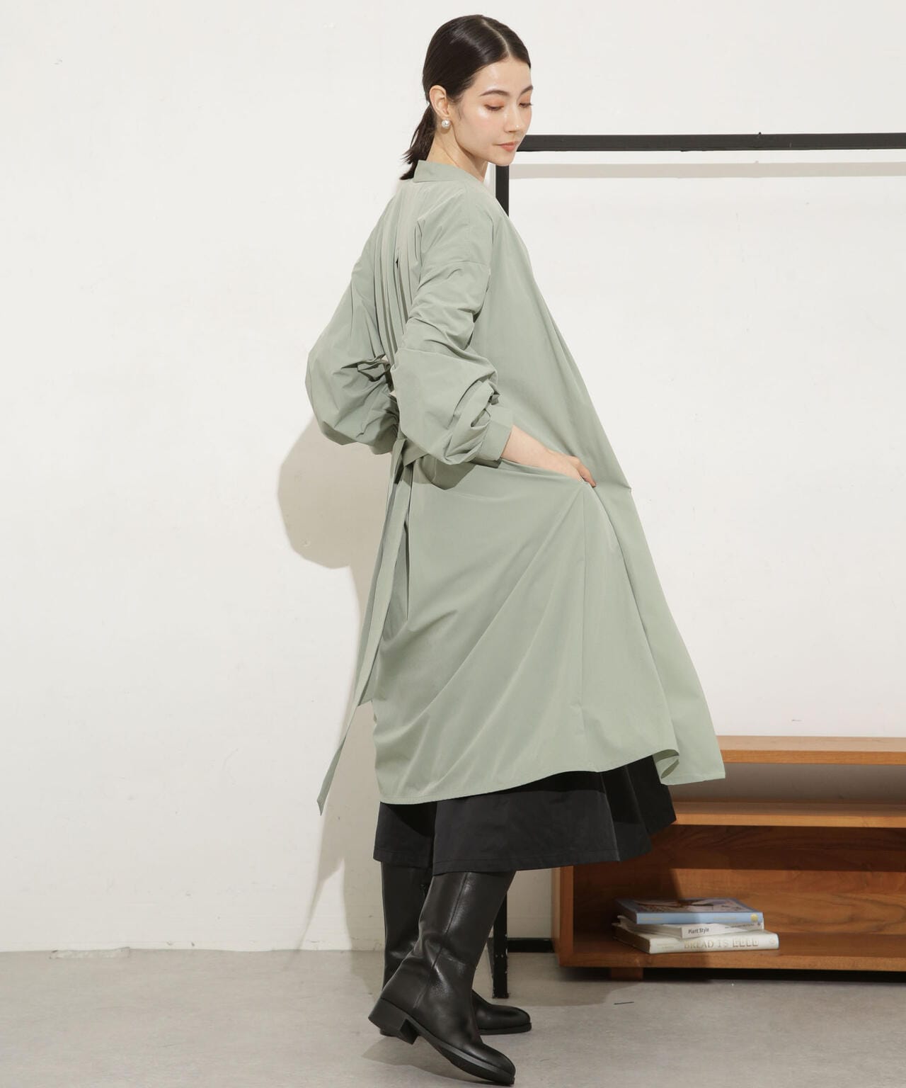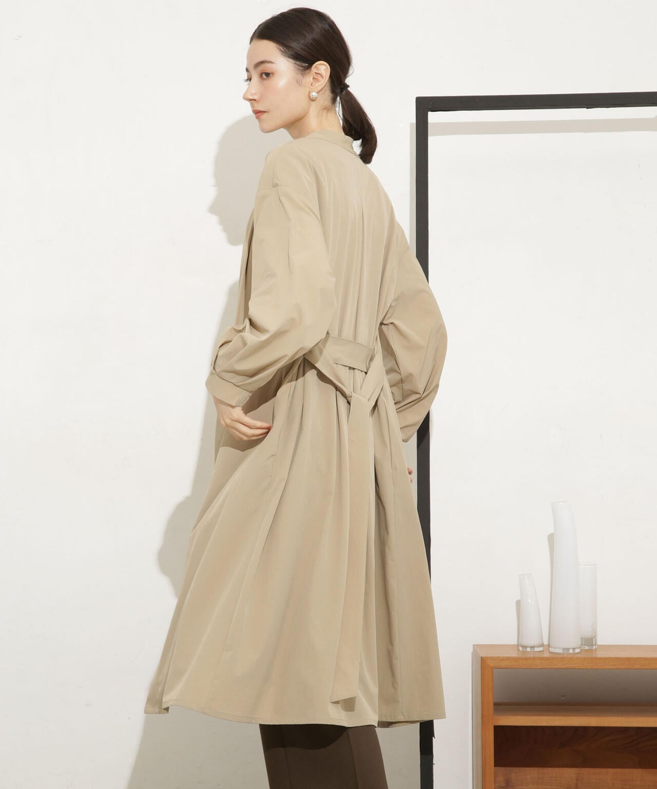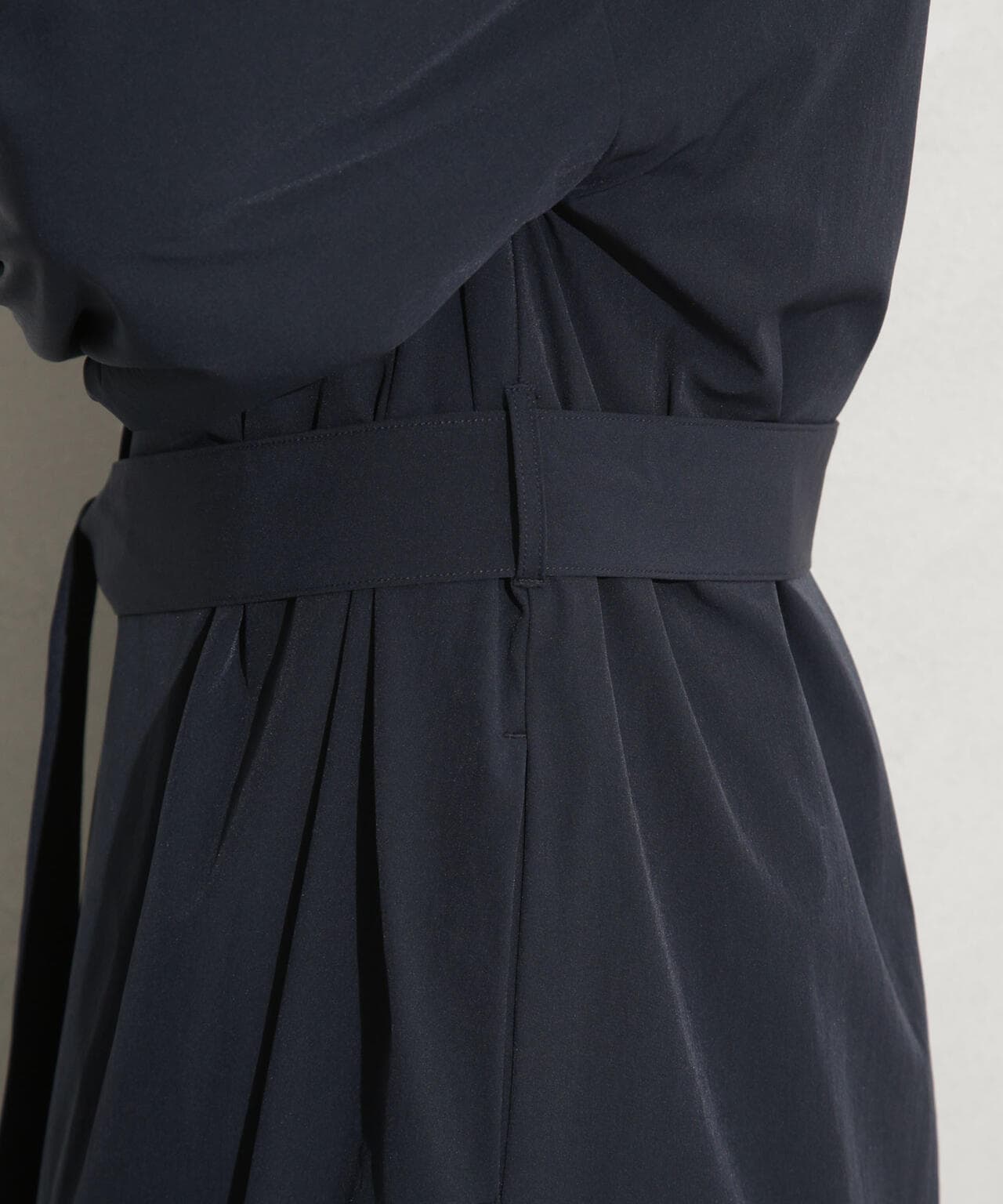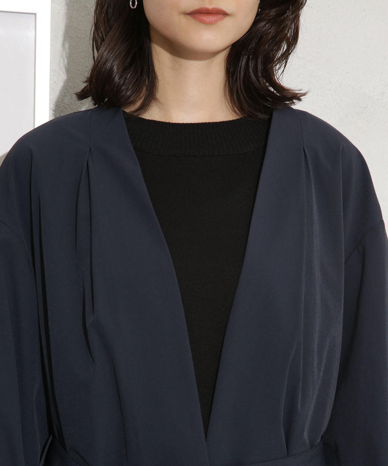 ・ノーカラーのタック入りの衿が抜け感を演出
