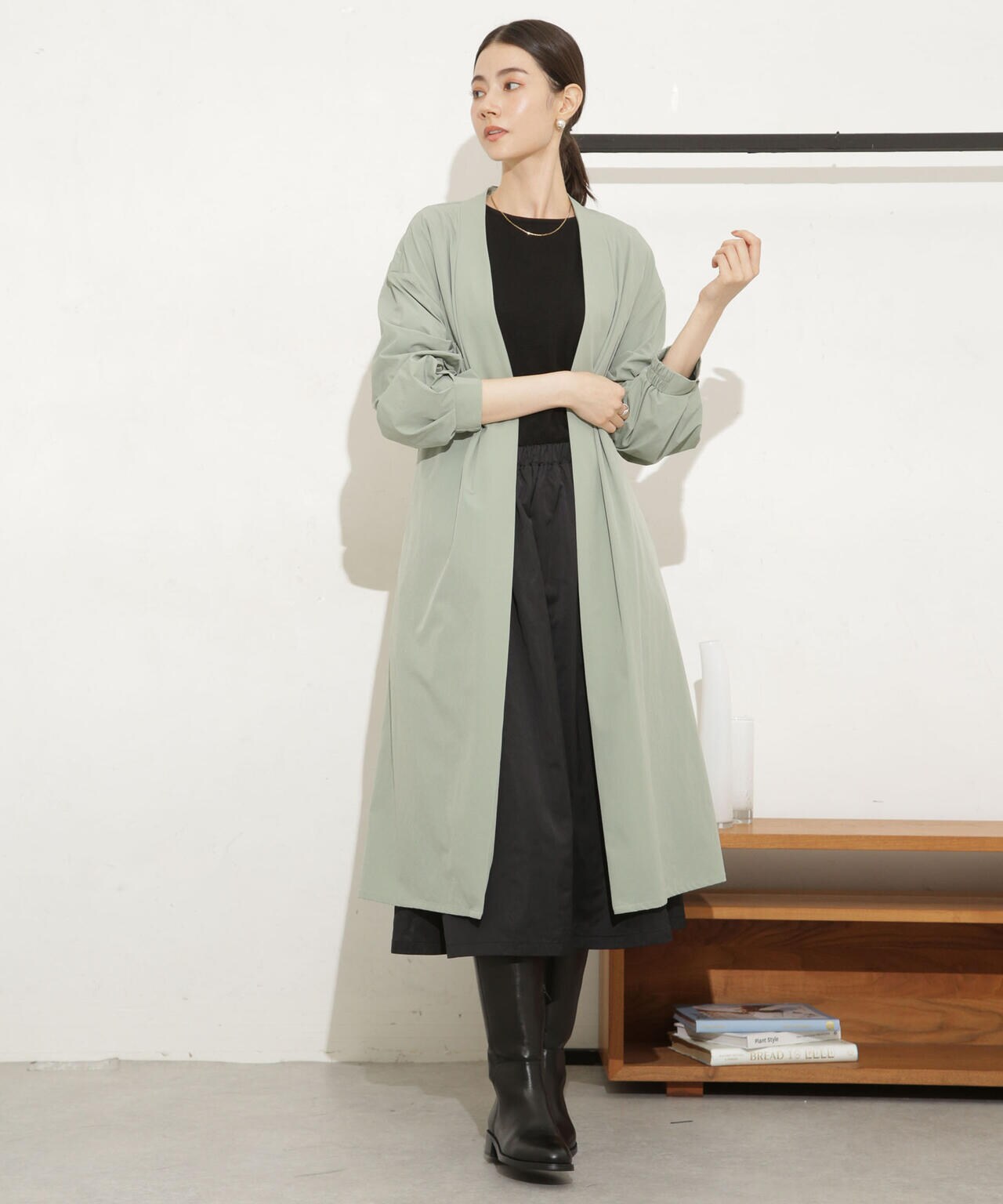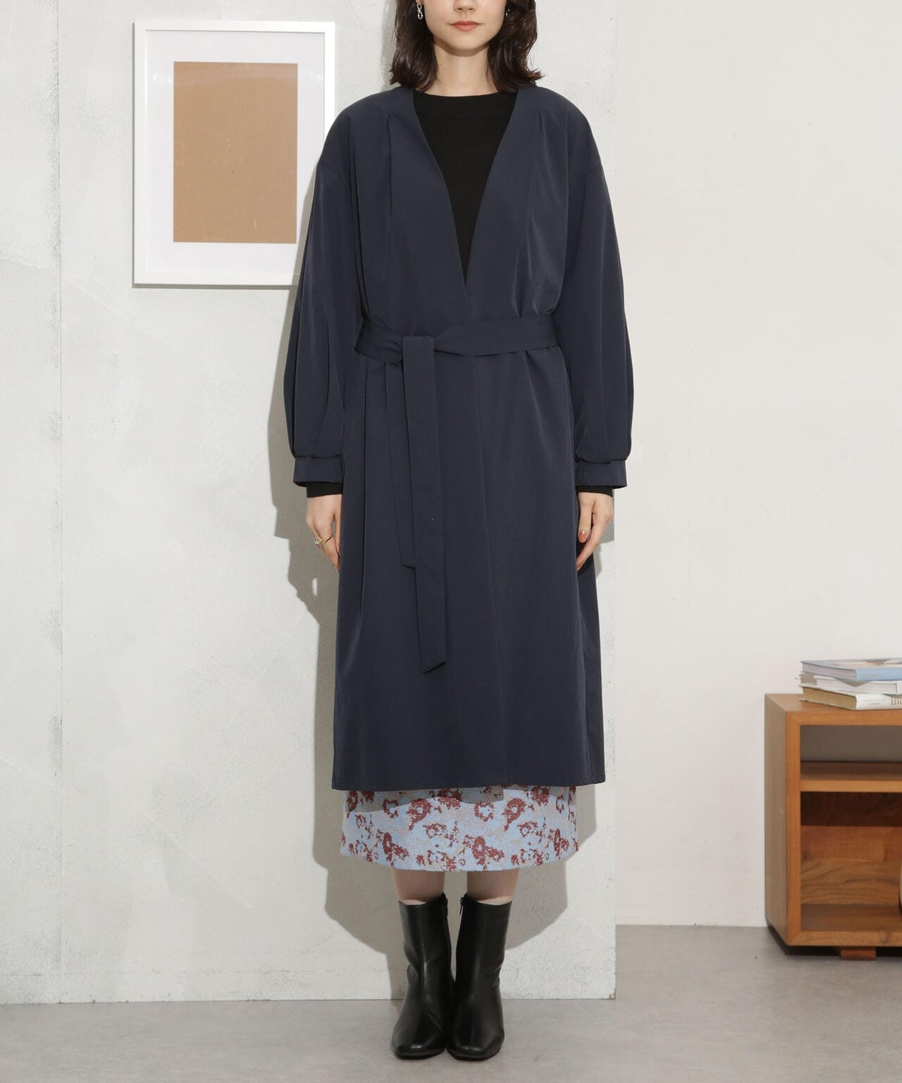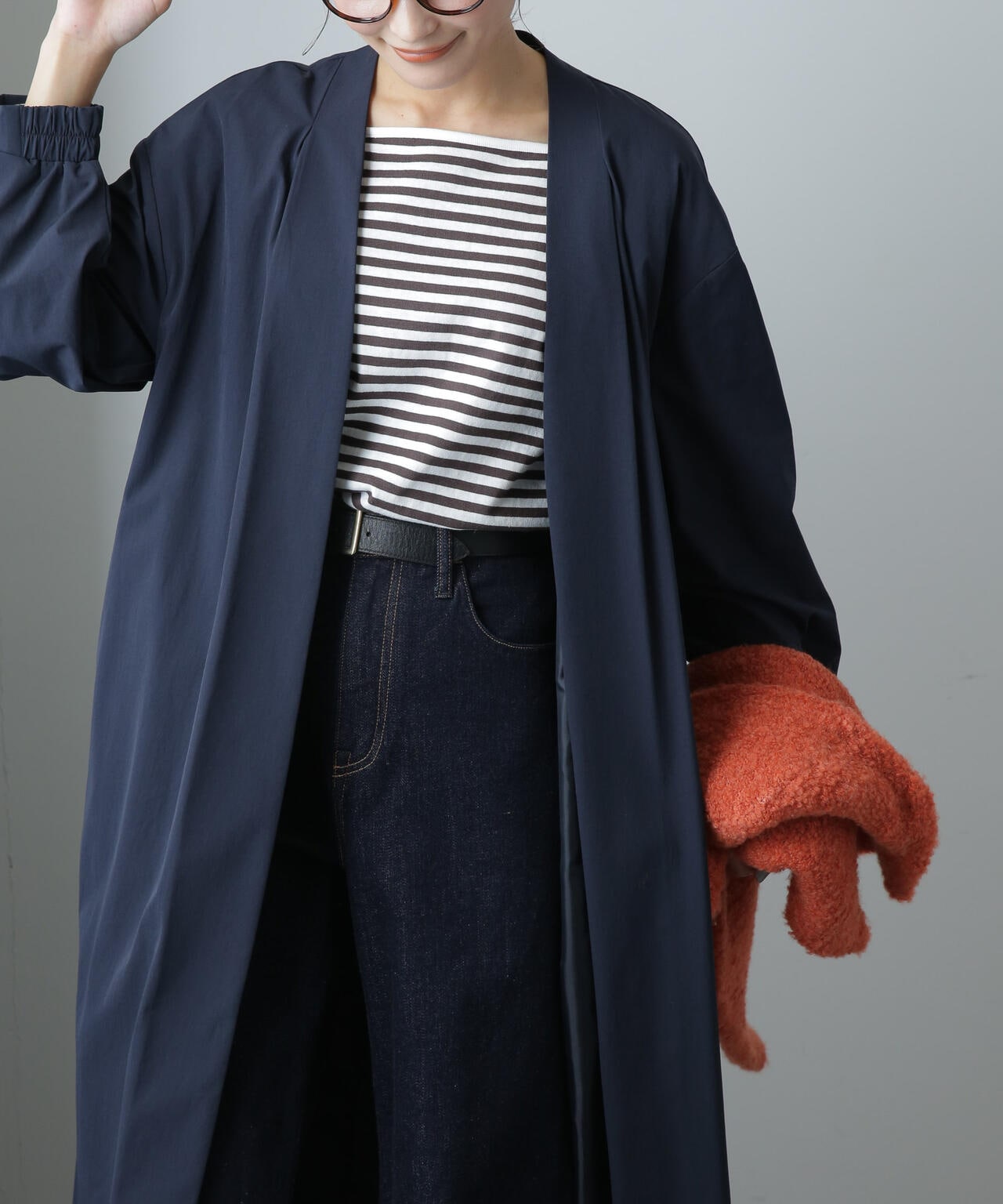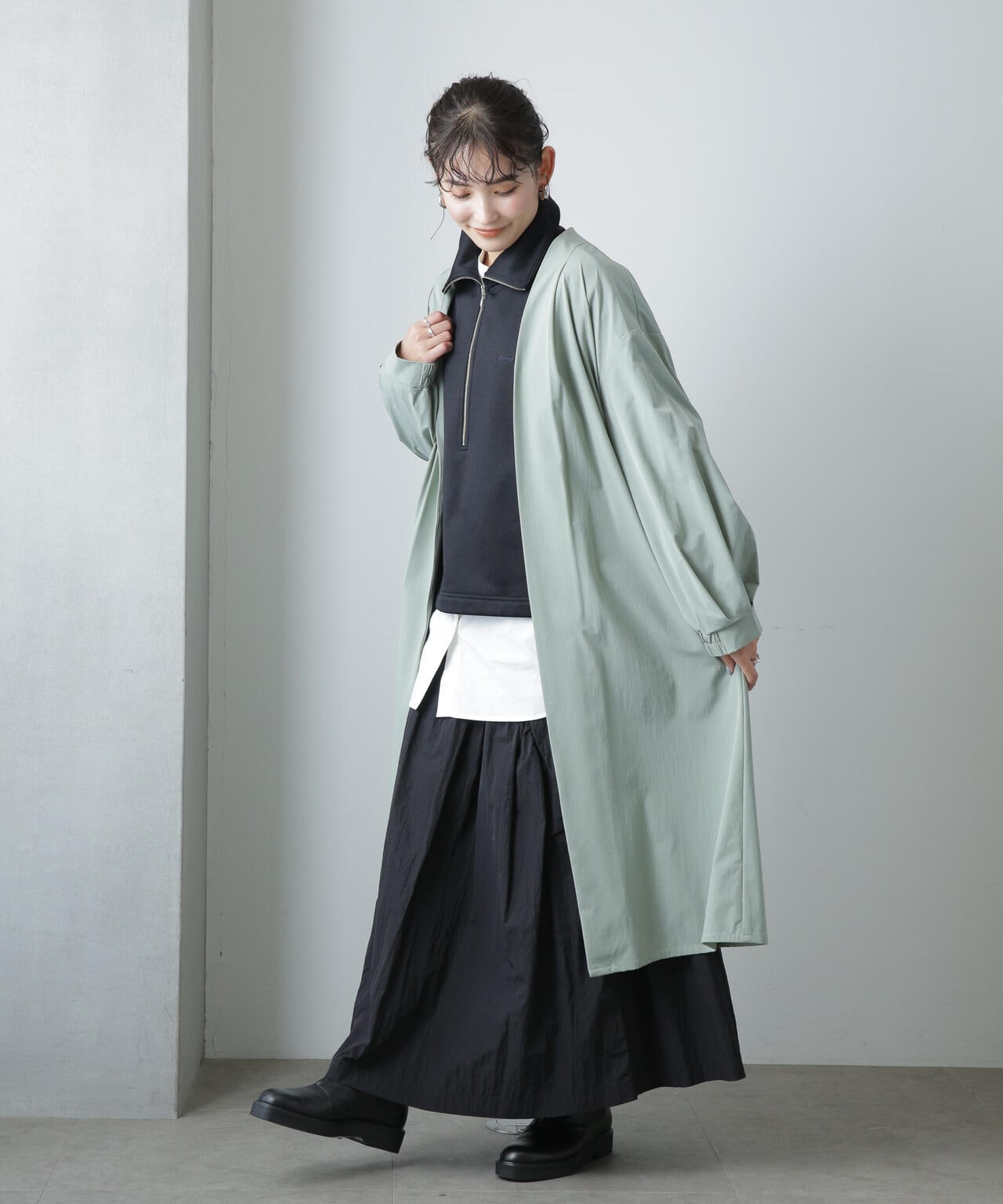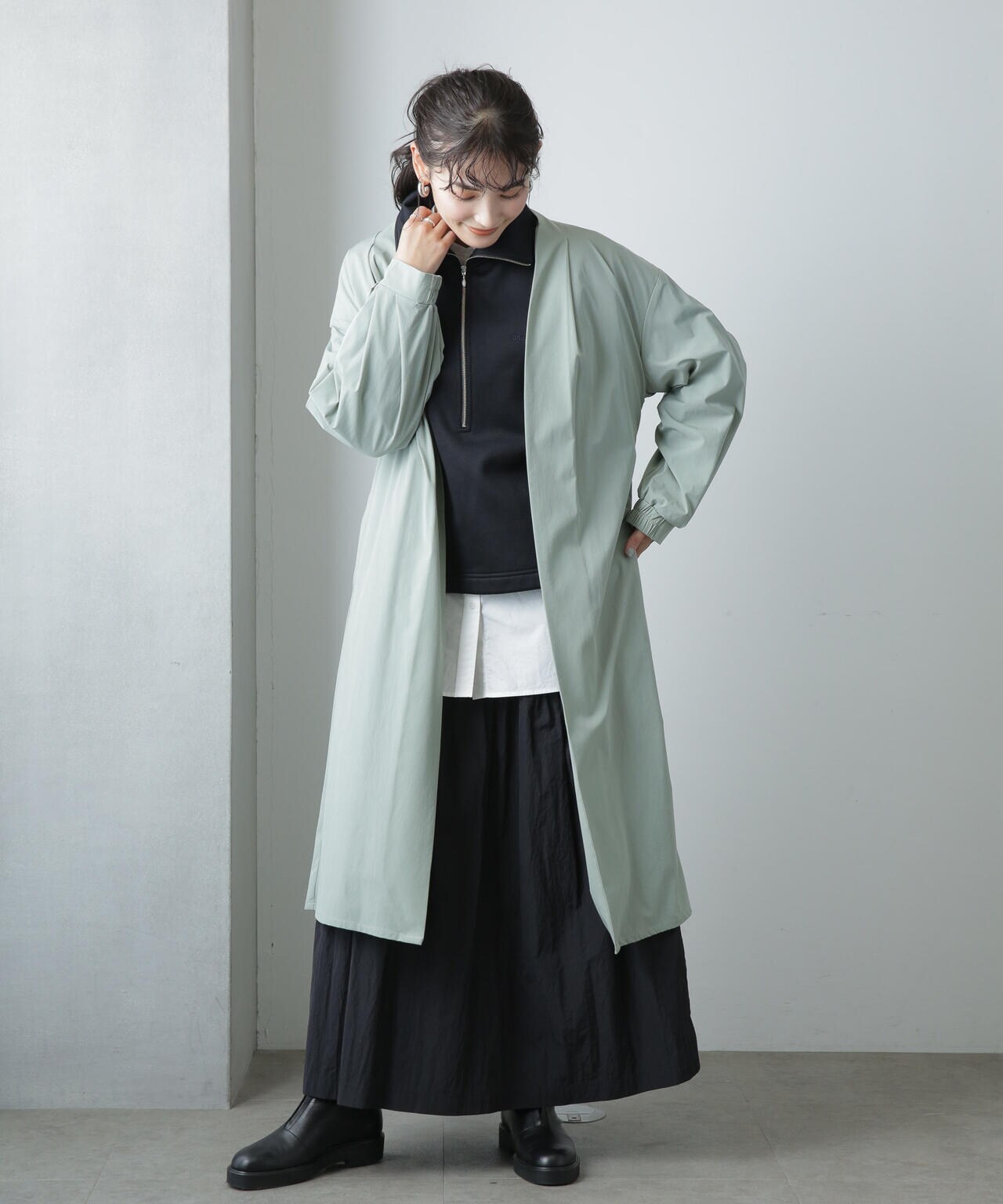 ・軽い着心地でロングシーズン着まわせるノーカラーロングコート