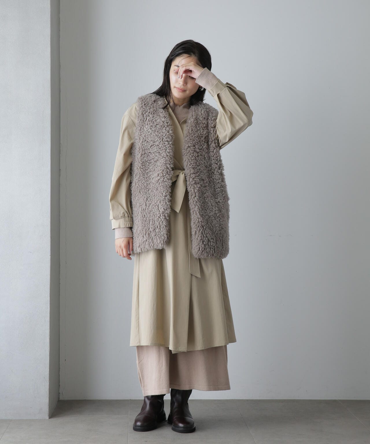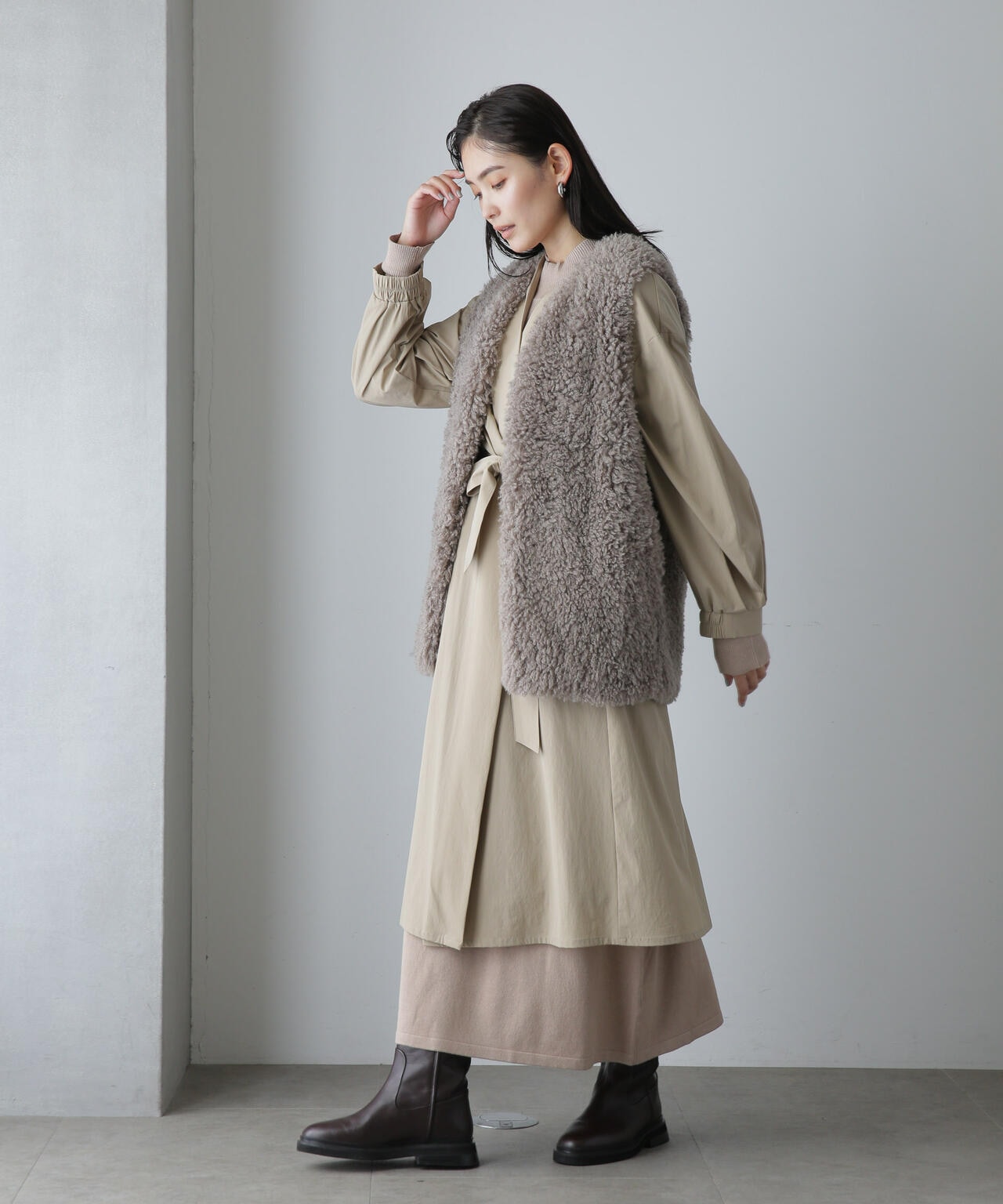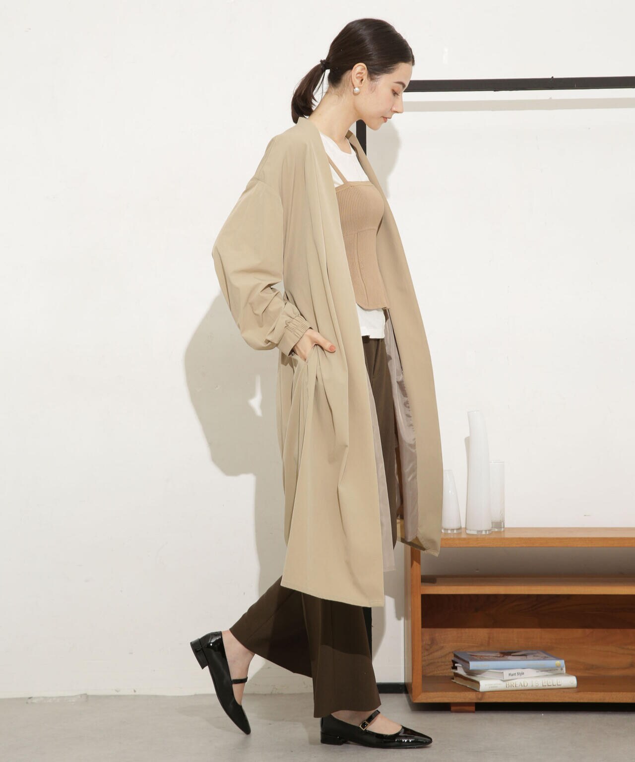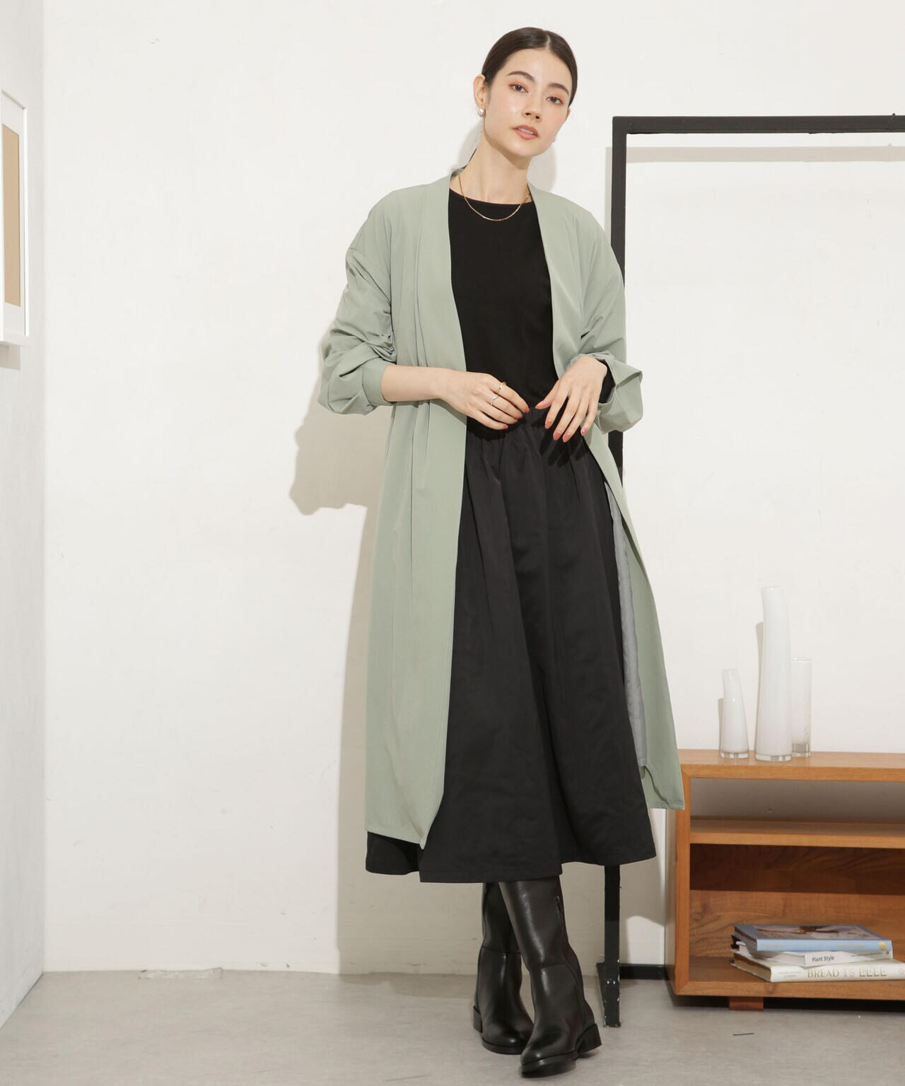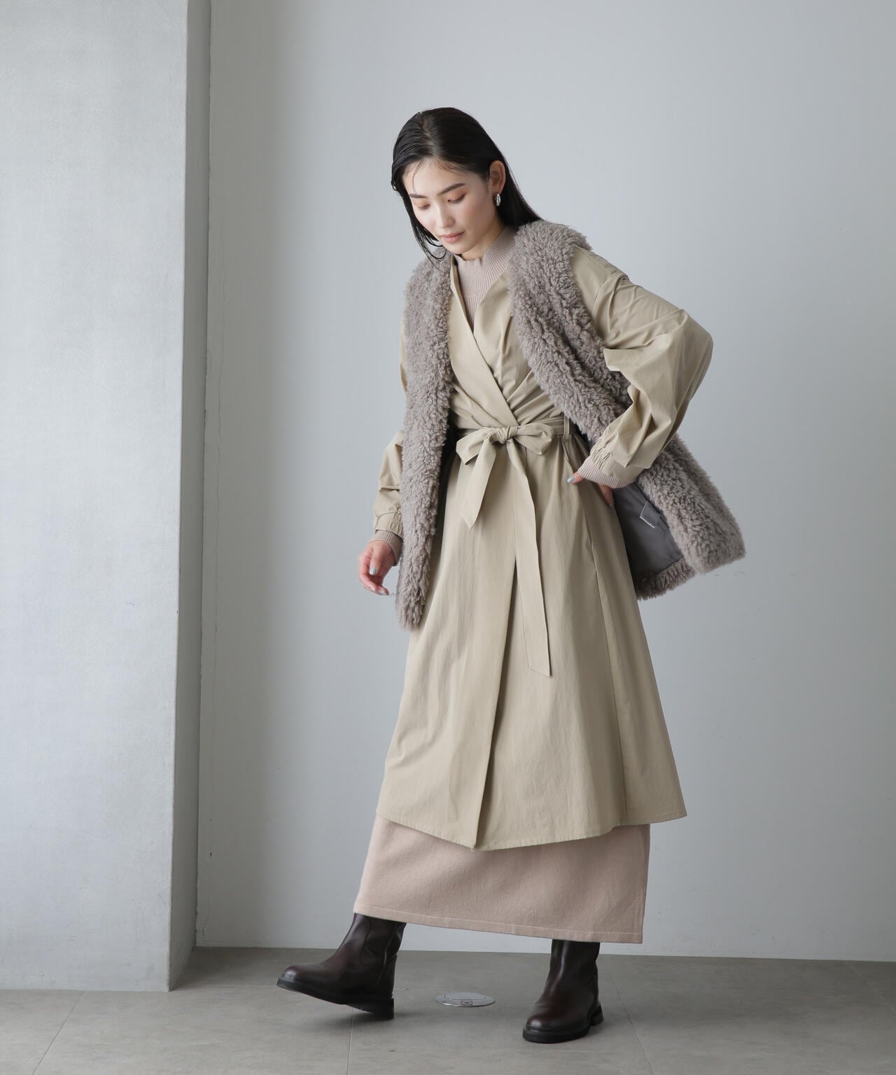 ・軽い着心地でロングシーズン着まわせるノーカラーロングコート