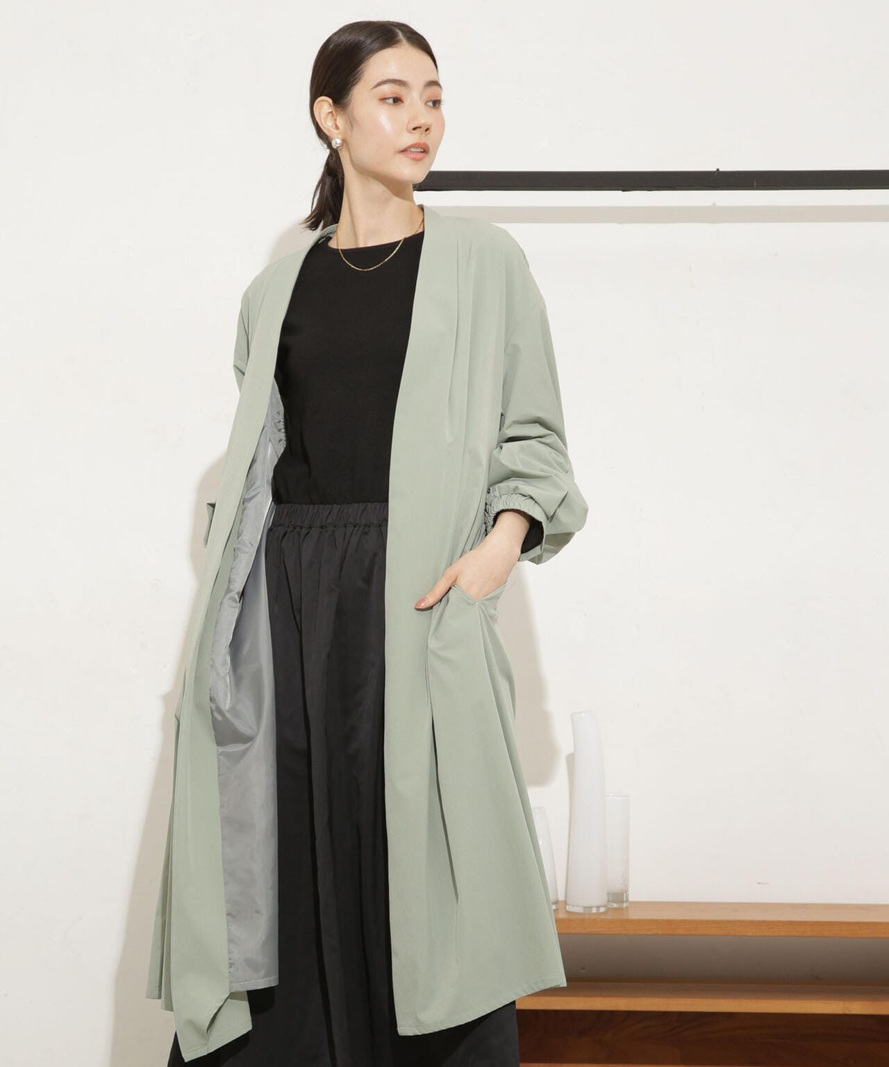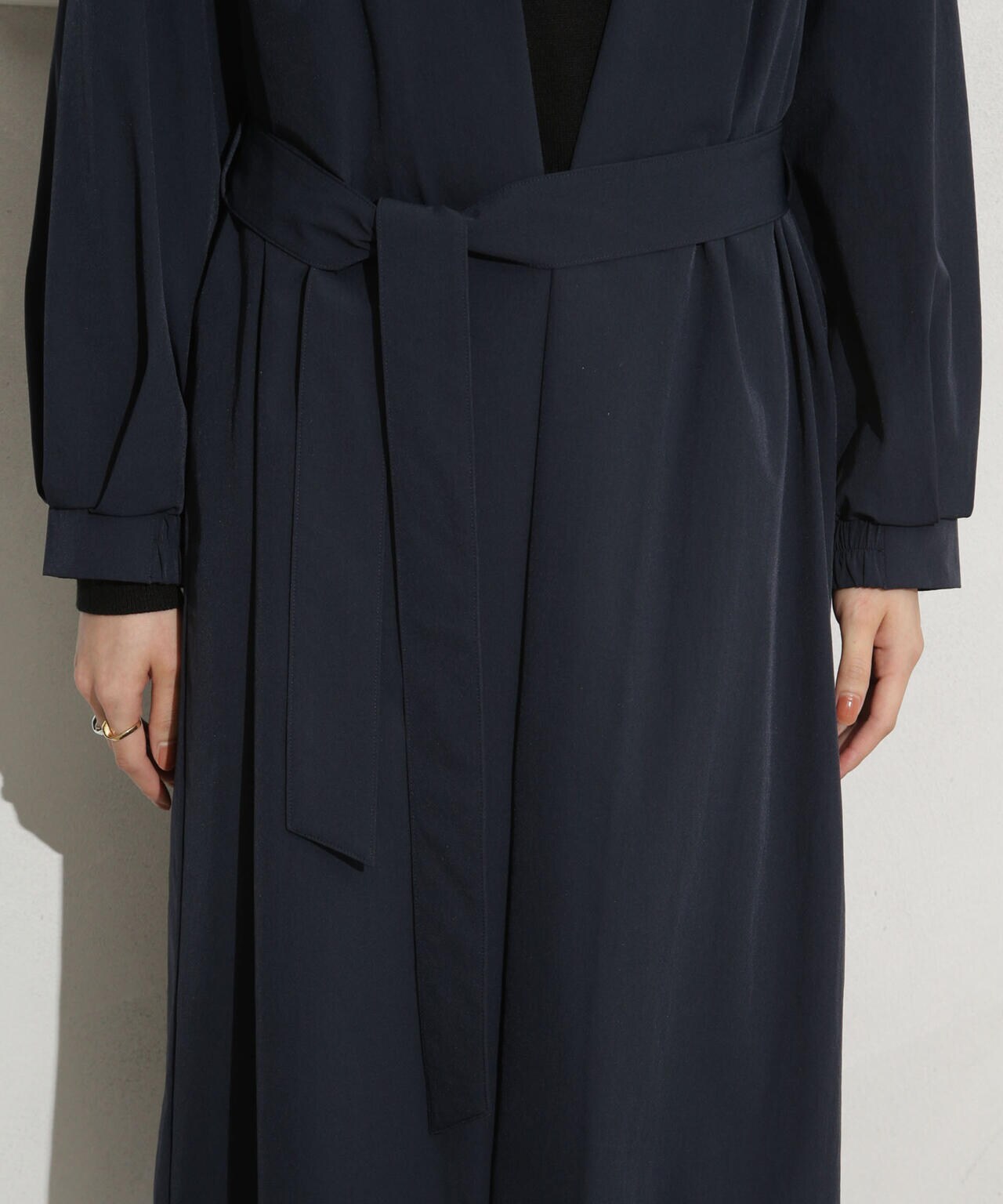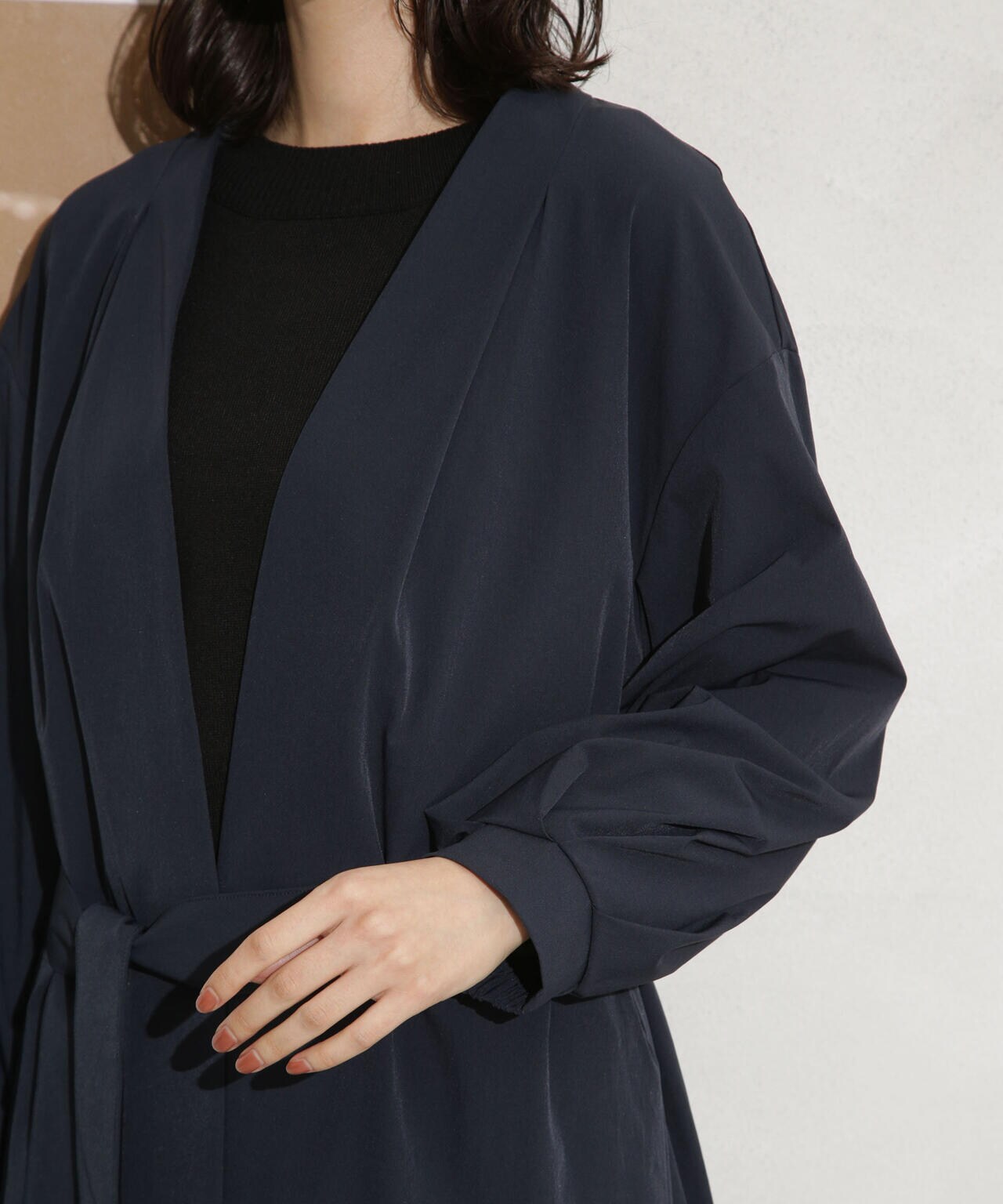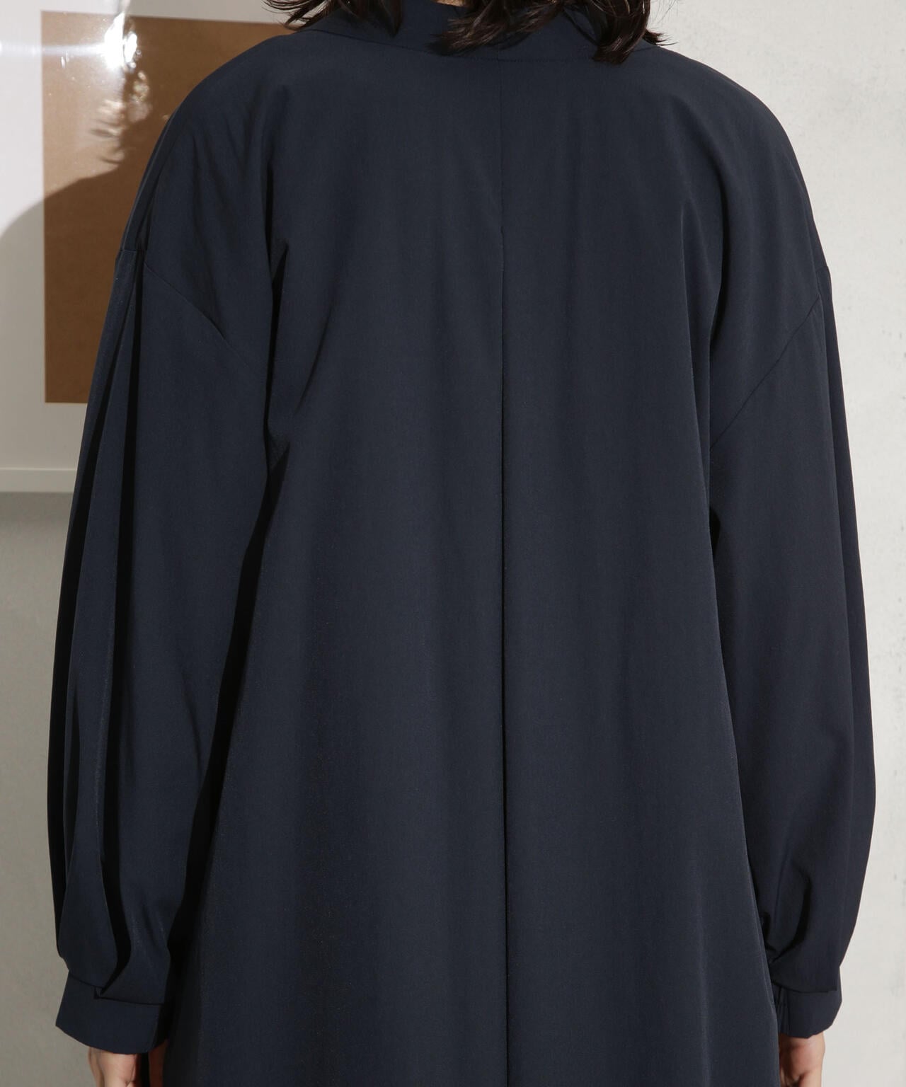 ナイロンストレッチノーカラーロングコート