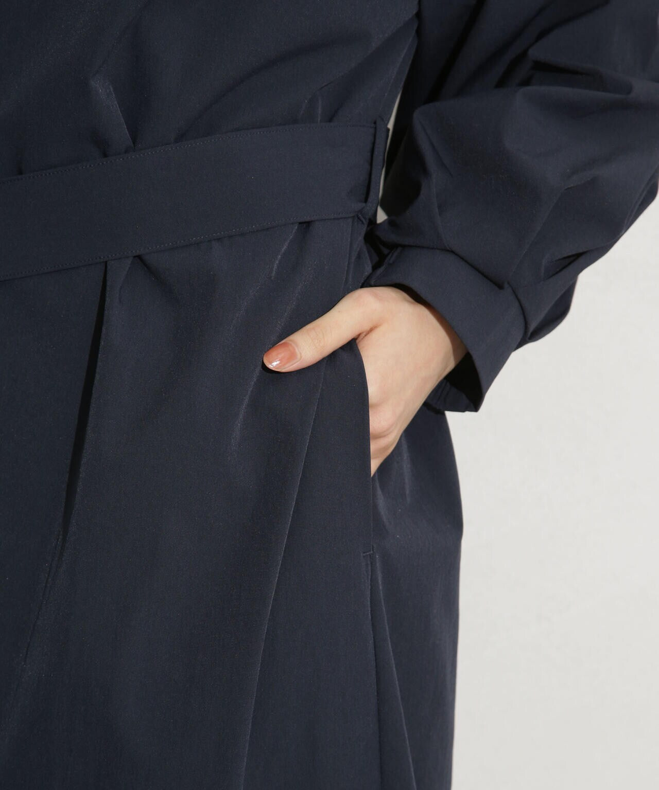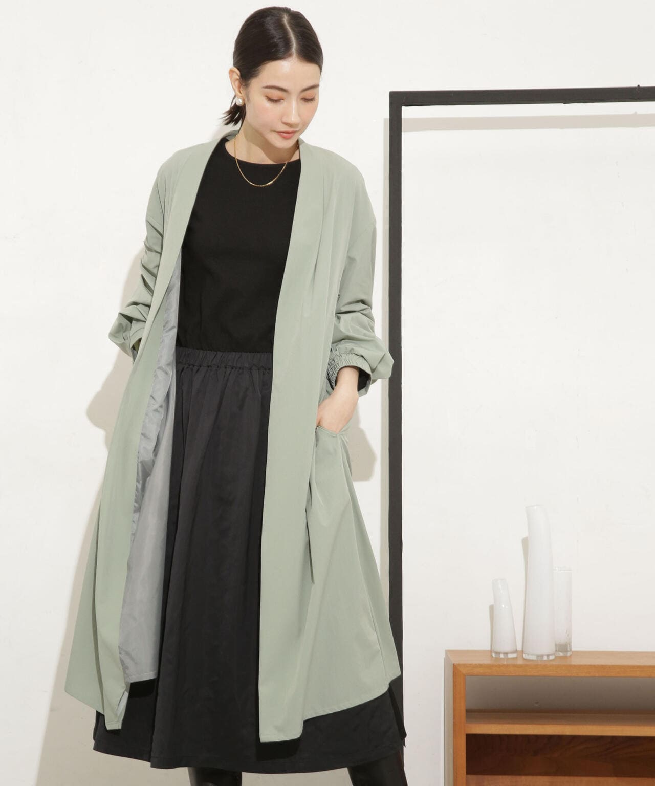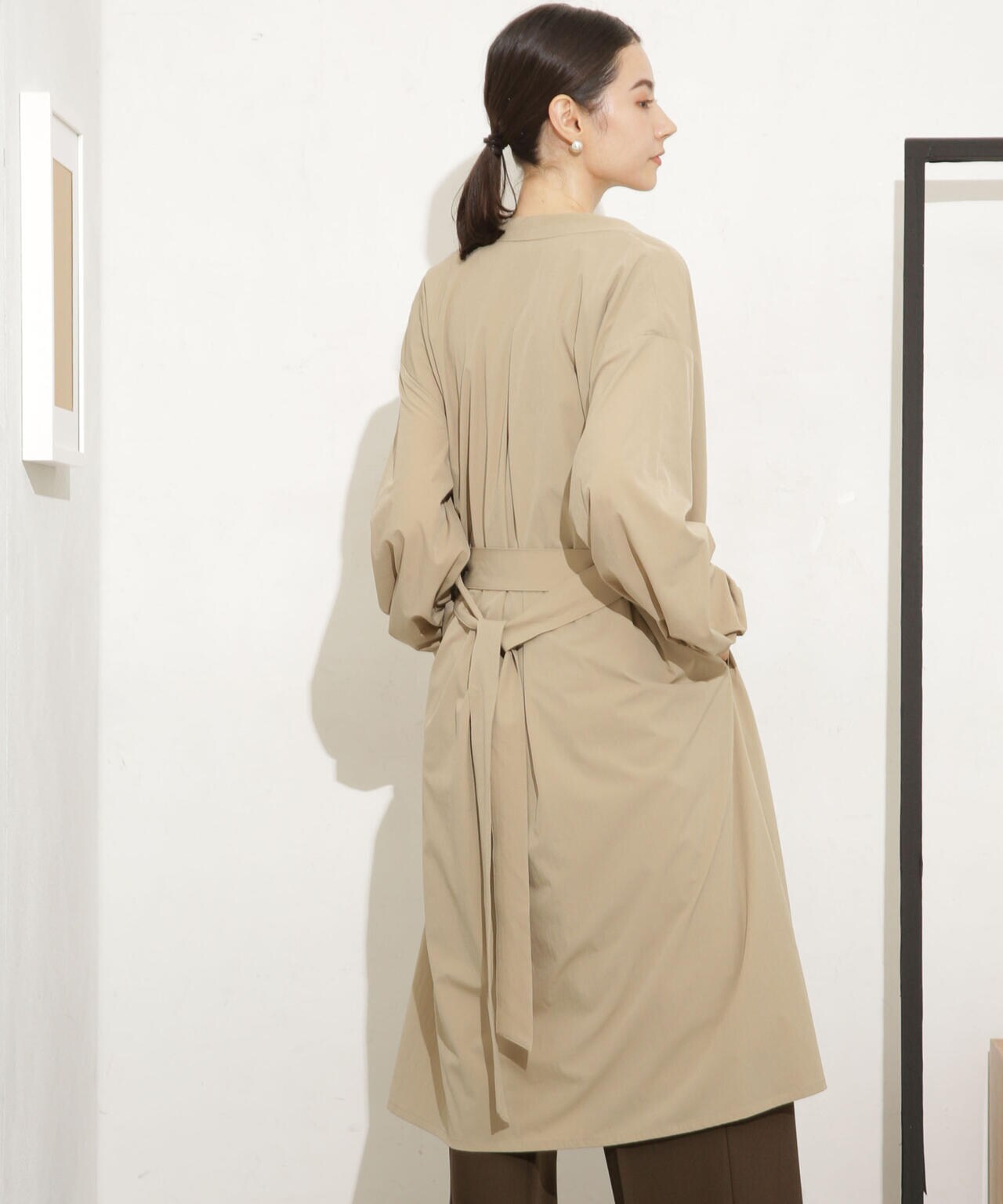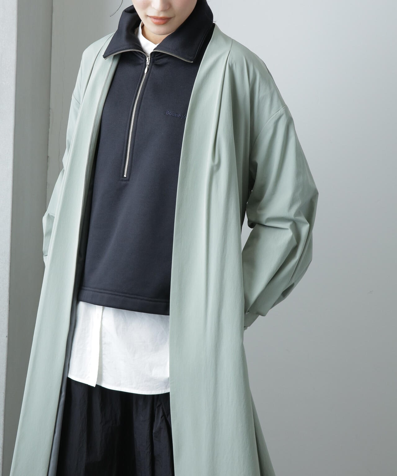 ナイロンストレッチノーカラーロングコート