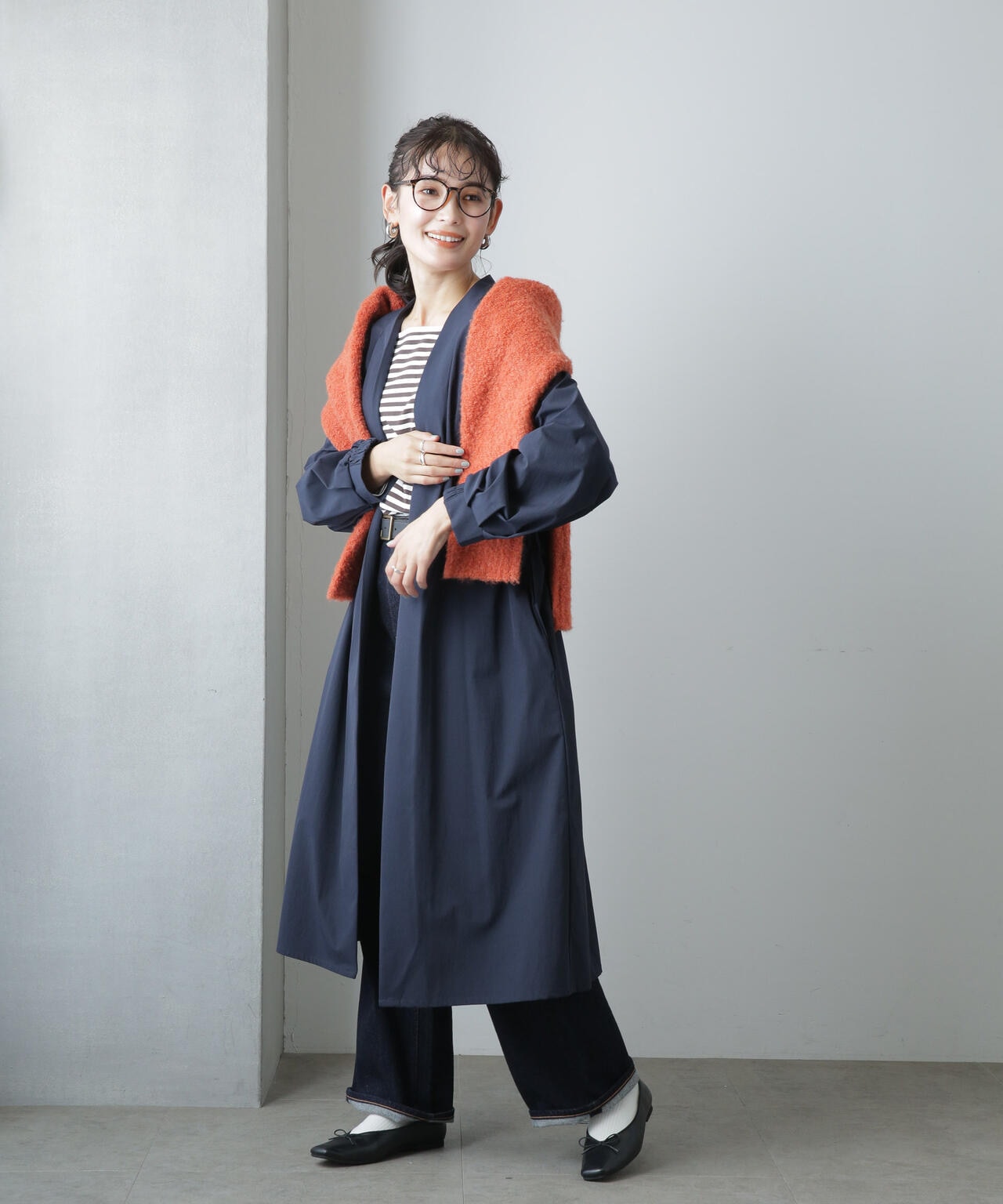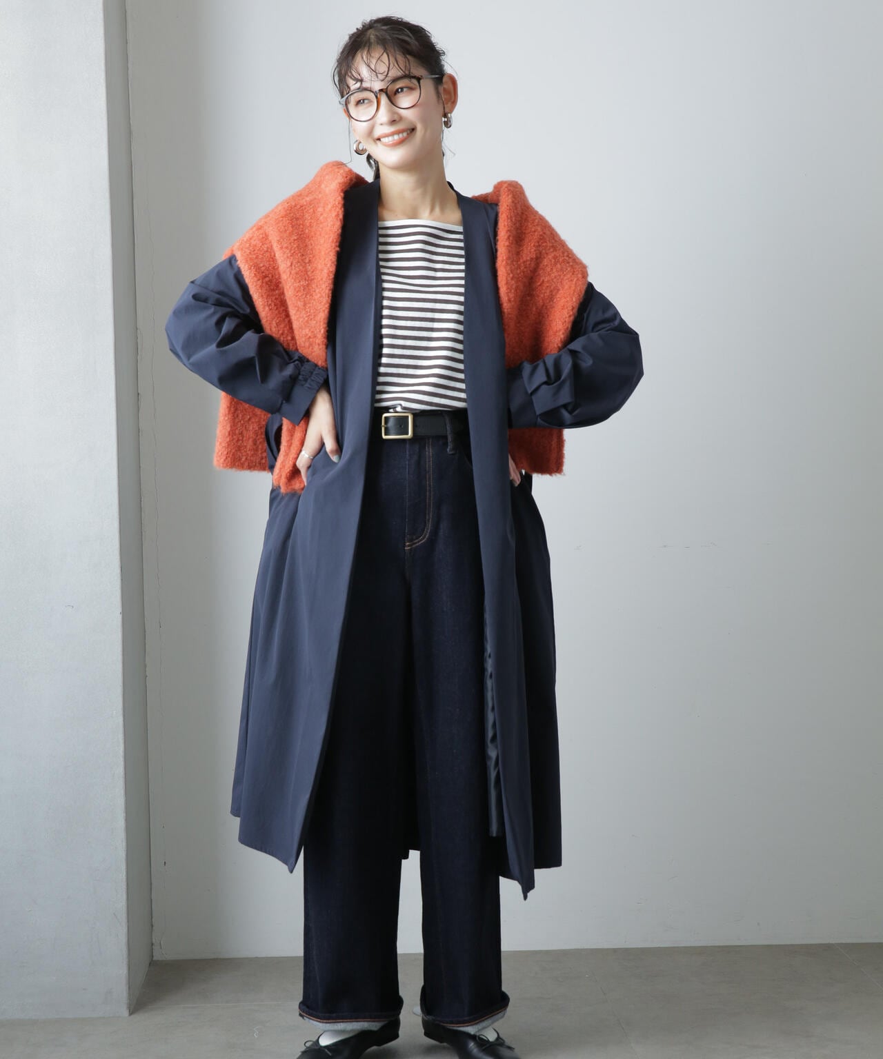・ベルトでウエストマークしてきちんと感を出すスタイリングもオススメ