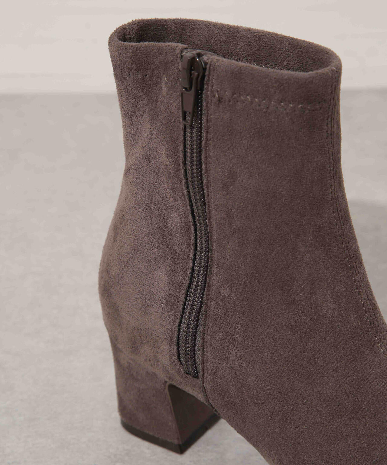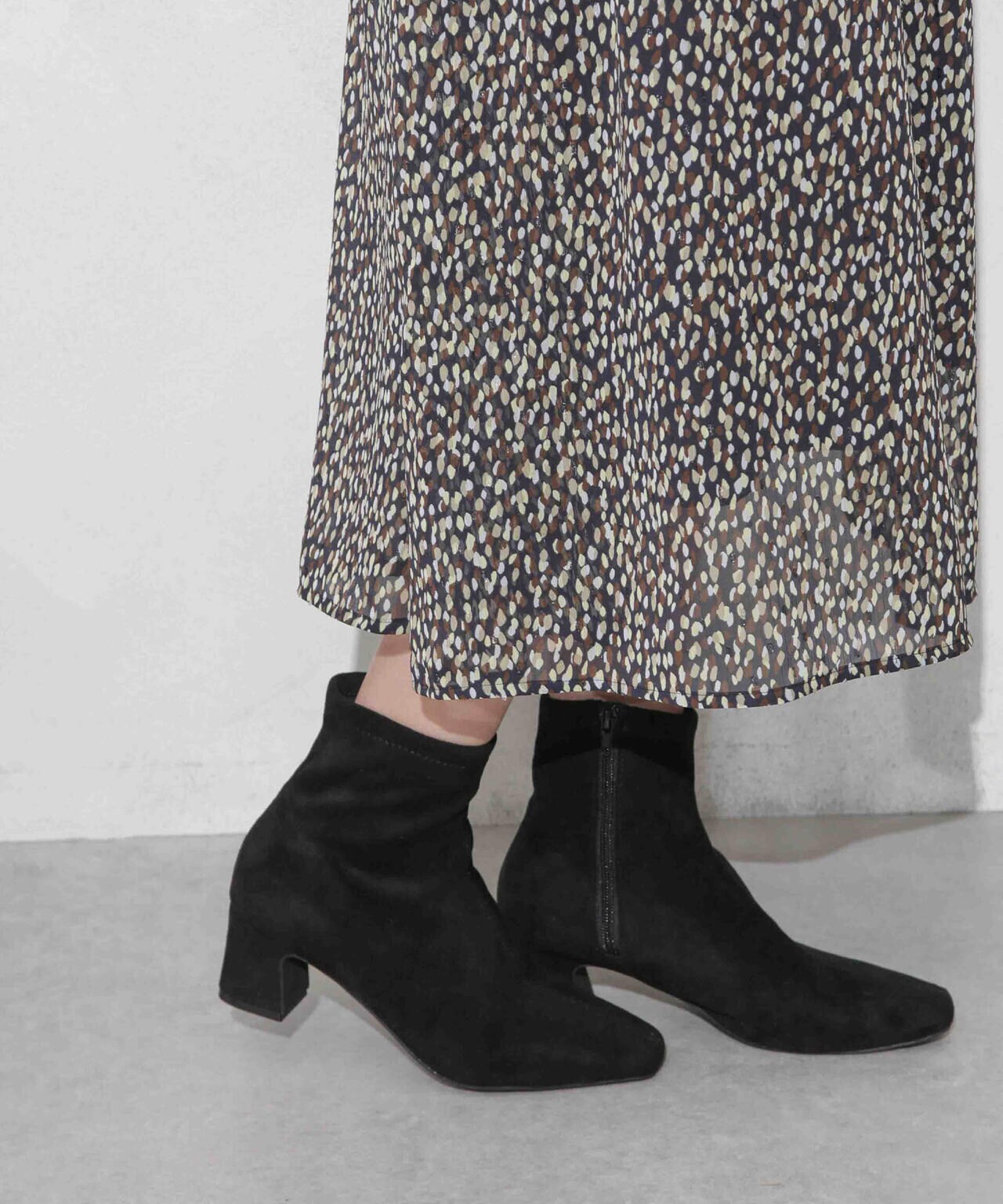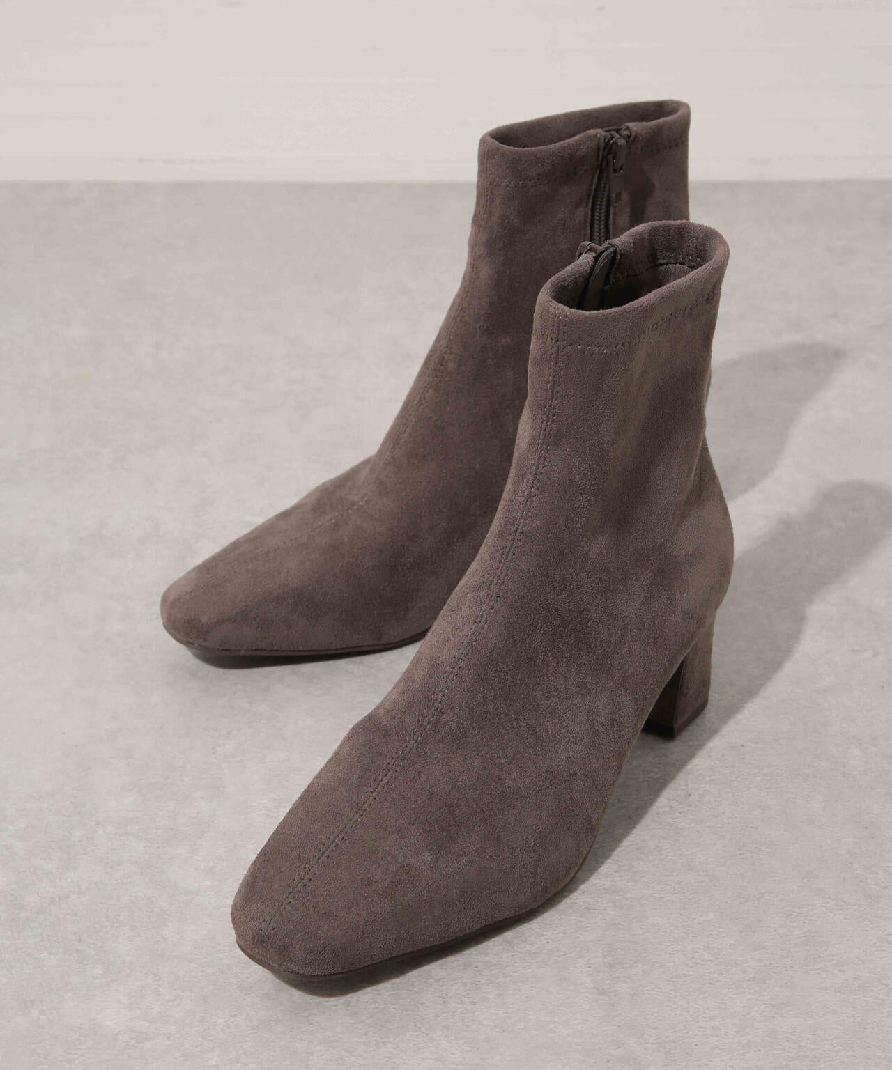 すっきりキレイな細見えシルエットを演出するショートブーツ。上品なアーモンドトゥや、スタイルアップを叶える程よい高さのチャンキーヒールがコーディネートを格上げ。ストレッチ性のある素材で履き心地が良く、デイリーから休日スタイルまで活躍します。