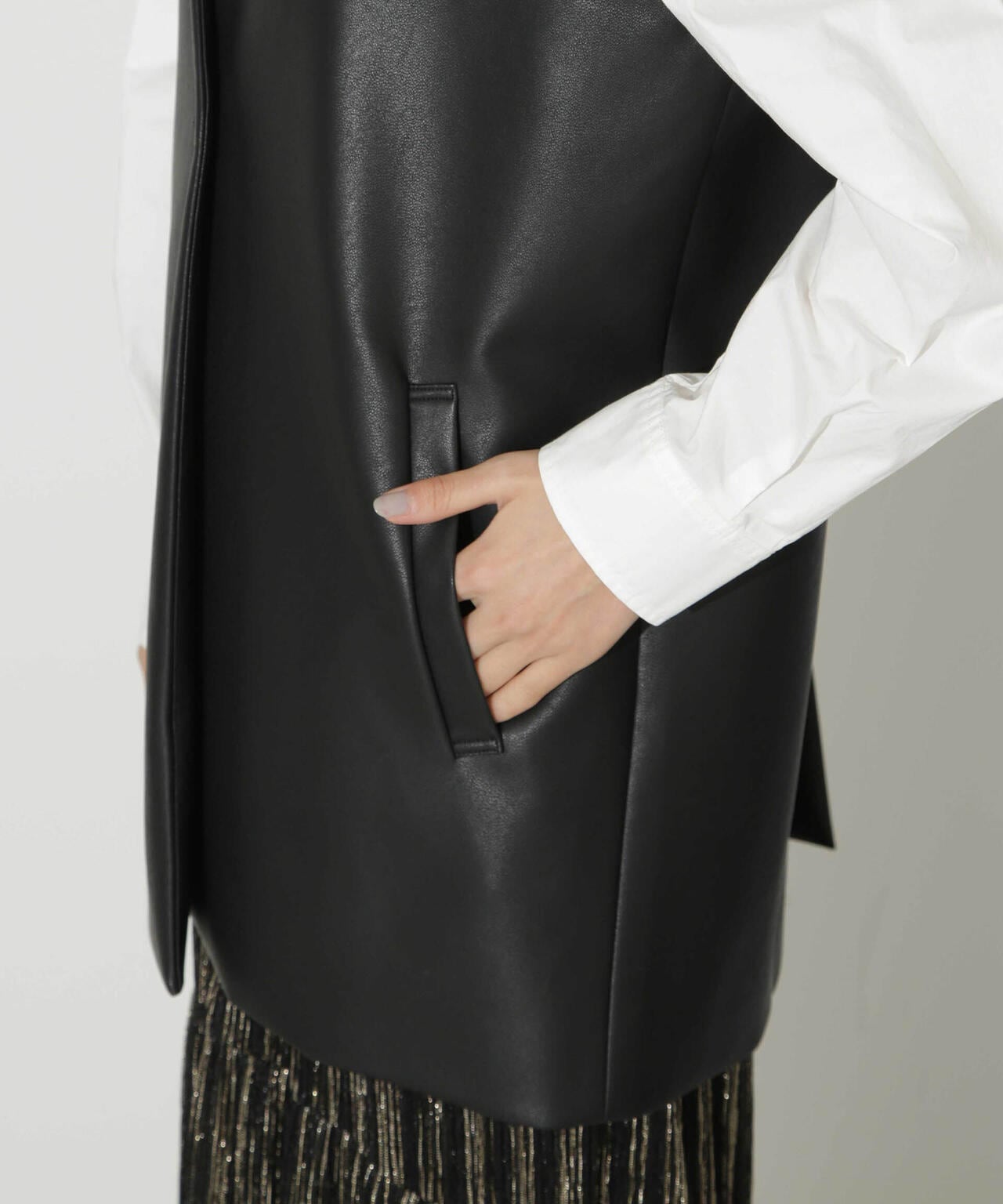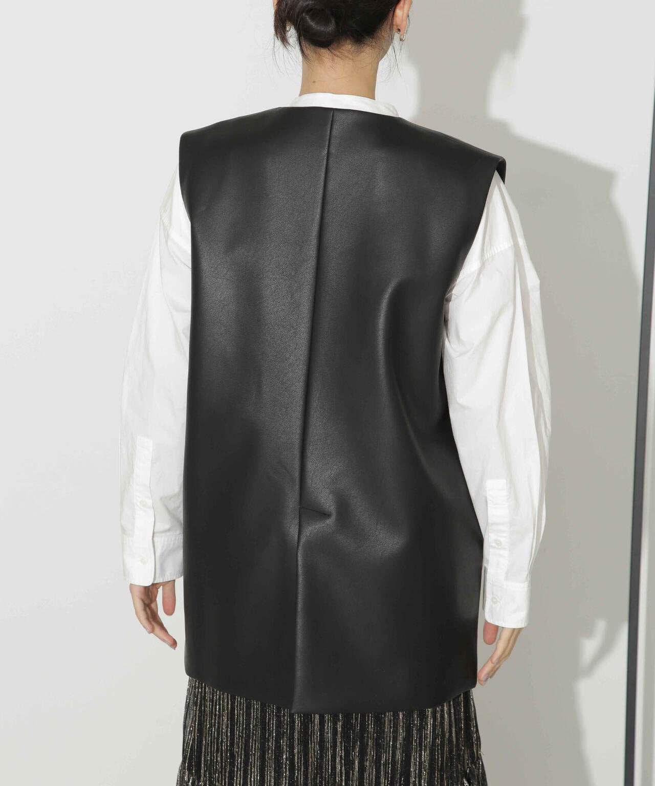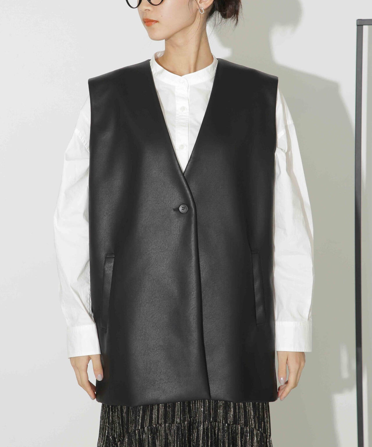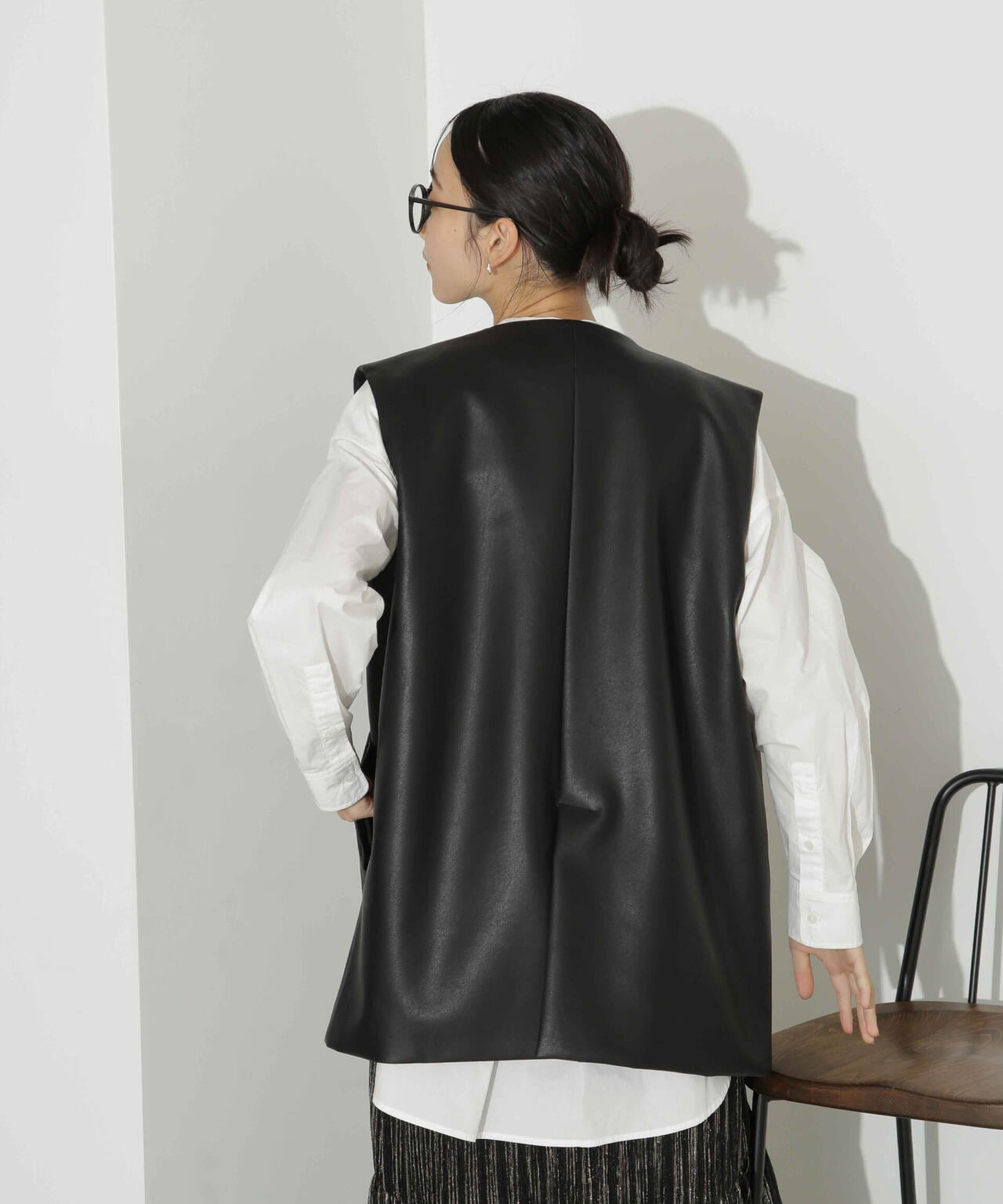 ・ディテールを削ぎ落した洗練感あるフェイクレザーベスト