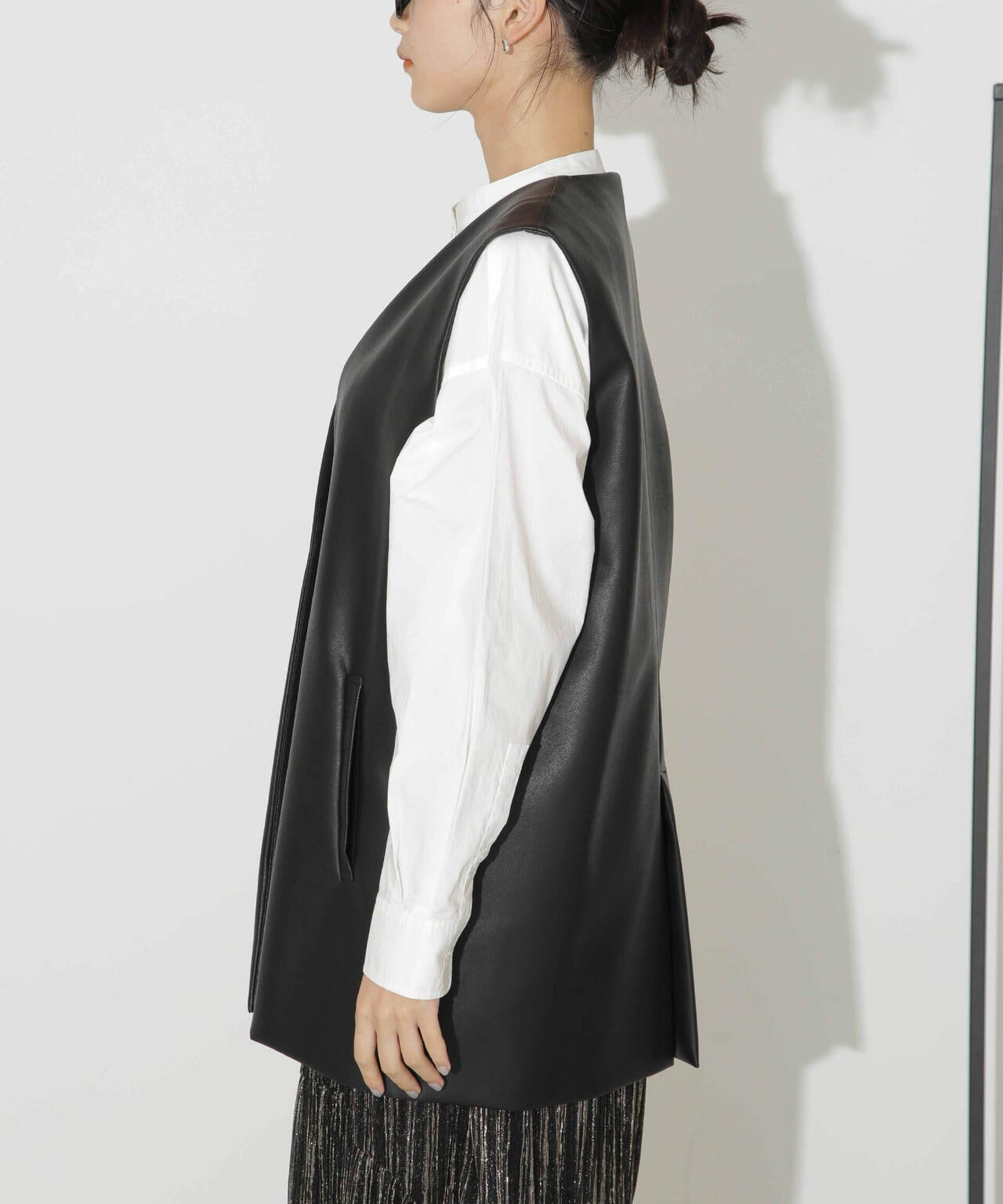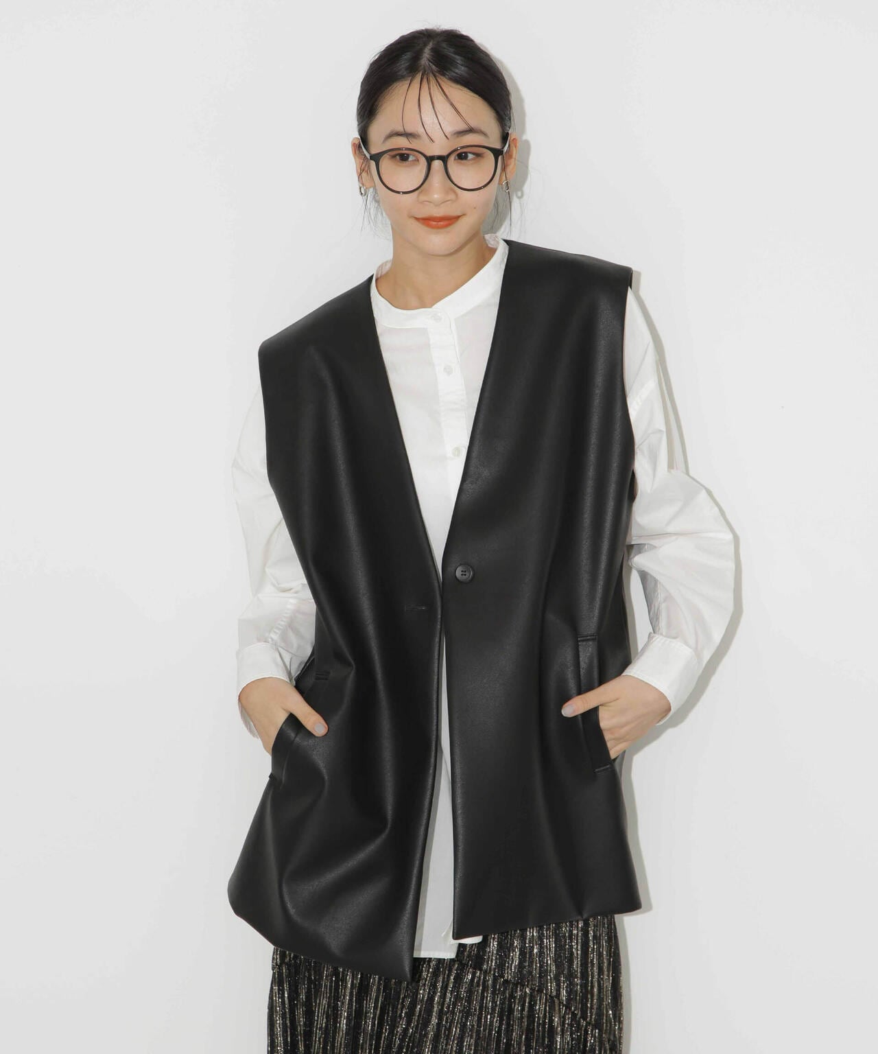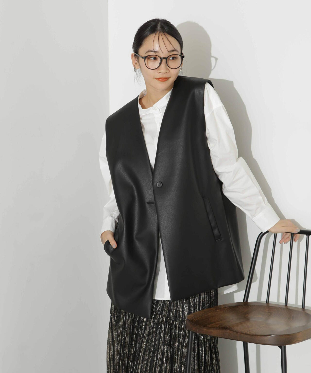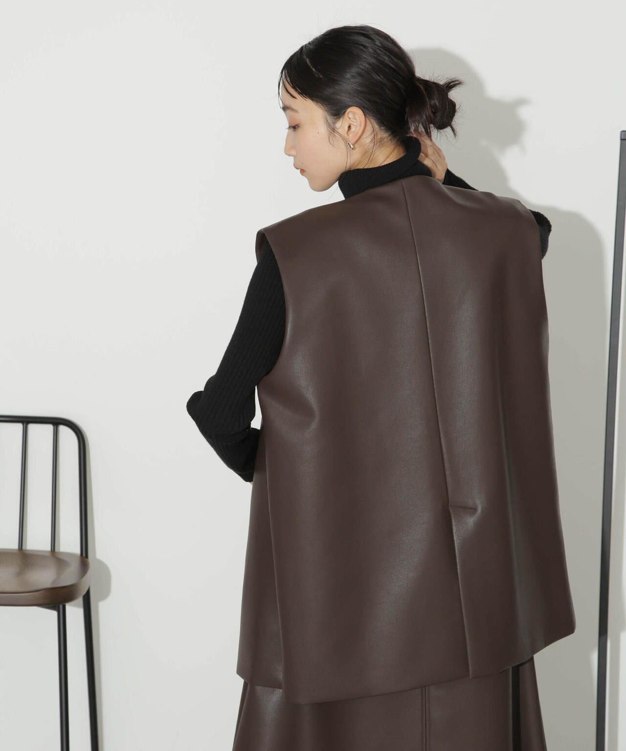 ・ディテールを削ぎ落した洗練感あるフェイクレザーベスト