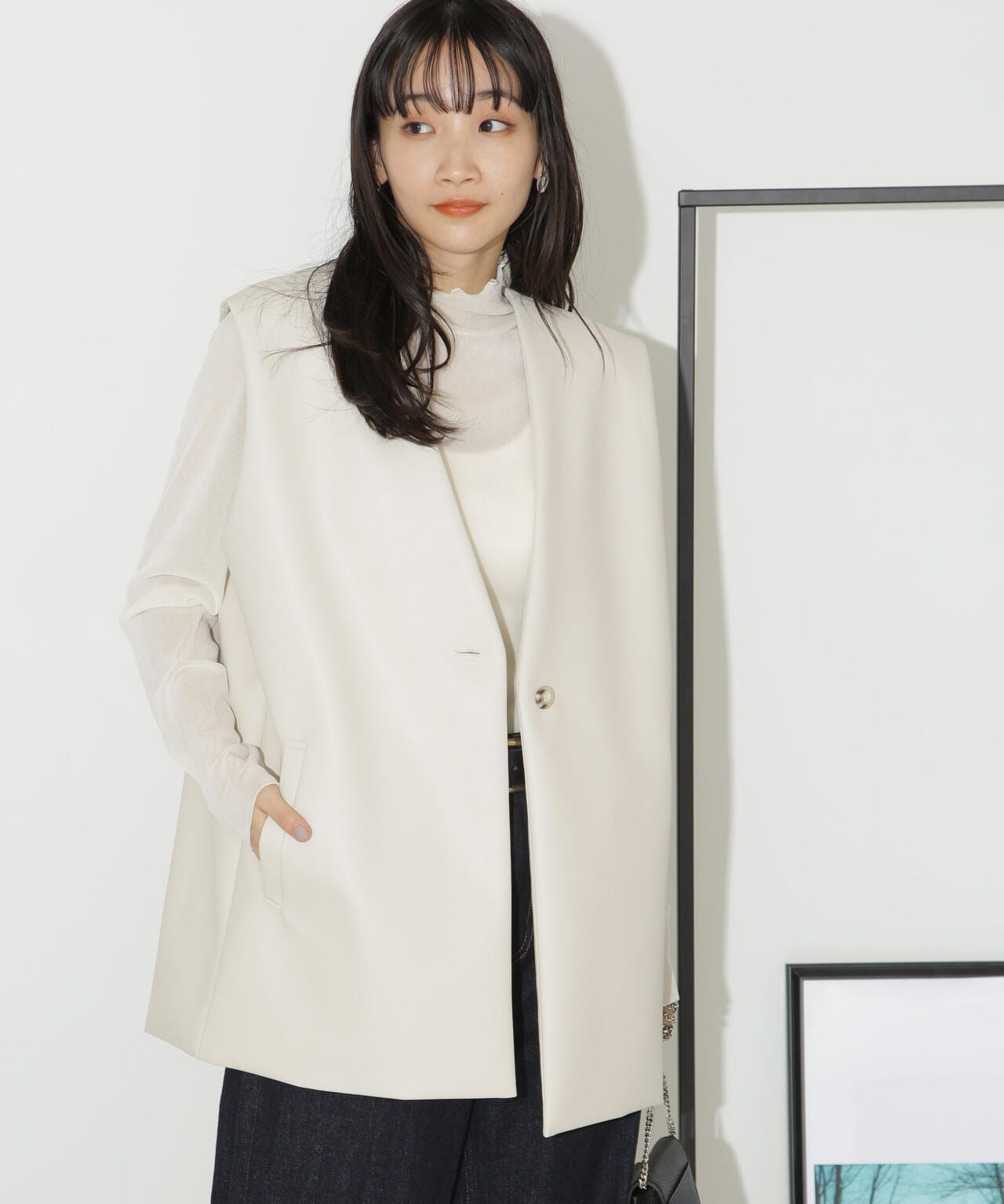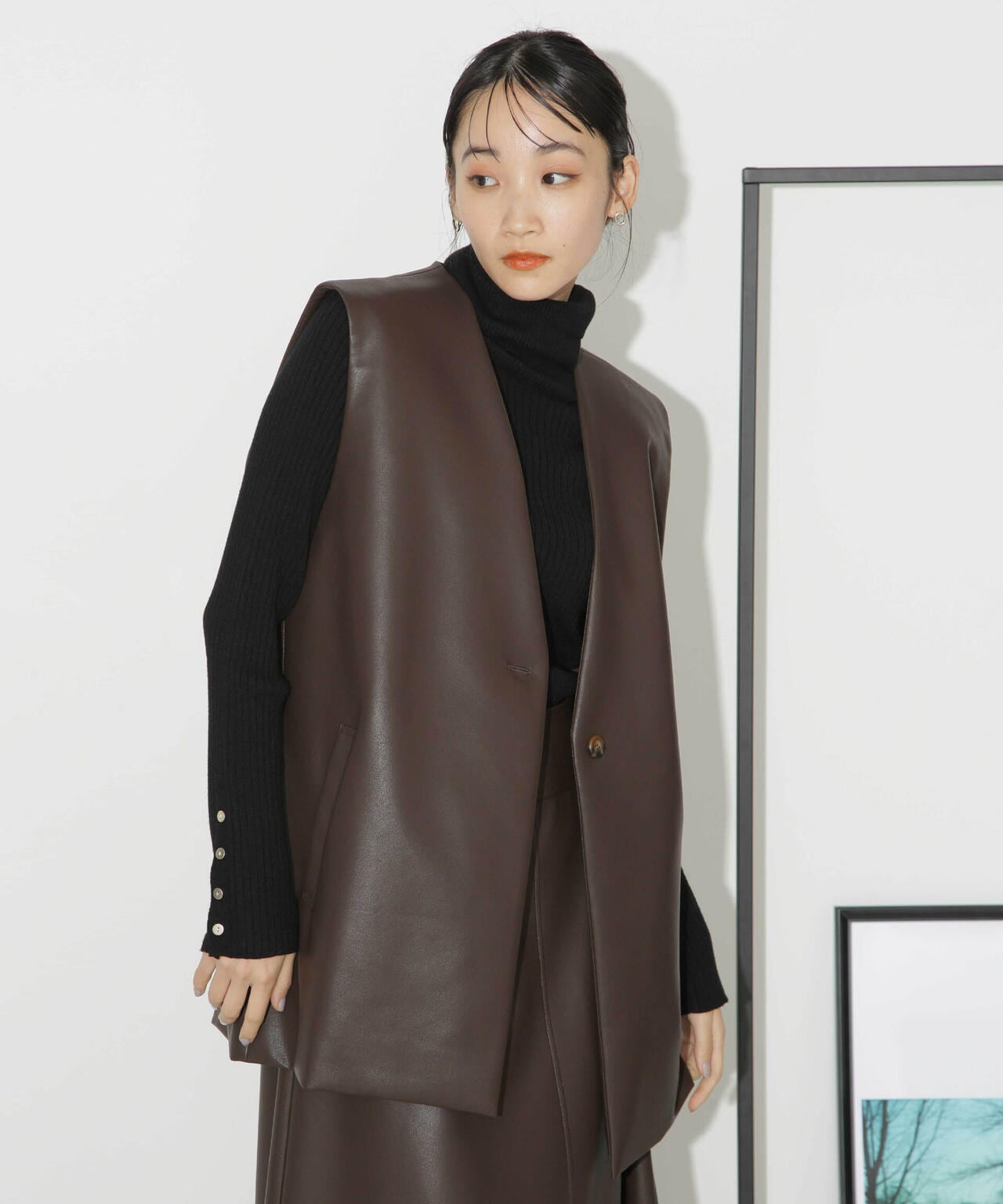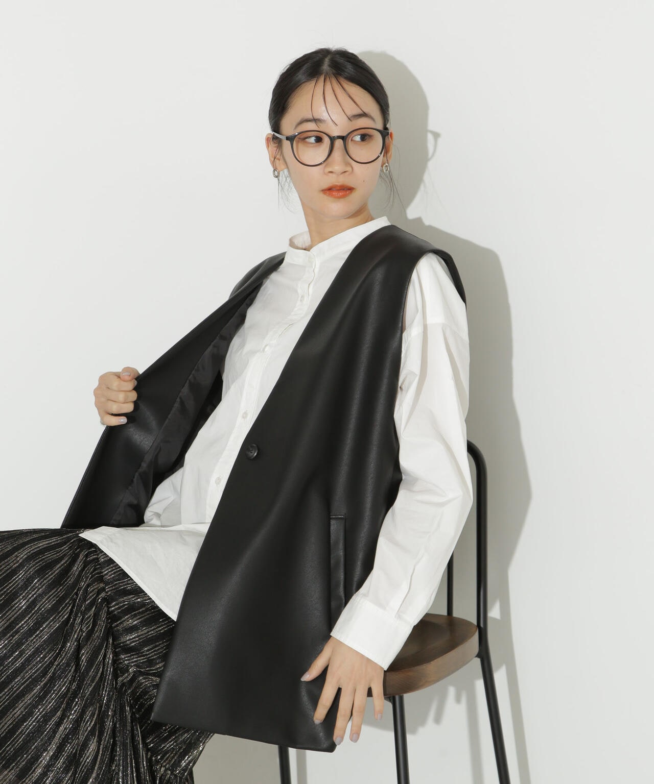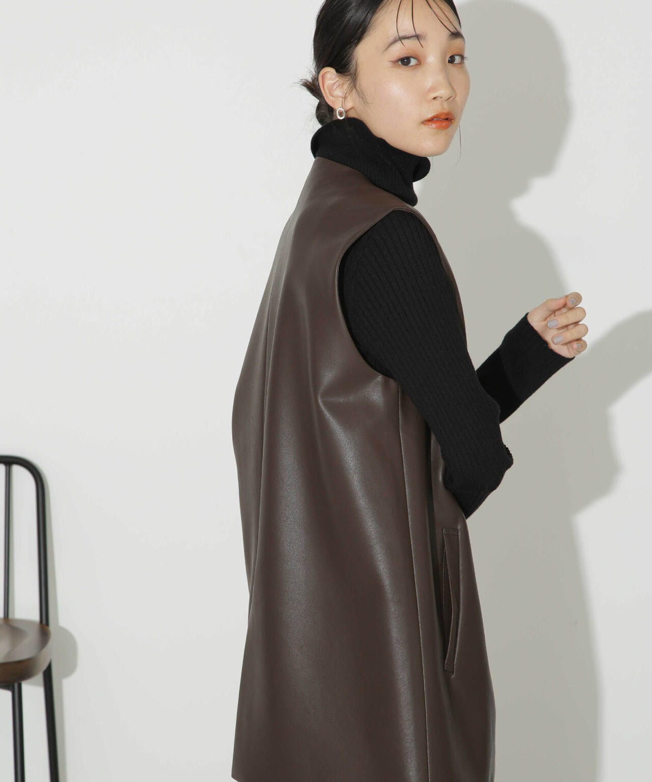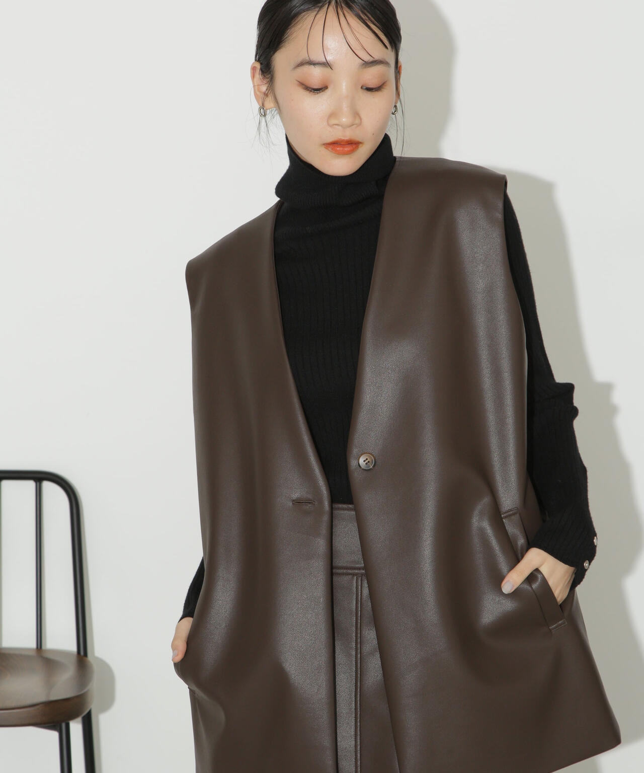 ・ディテールを削ぎ落した洗練感あるフェイクレザーベスト