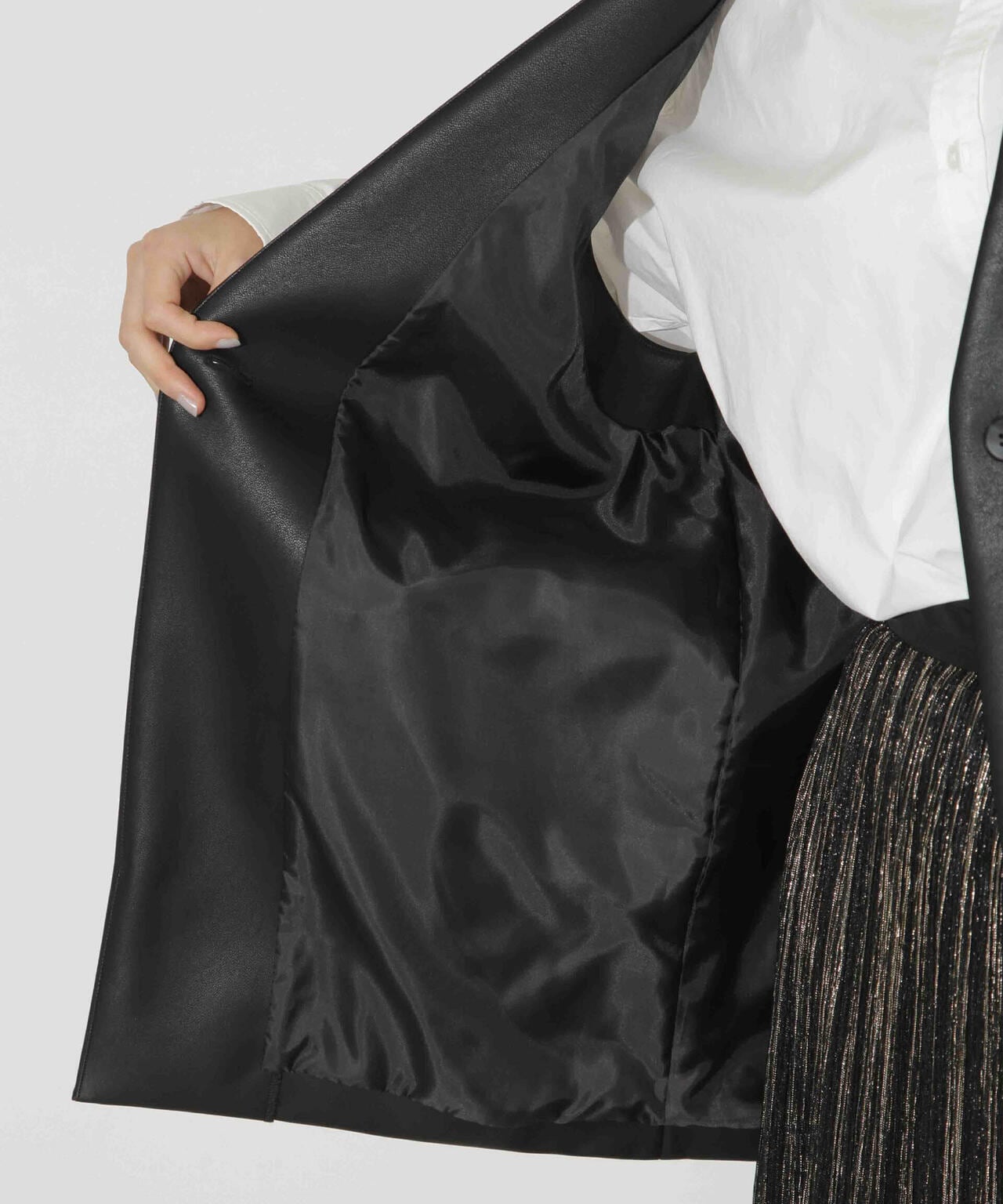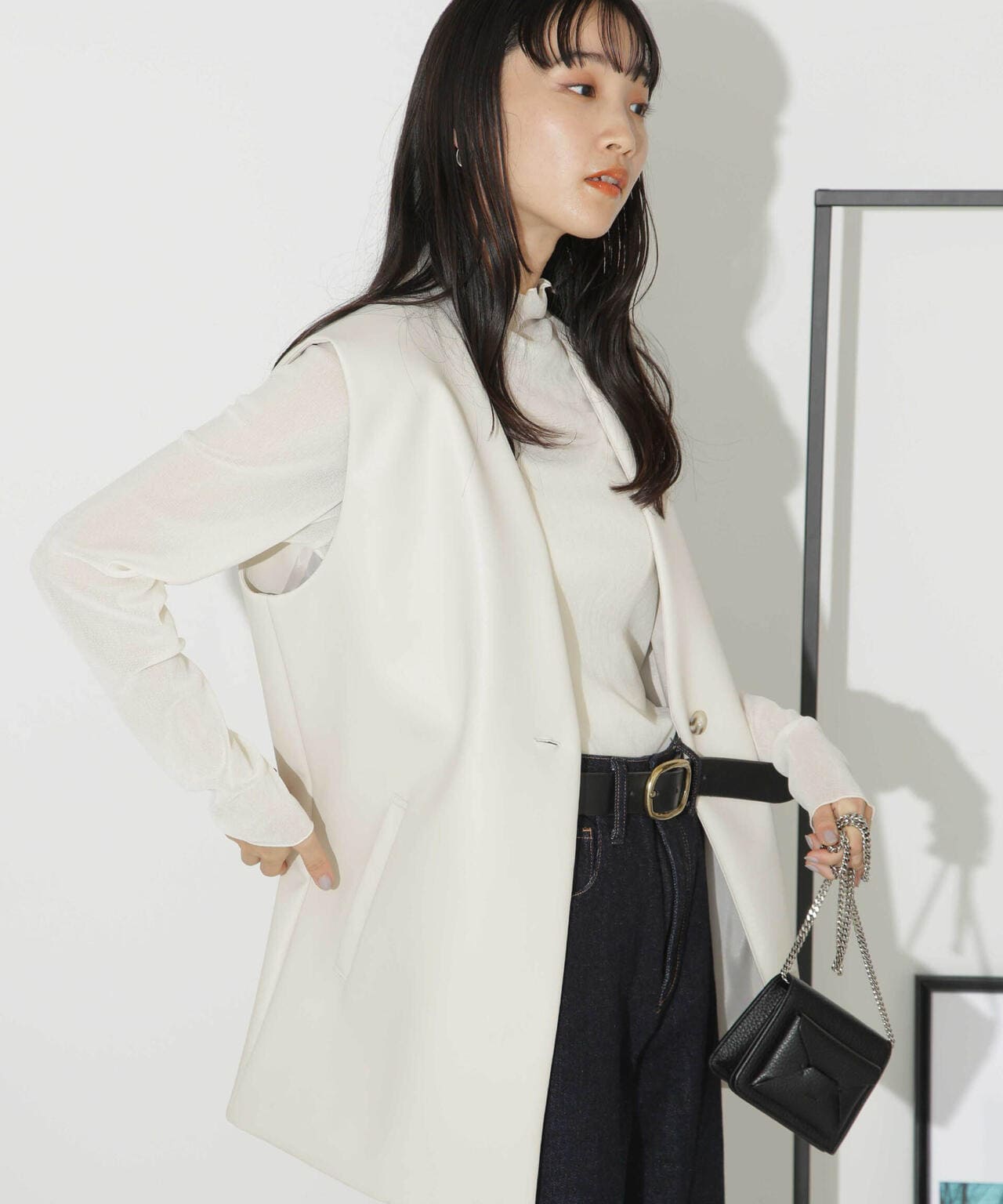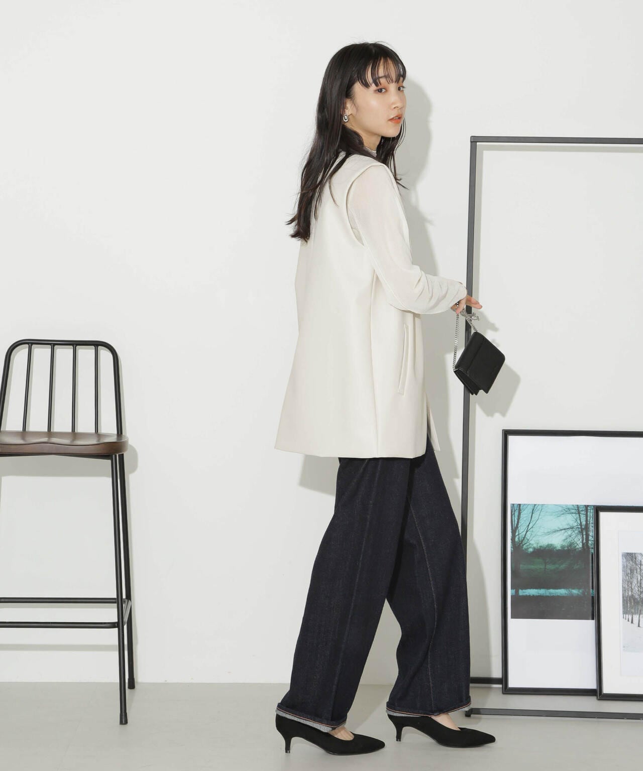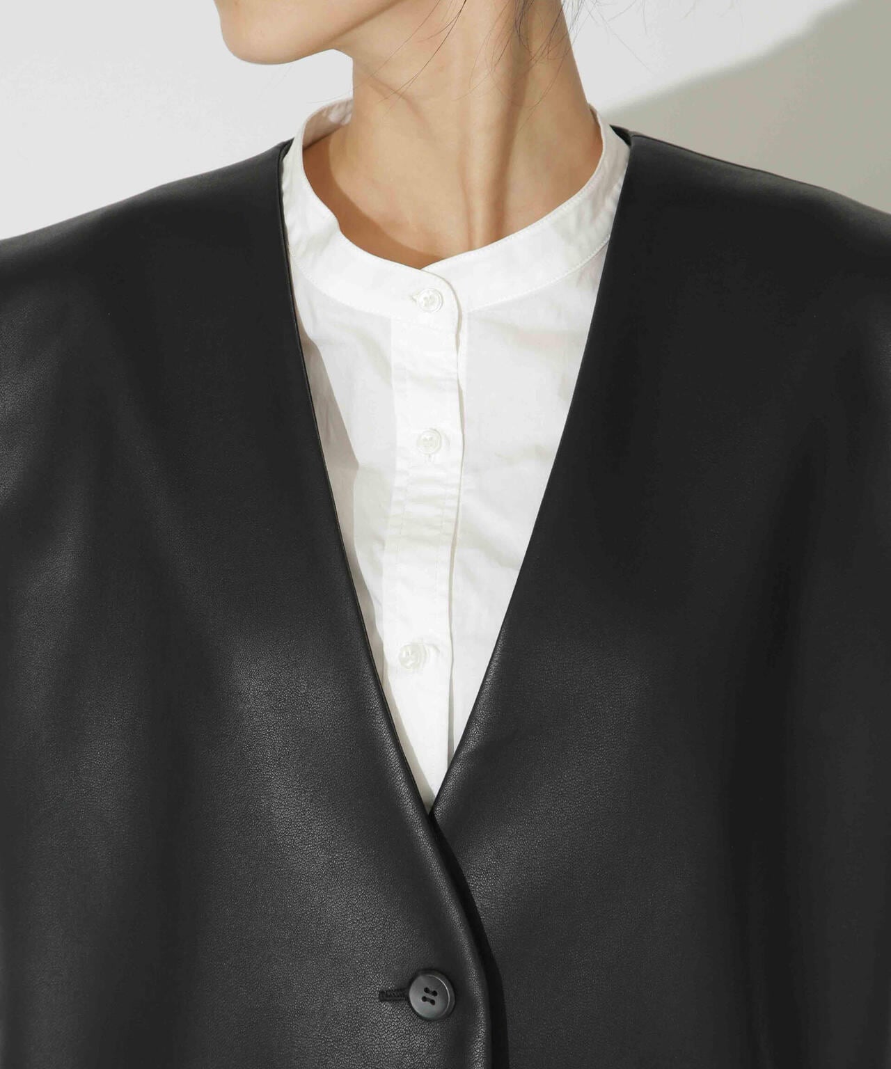・ディテールを削ぎ落した洗練感あるフェイクレザーベスト