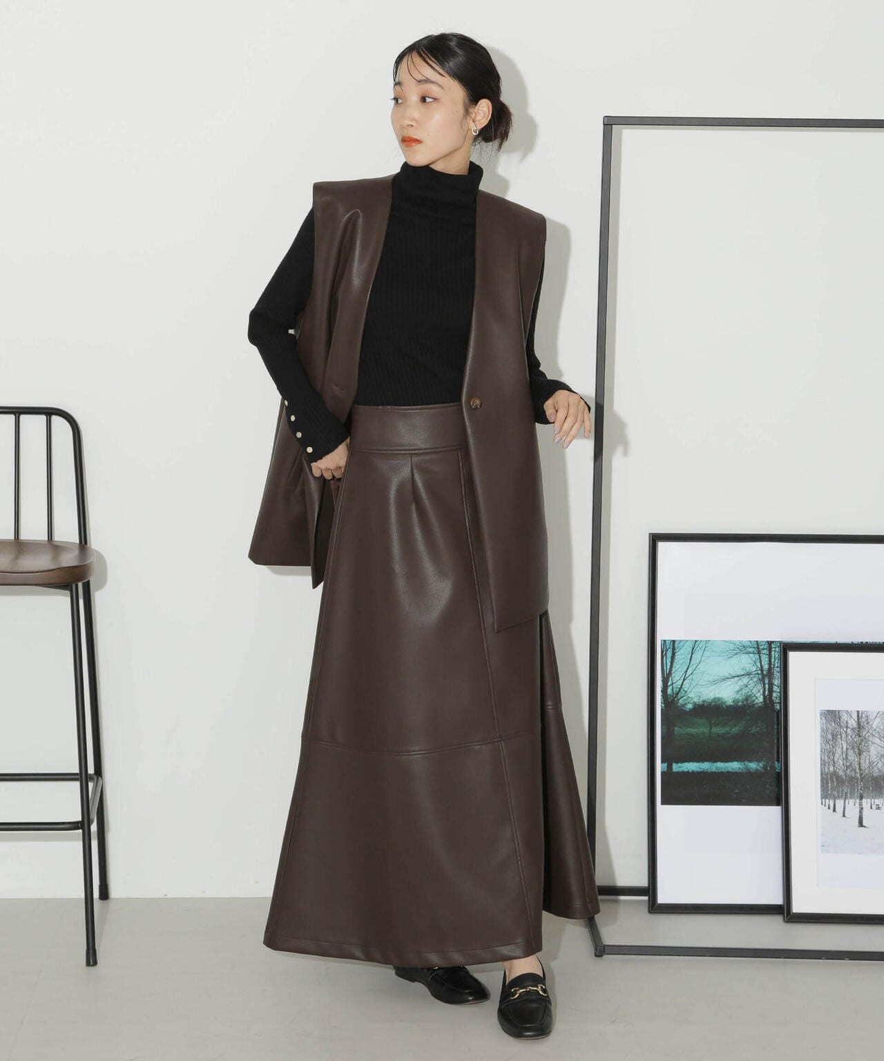 6734130304 フェイクレザーフレアスカート(セットアップ可)