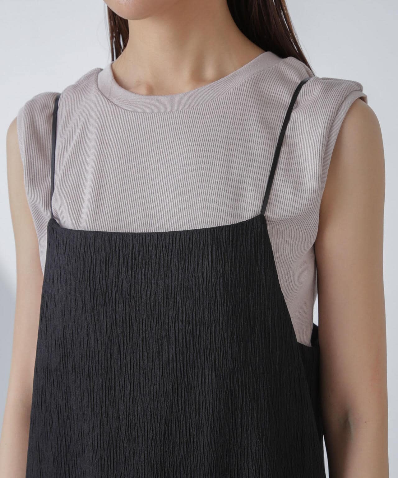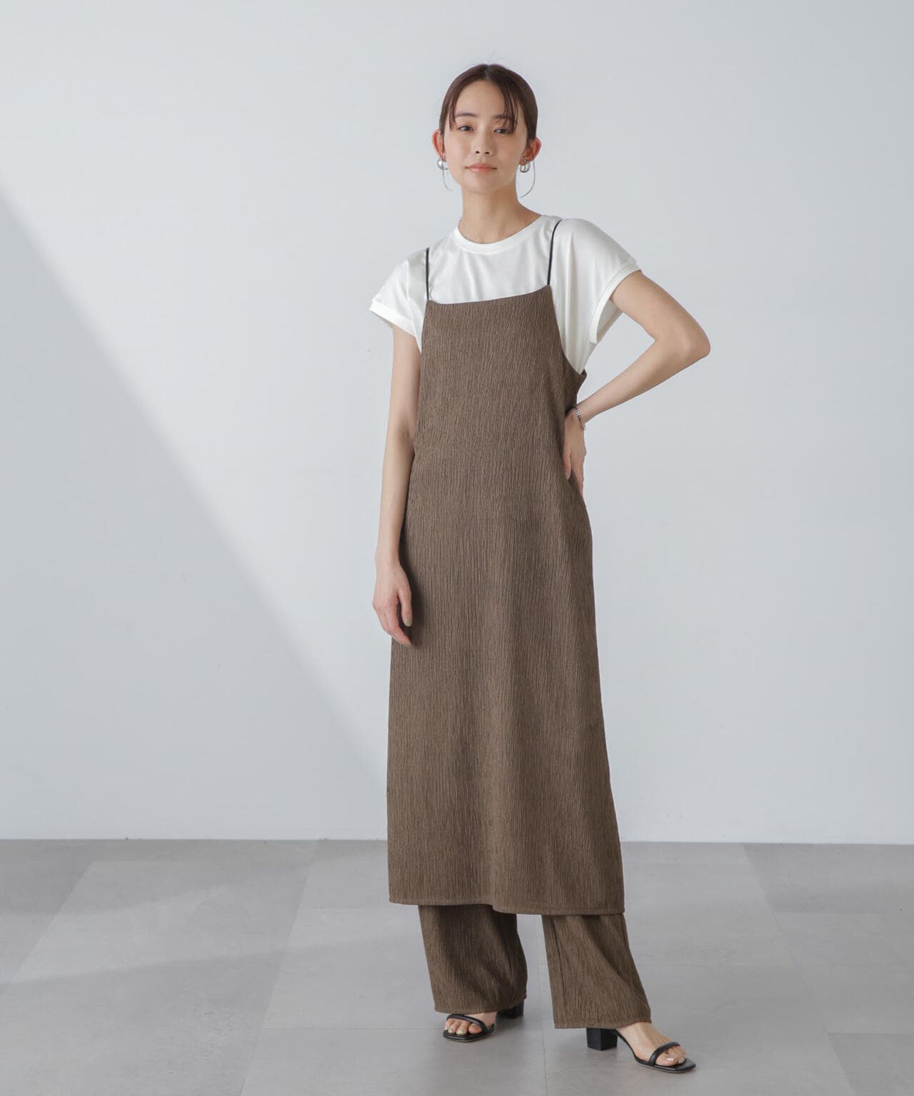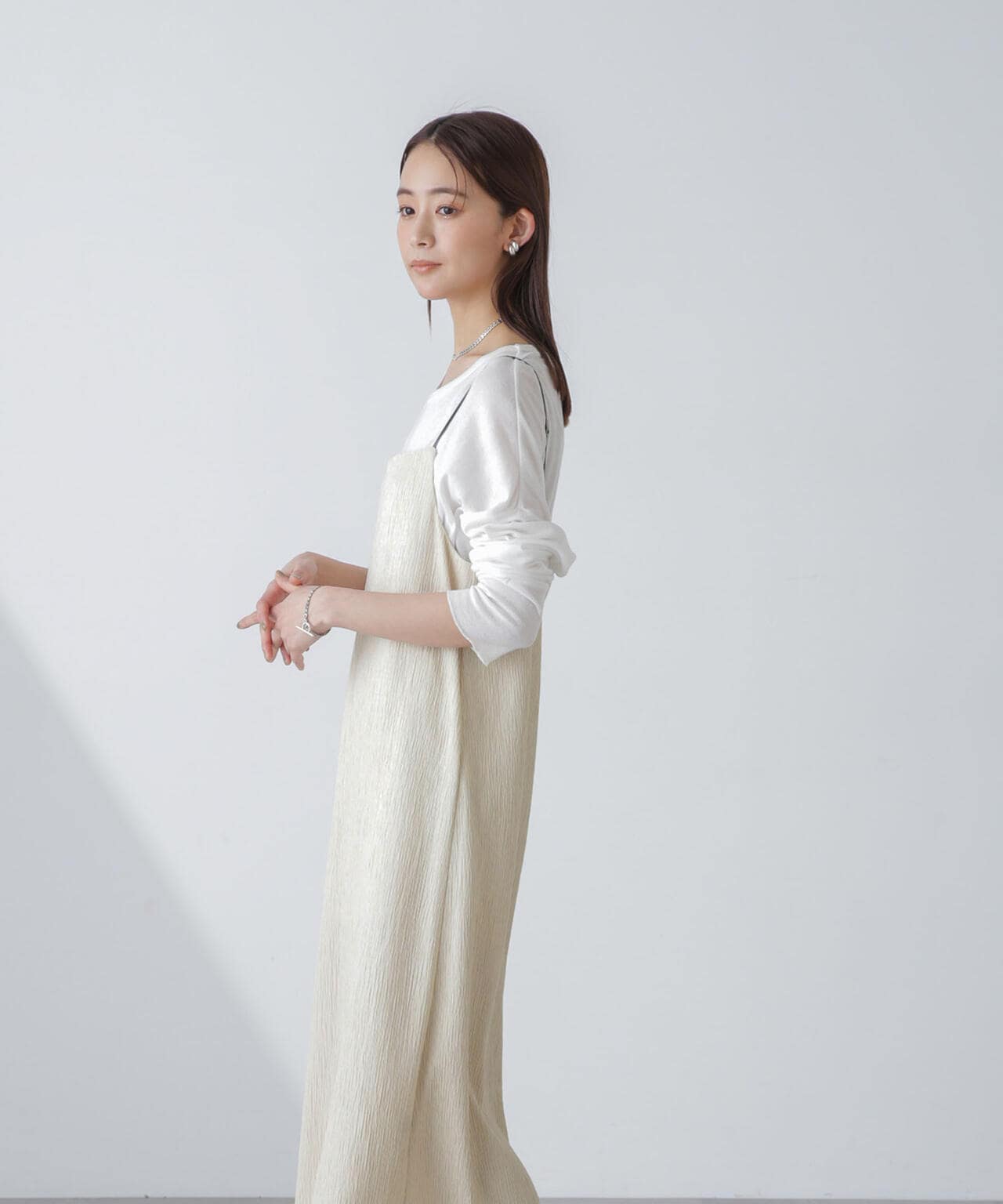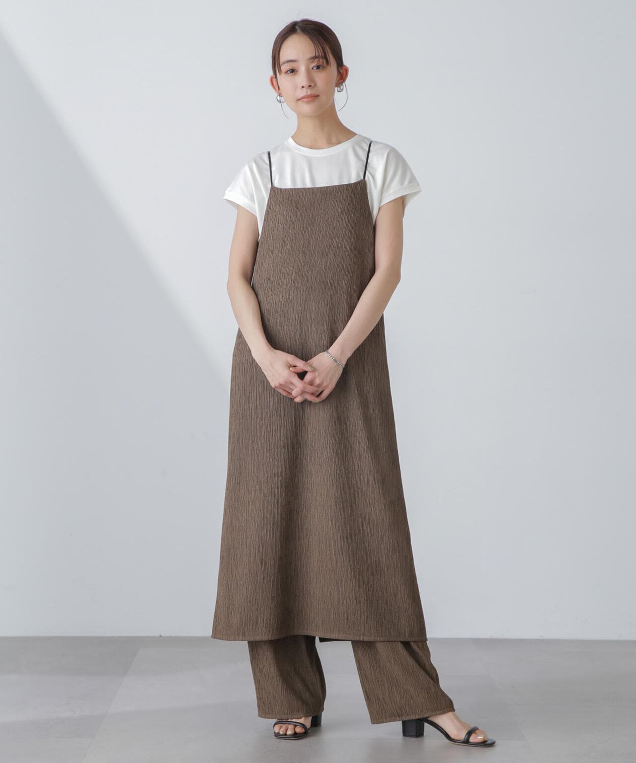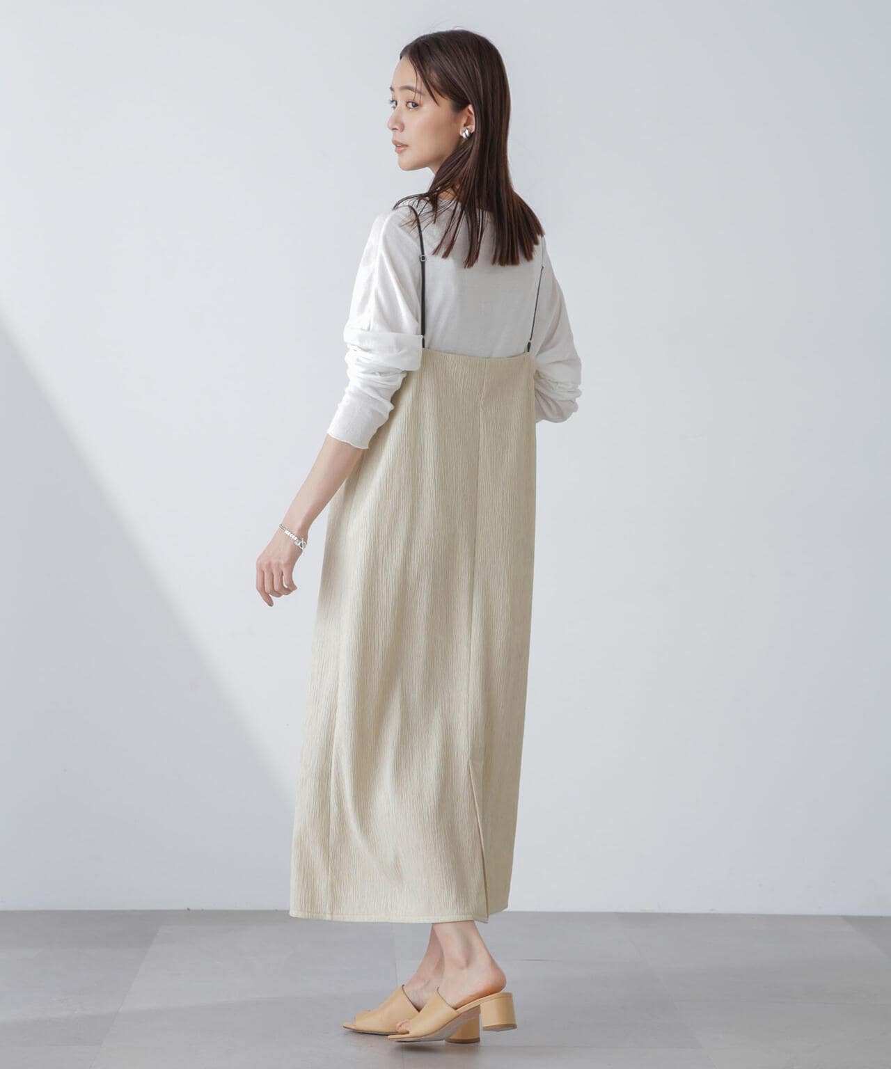 ・表面感ある素材で仕立てたシンプルながらも存在感あるキャミワンピース
