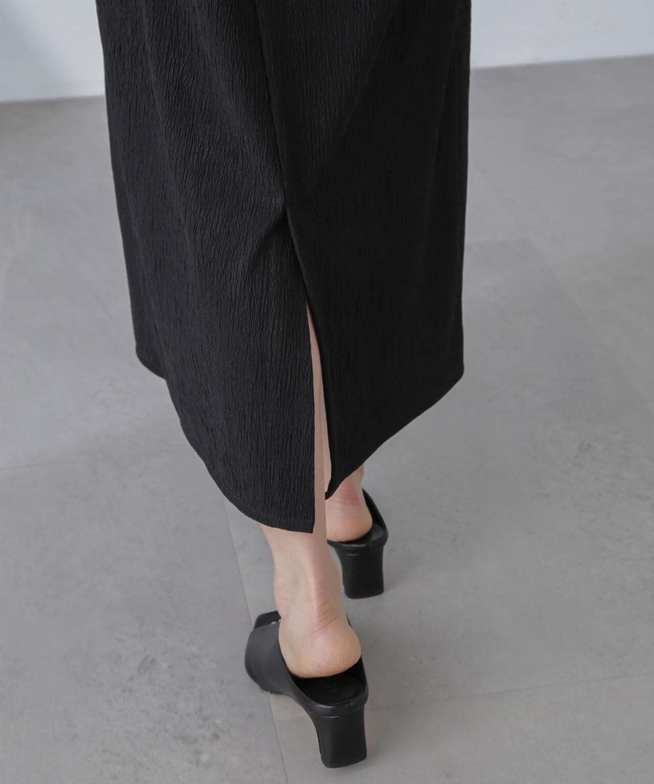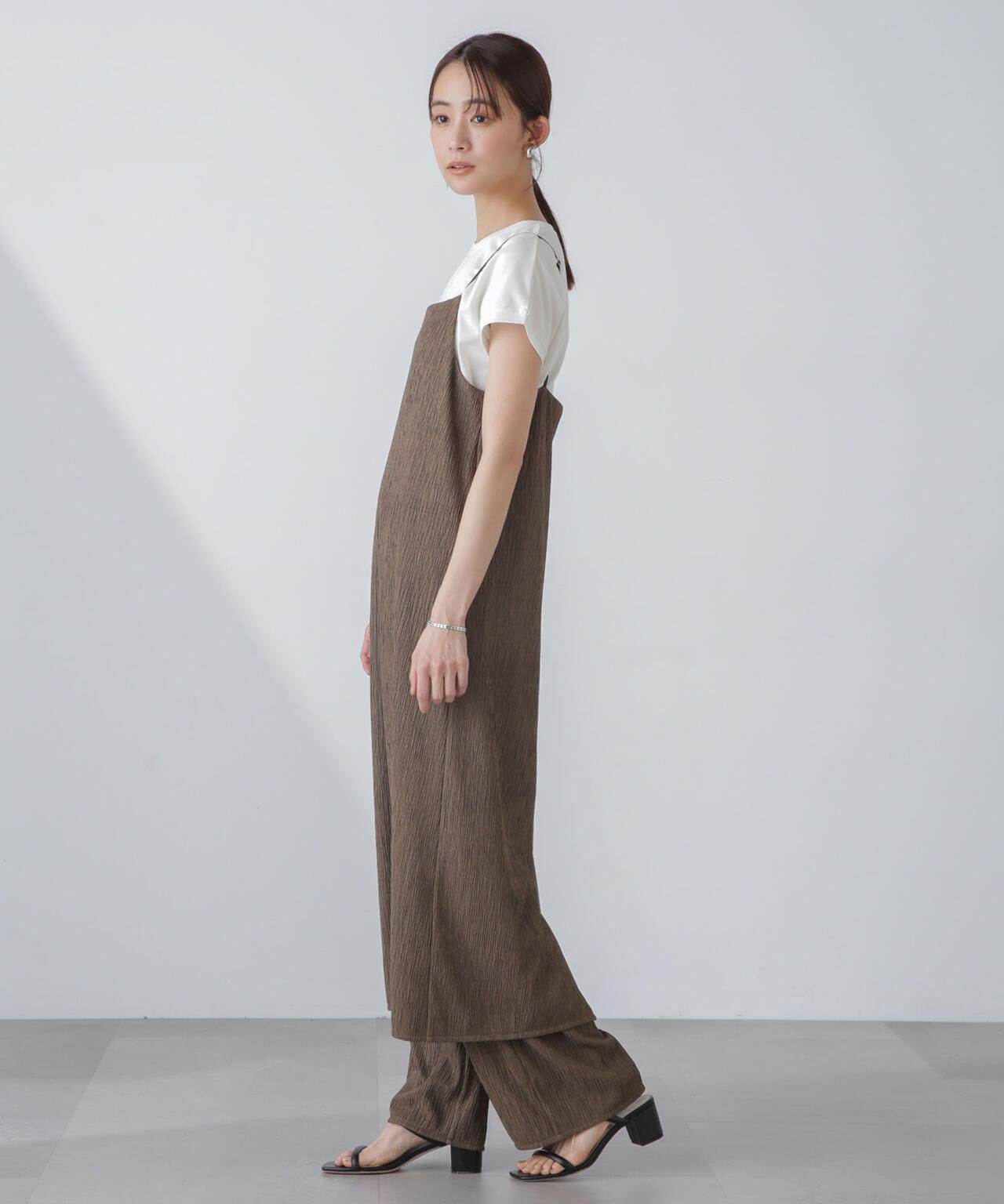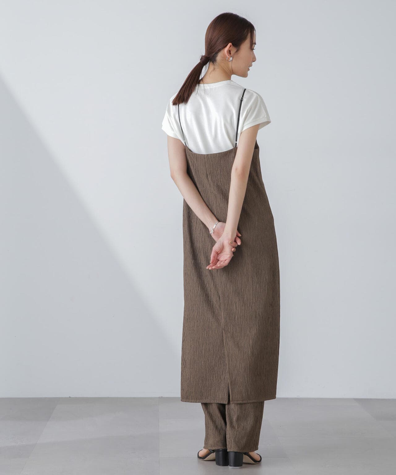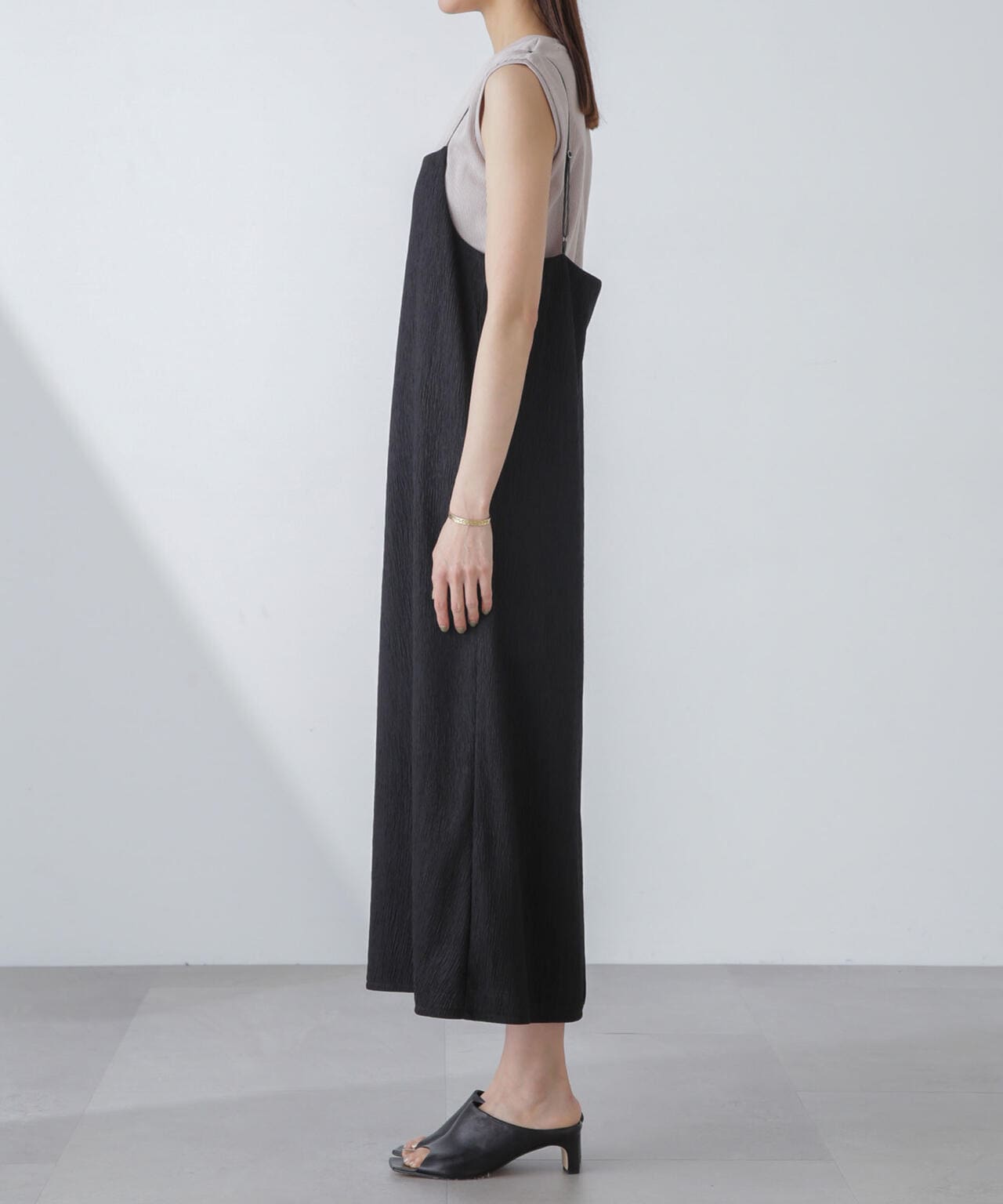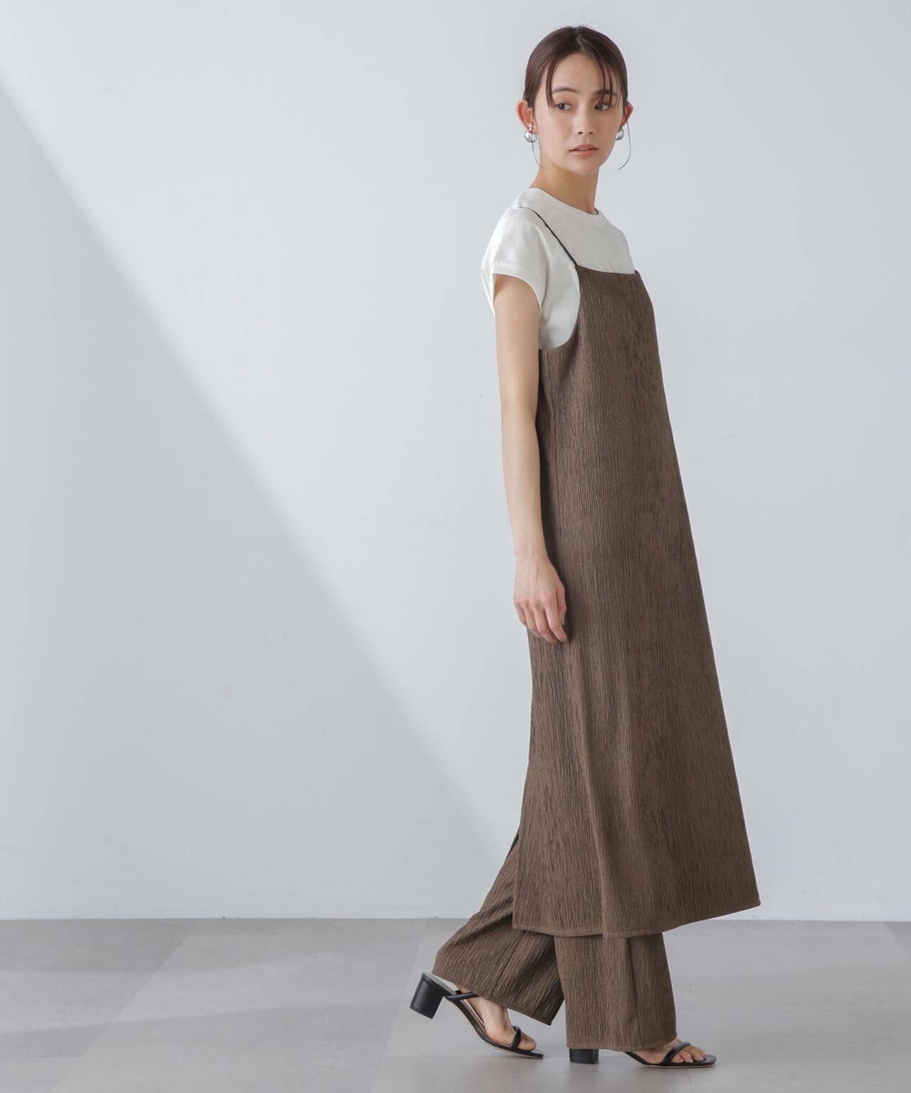 ・表面感ある素材で仕立てたシンプルながらも存在感あるキャミワンピース