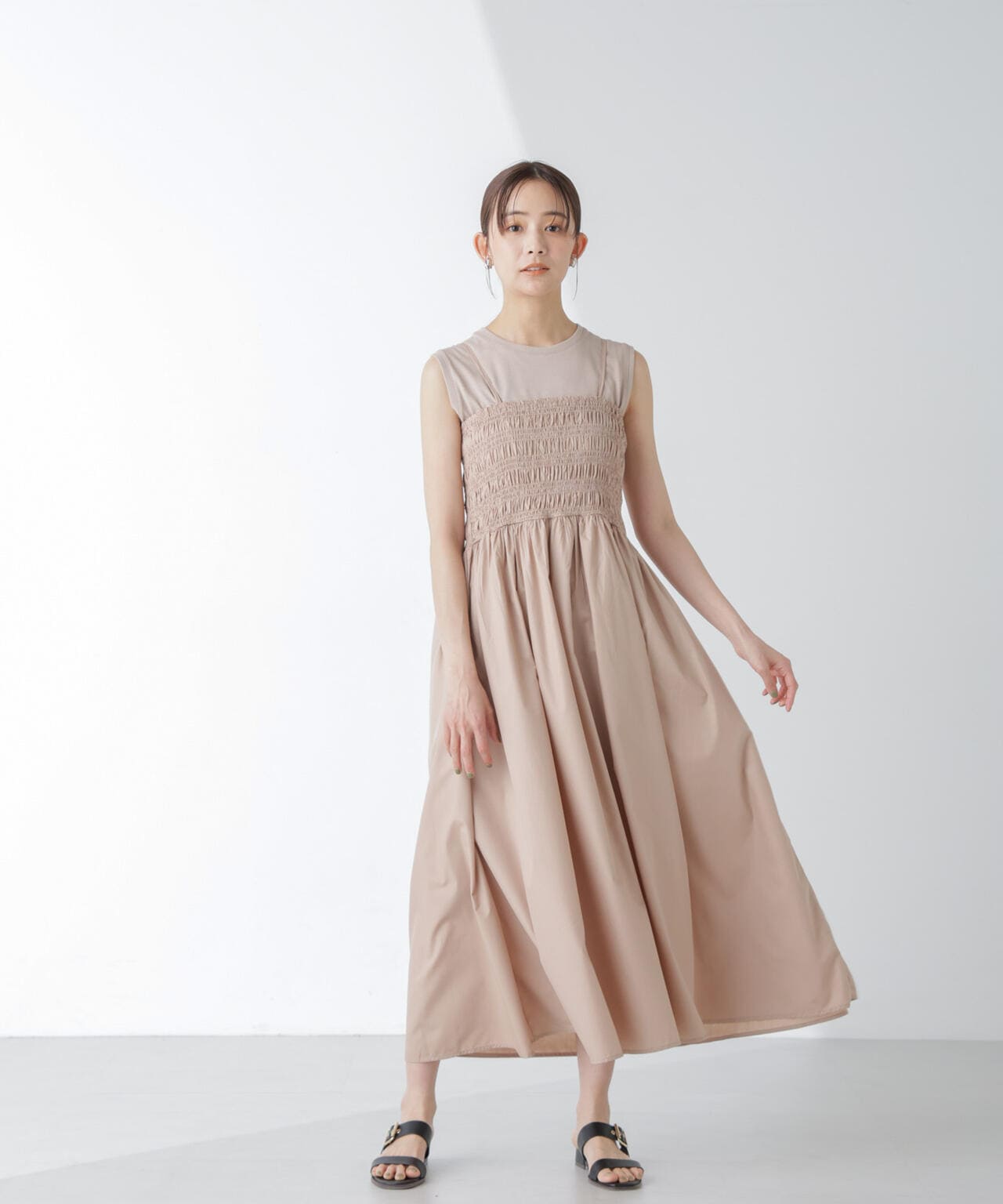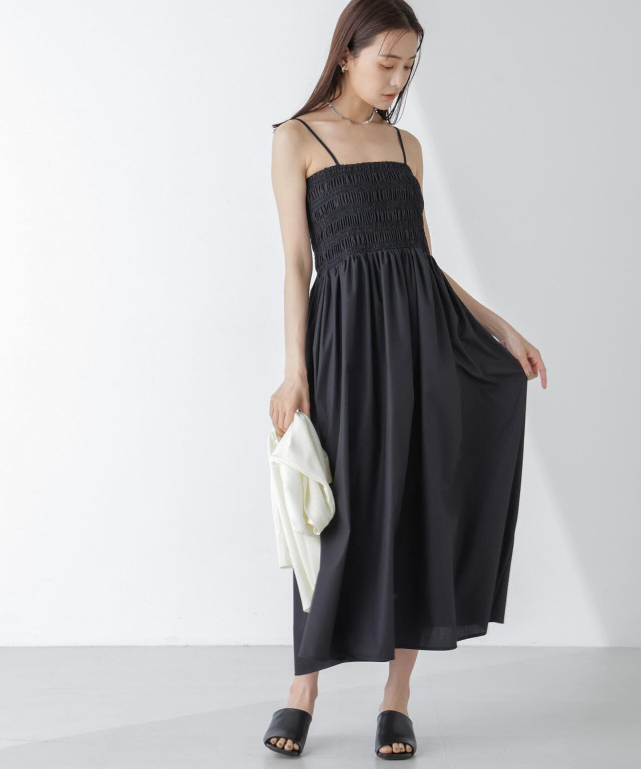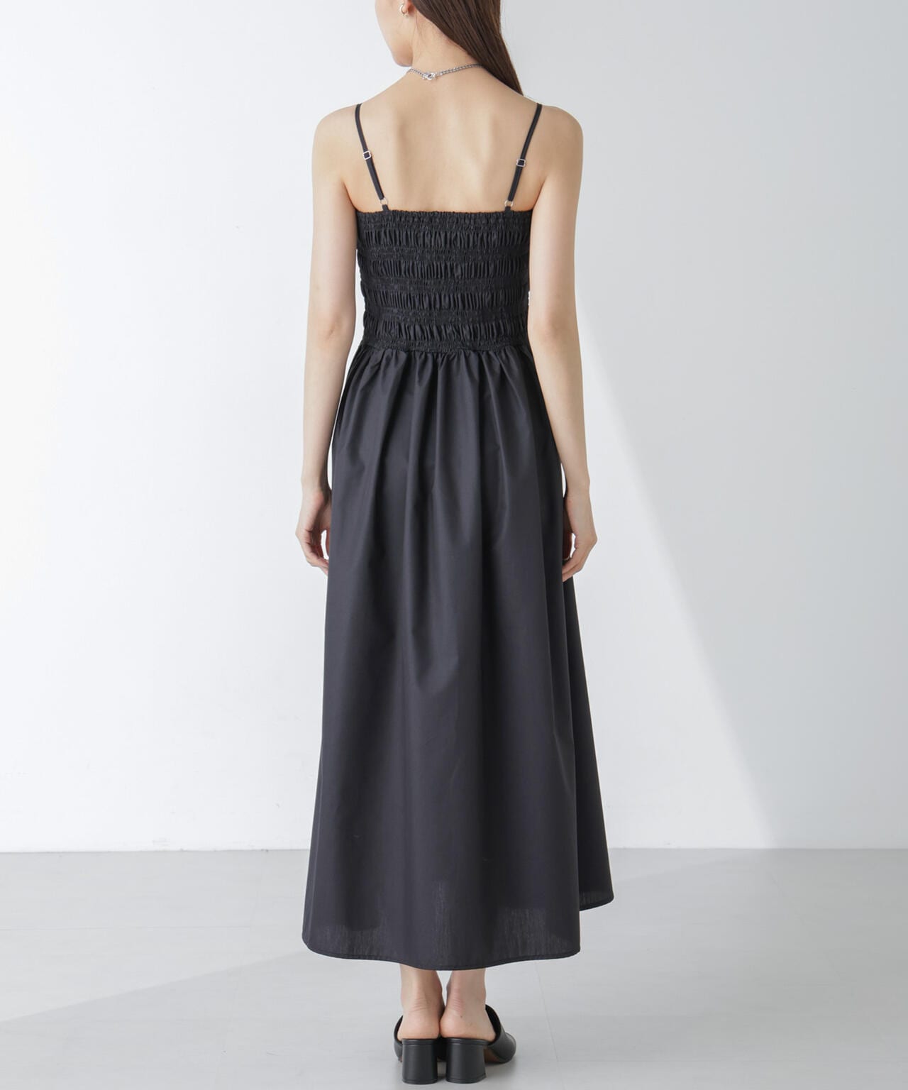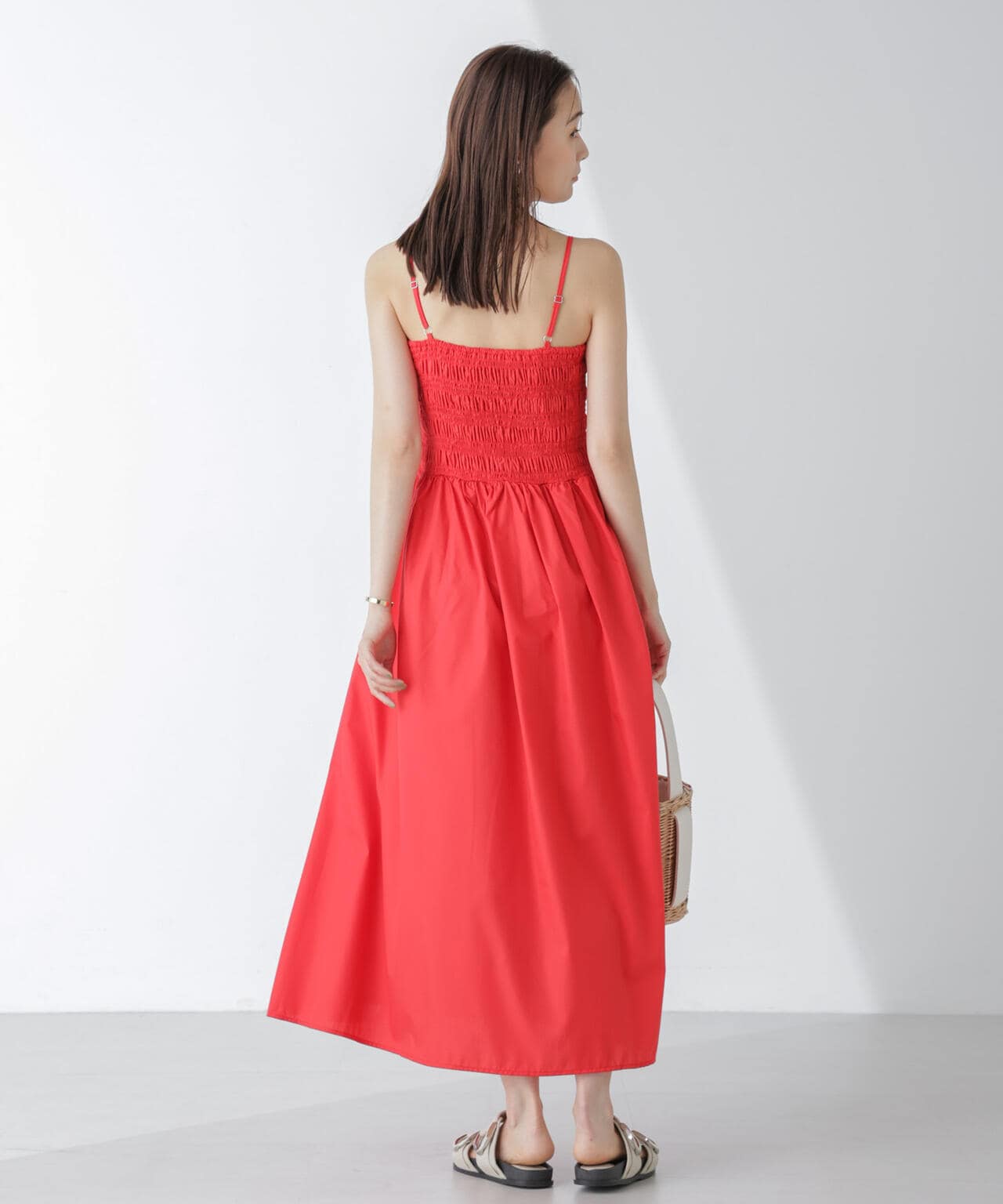 ・胸周りのシャーリングが、女性らしさを引き立ててくれるキャミソールワンピース