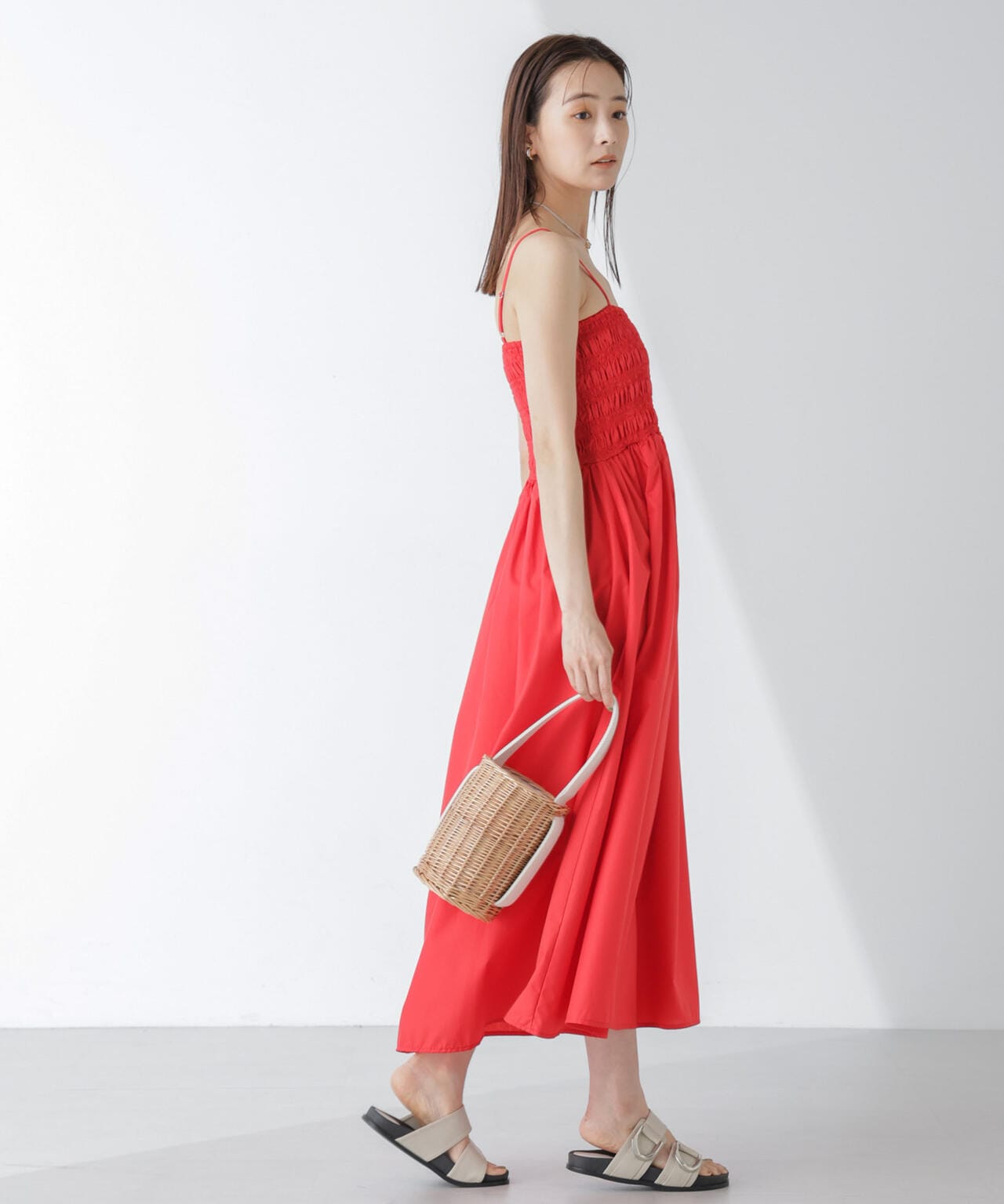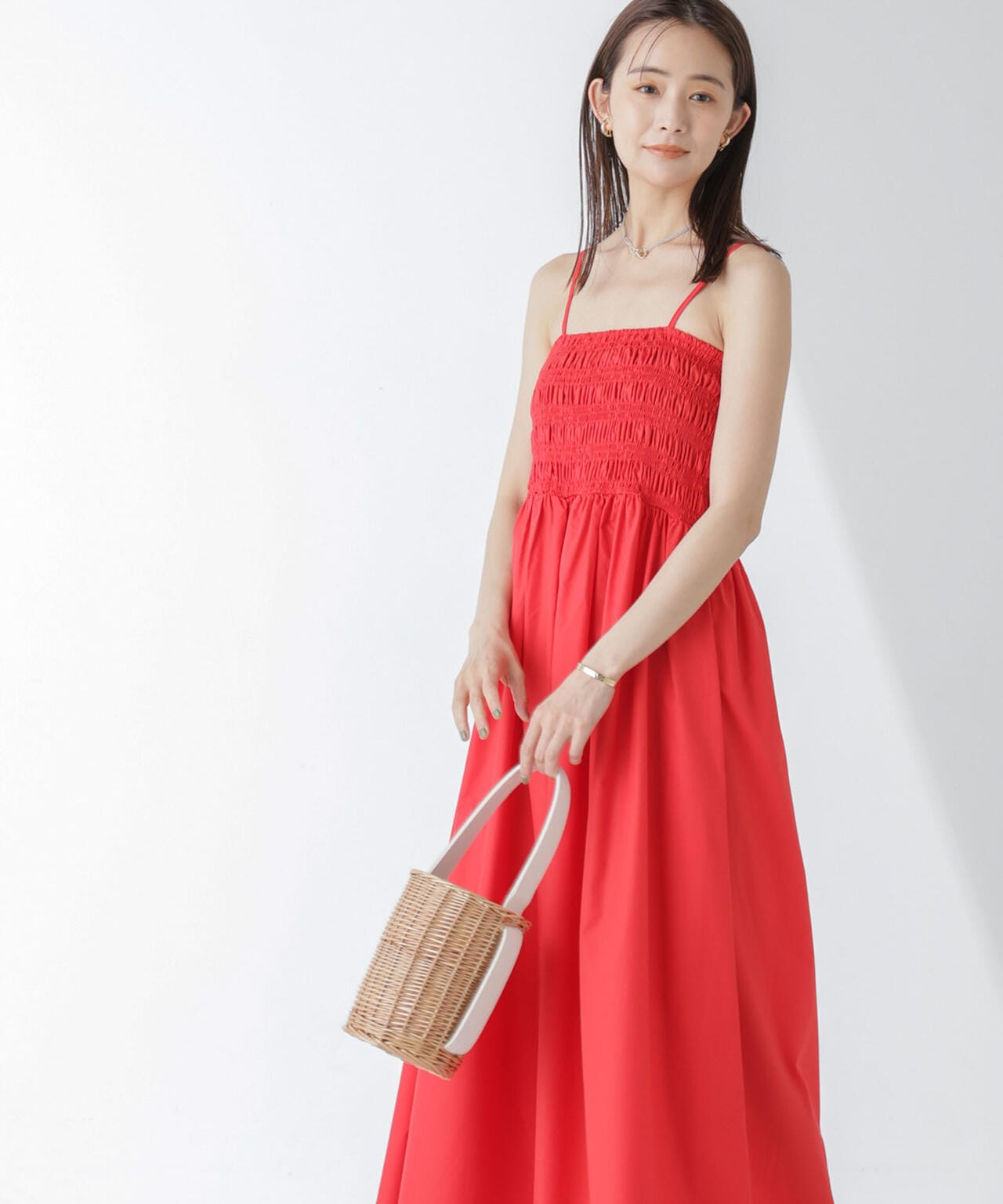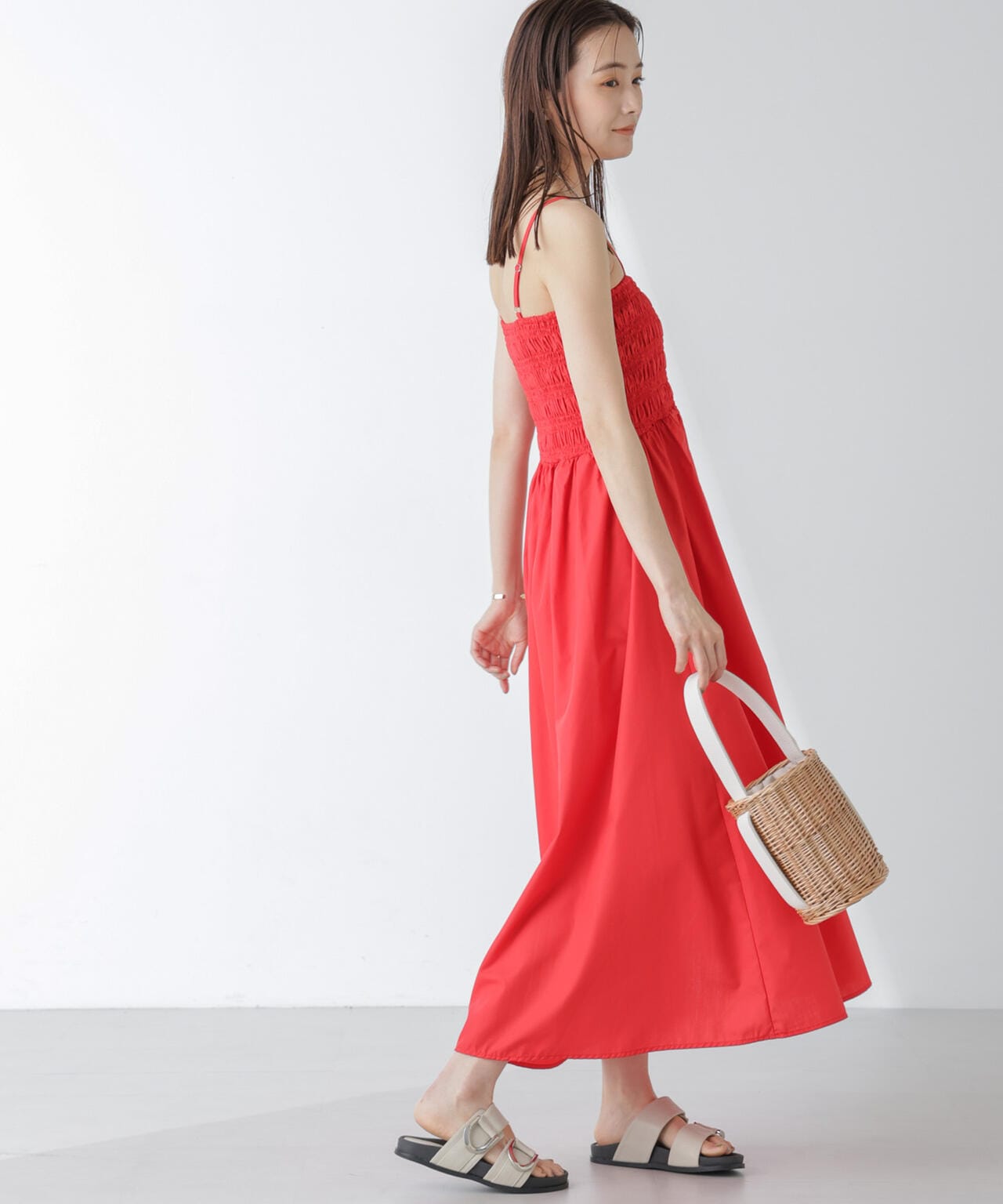 胸周りのシャーリングが、女性らしさを引き立ててくれるキャミソールワンピース。ヘルシー感を演出する華奢な肩紐とボリュームスカートがバランス良く、シンプルながらも着映えを叶えてくれるデザイン。Tシャツやタンクトップをレイヤードしたり、紐を内側に入れてハイウエストスカートとしての着こなしも素敵です。