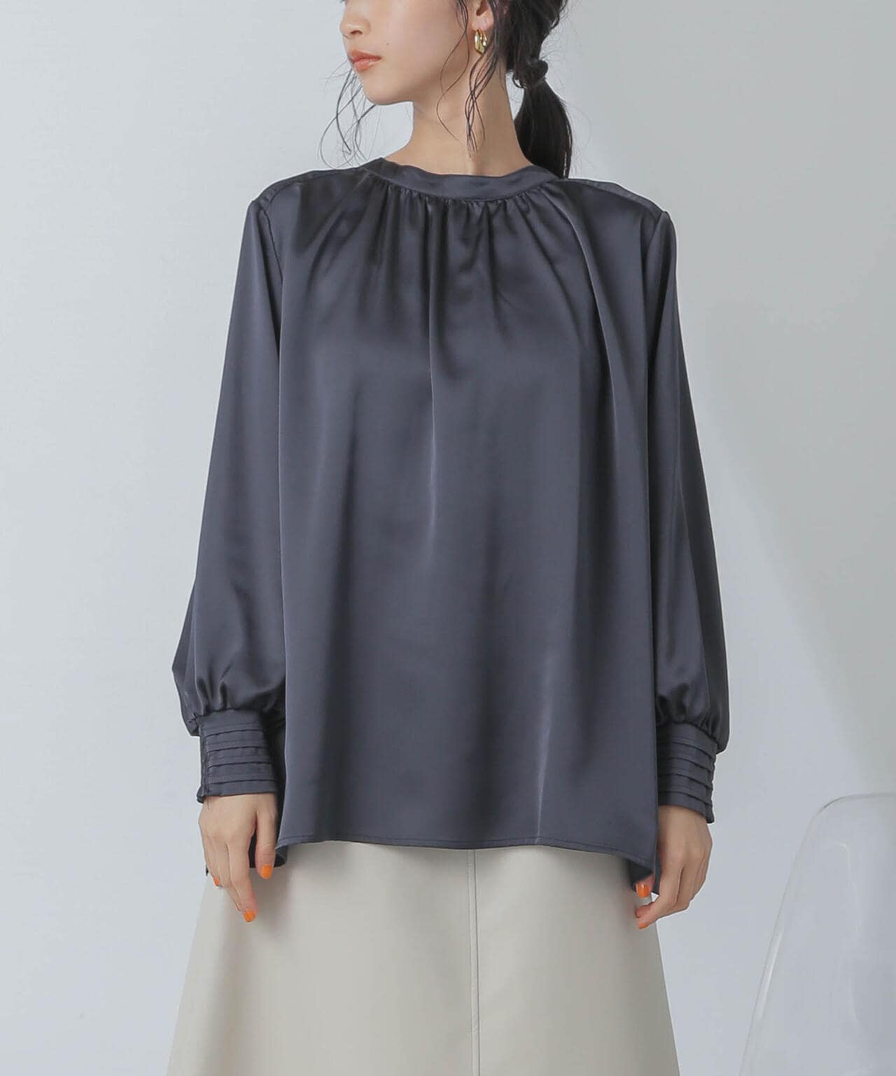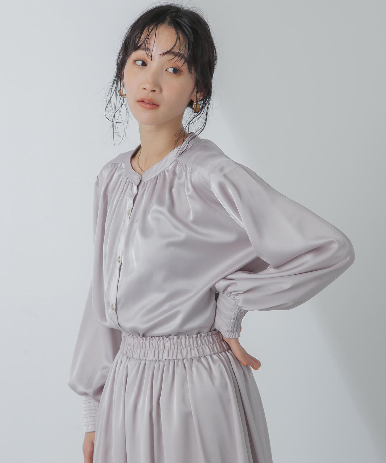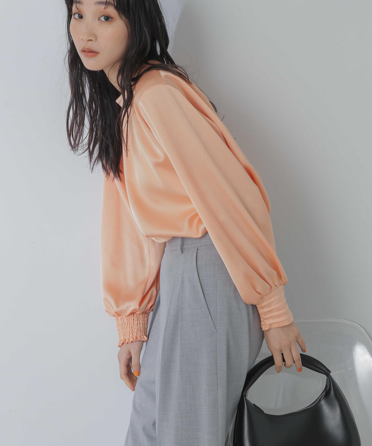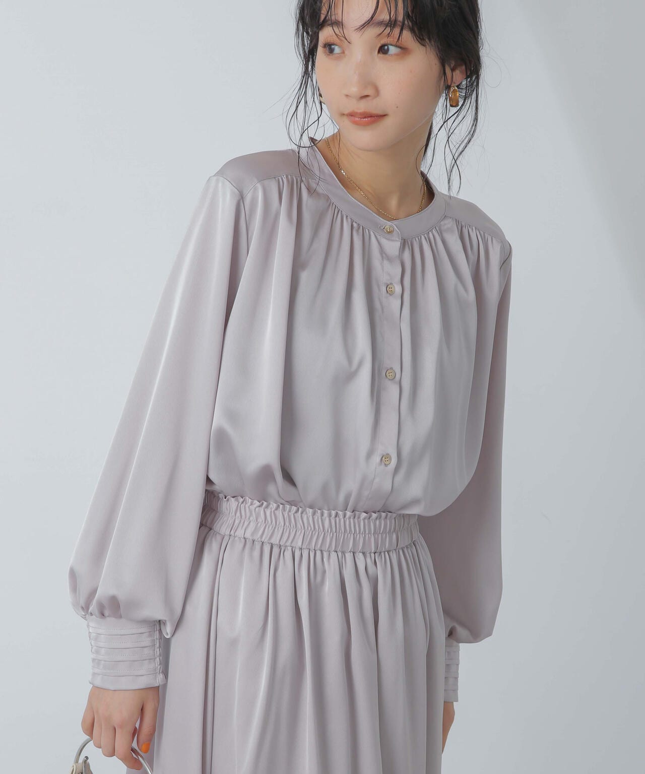 前後2wayサテンギャザーブラウス(セットアップ可)