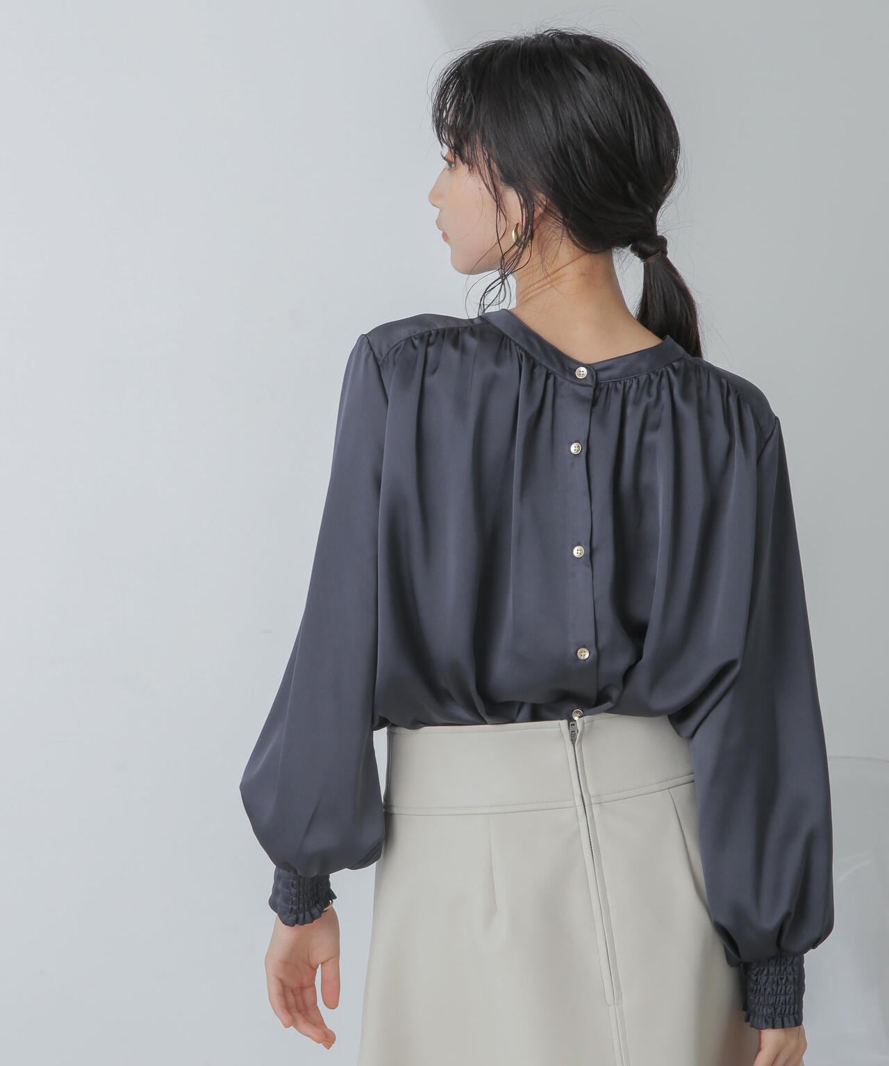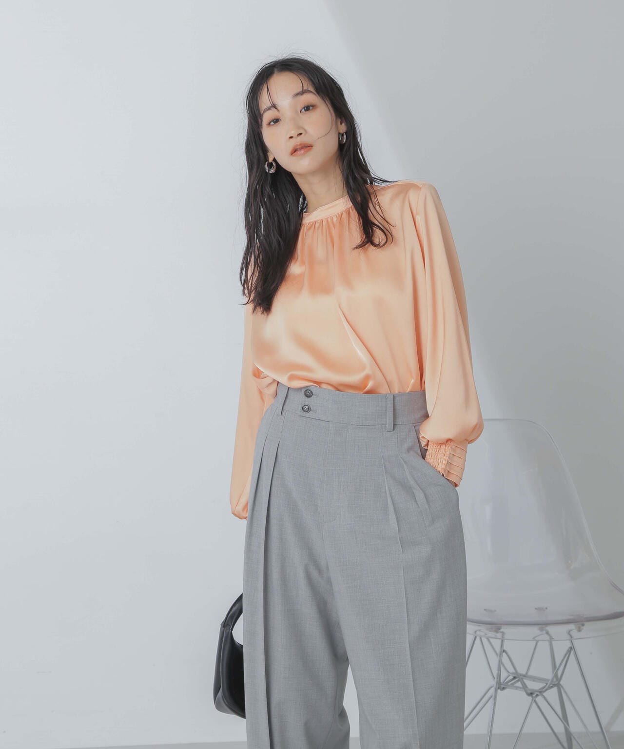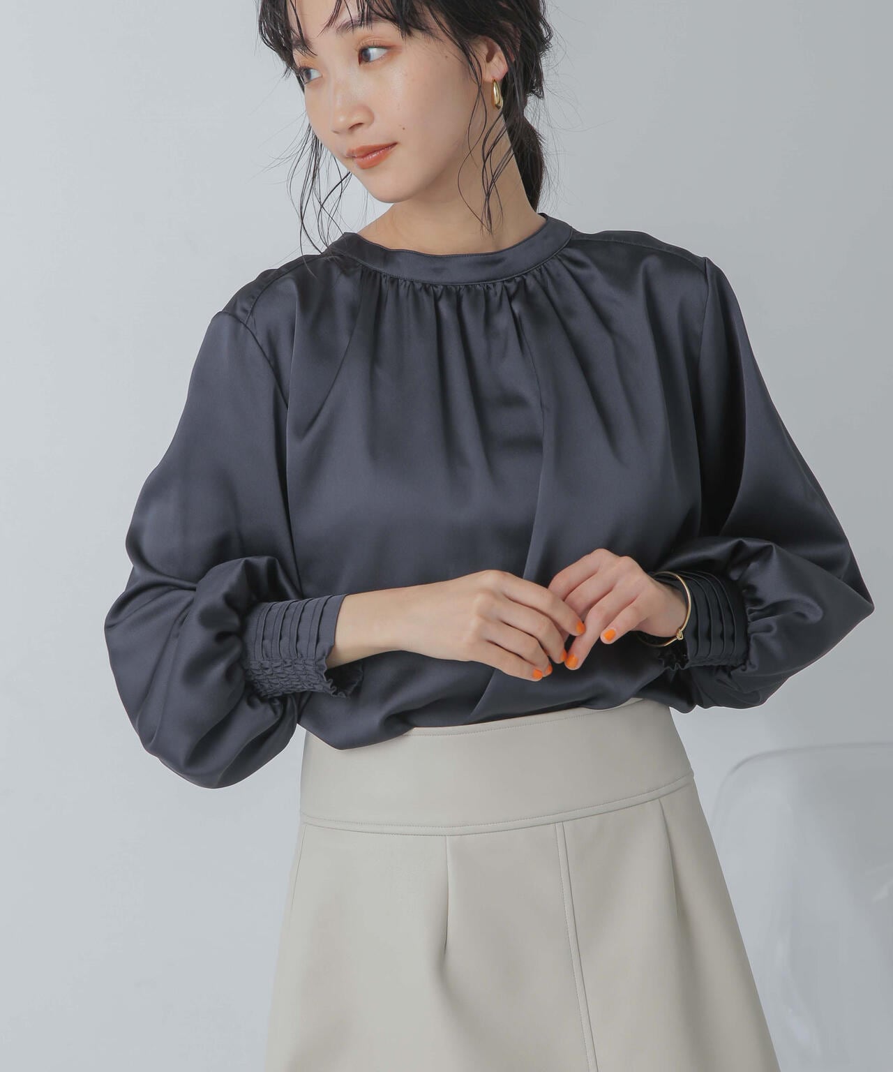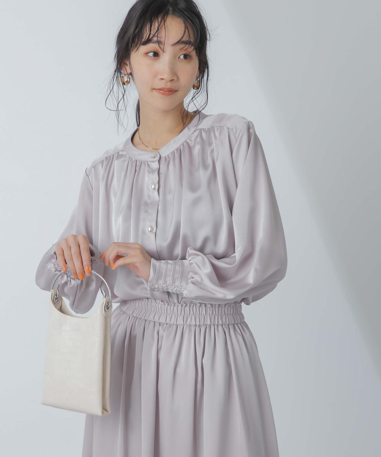 前後2wayサテンギャザーブラウス(セットアップ可)