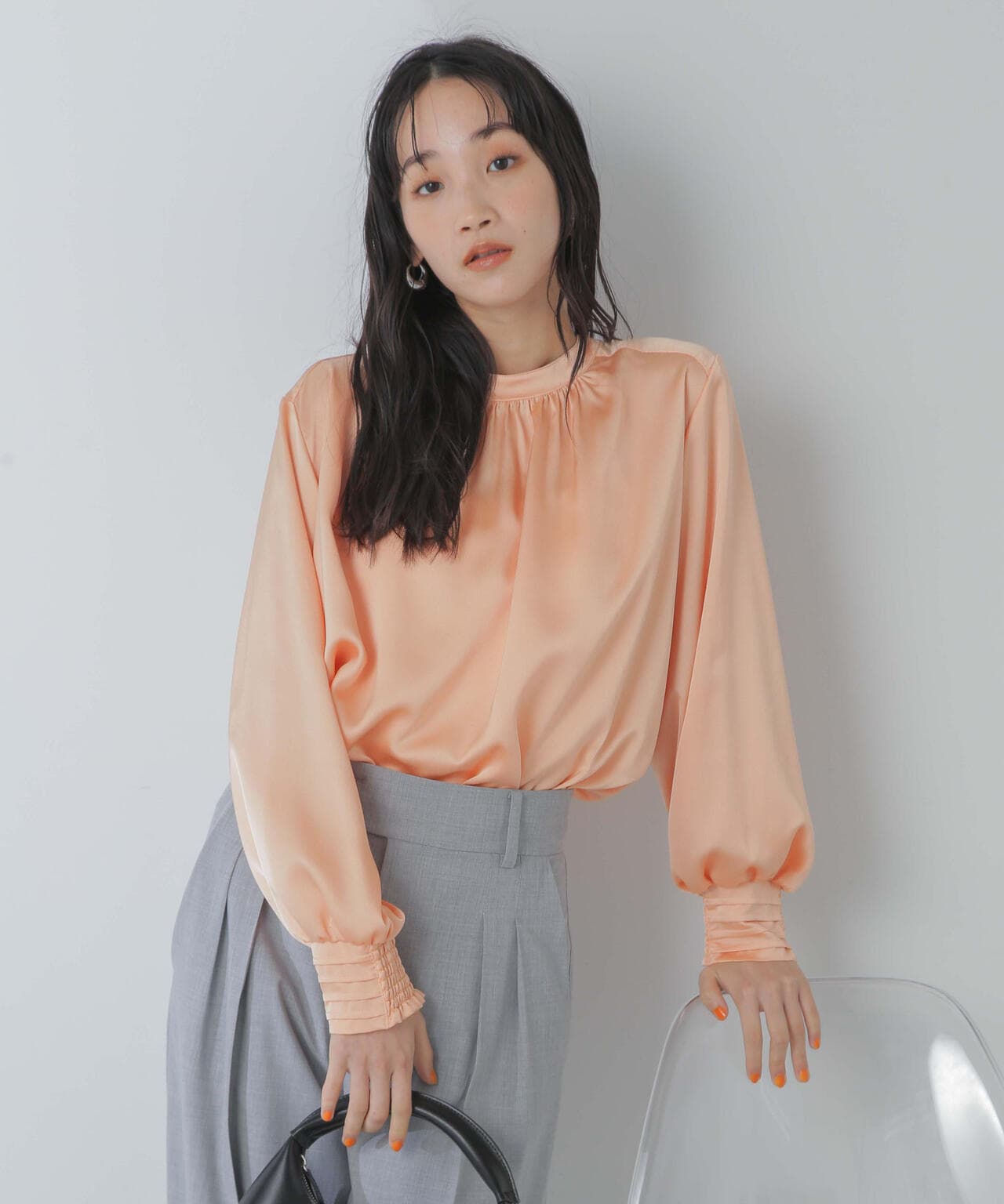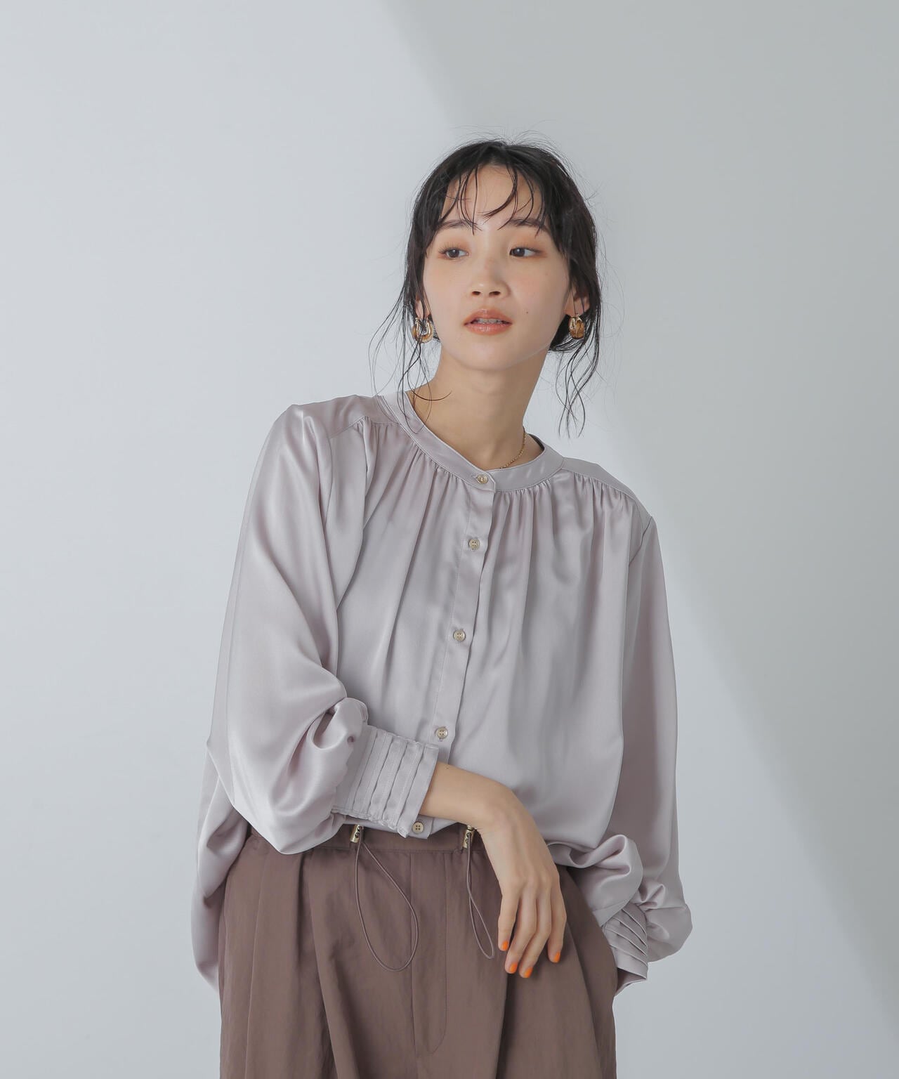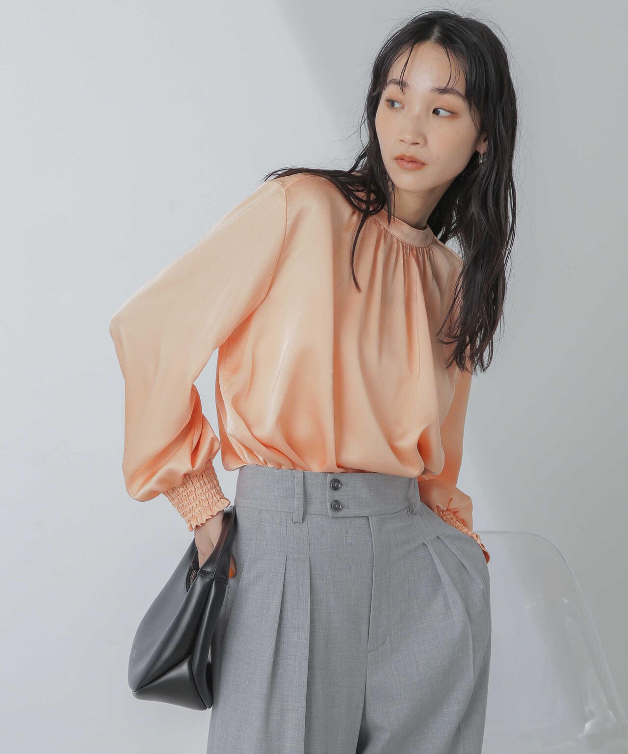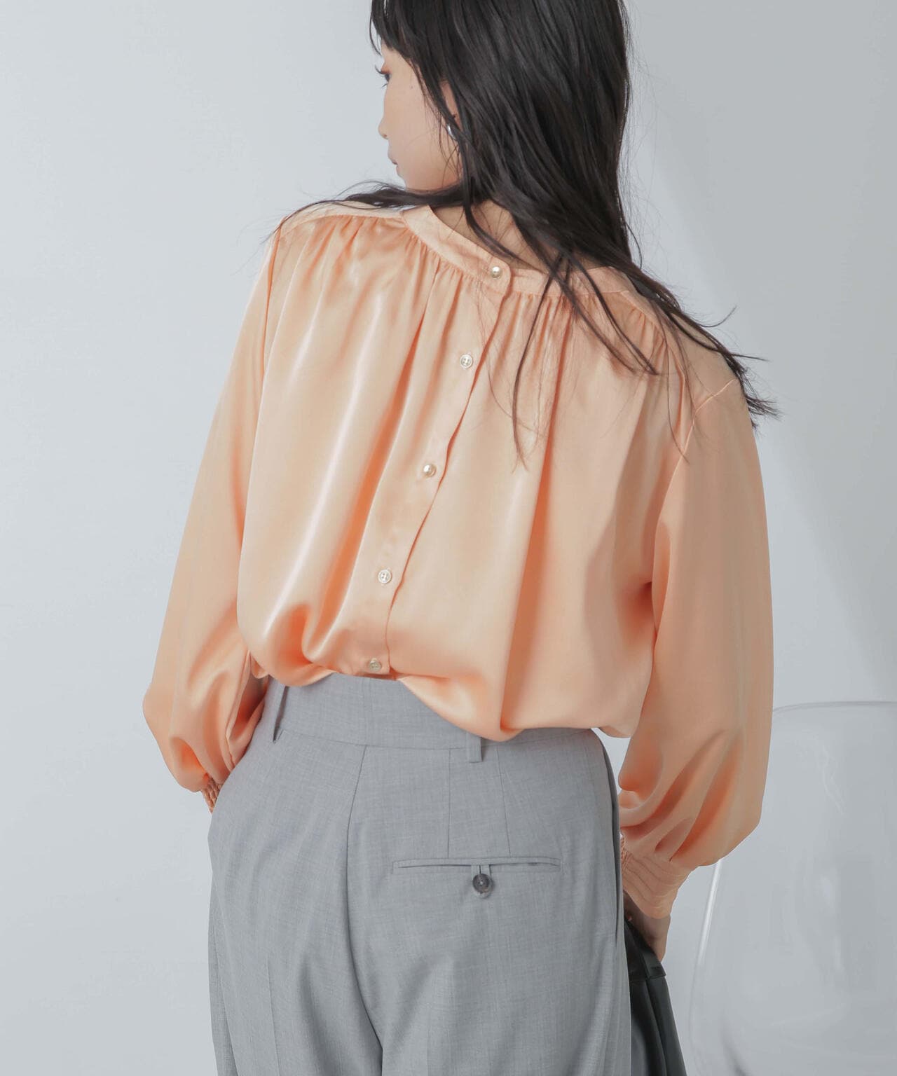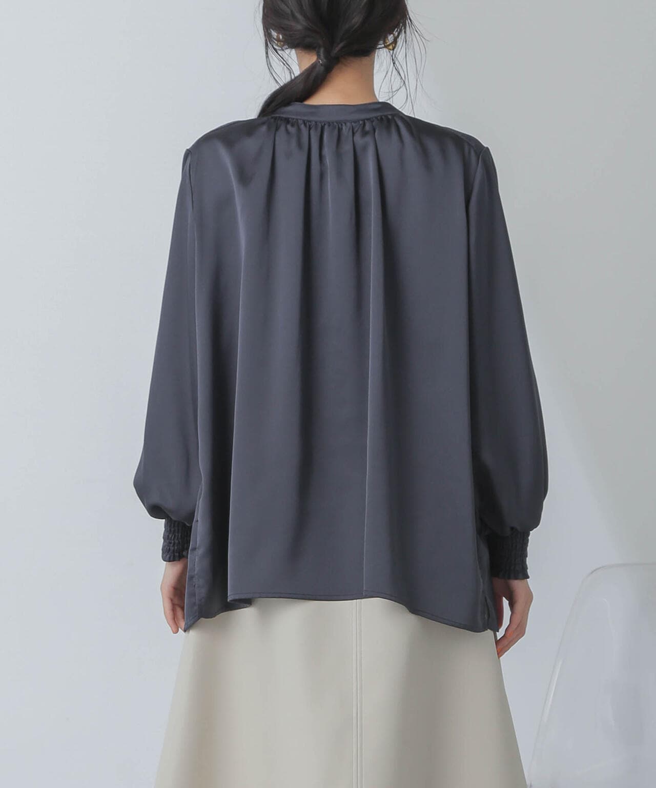 前後2wayサテンギャザーブラウス(セットアップ可)