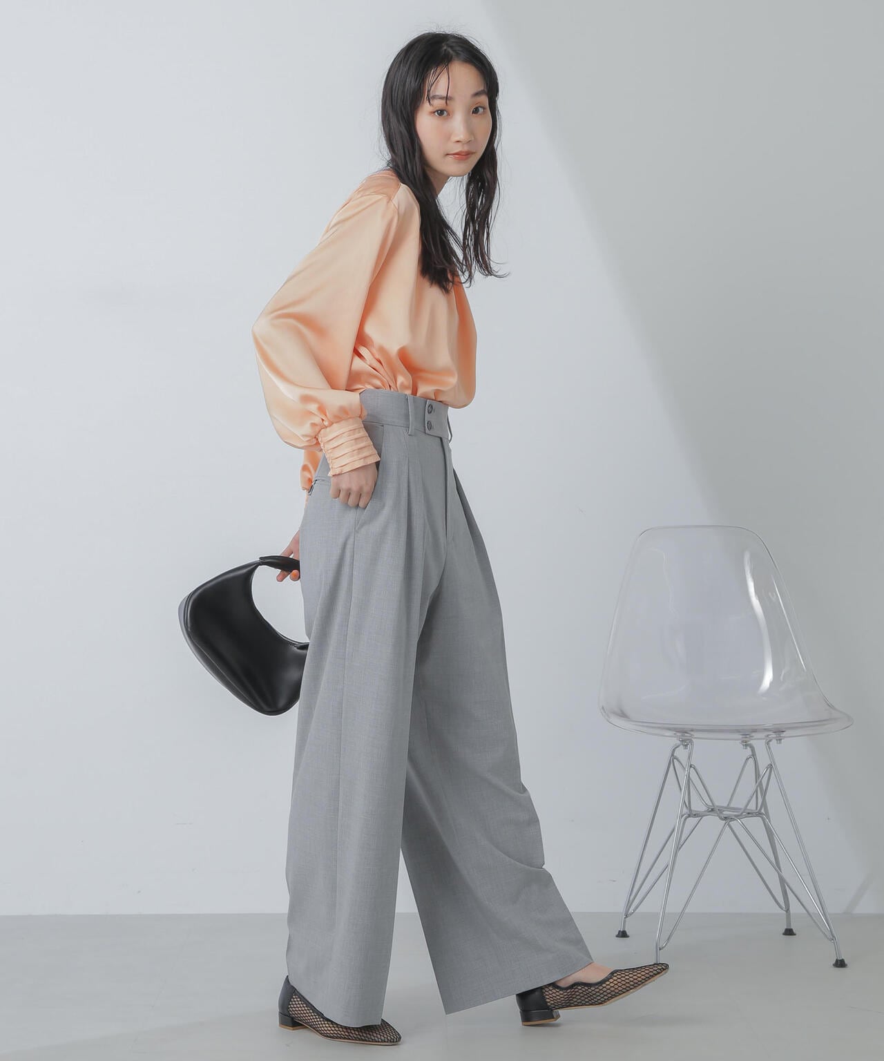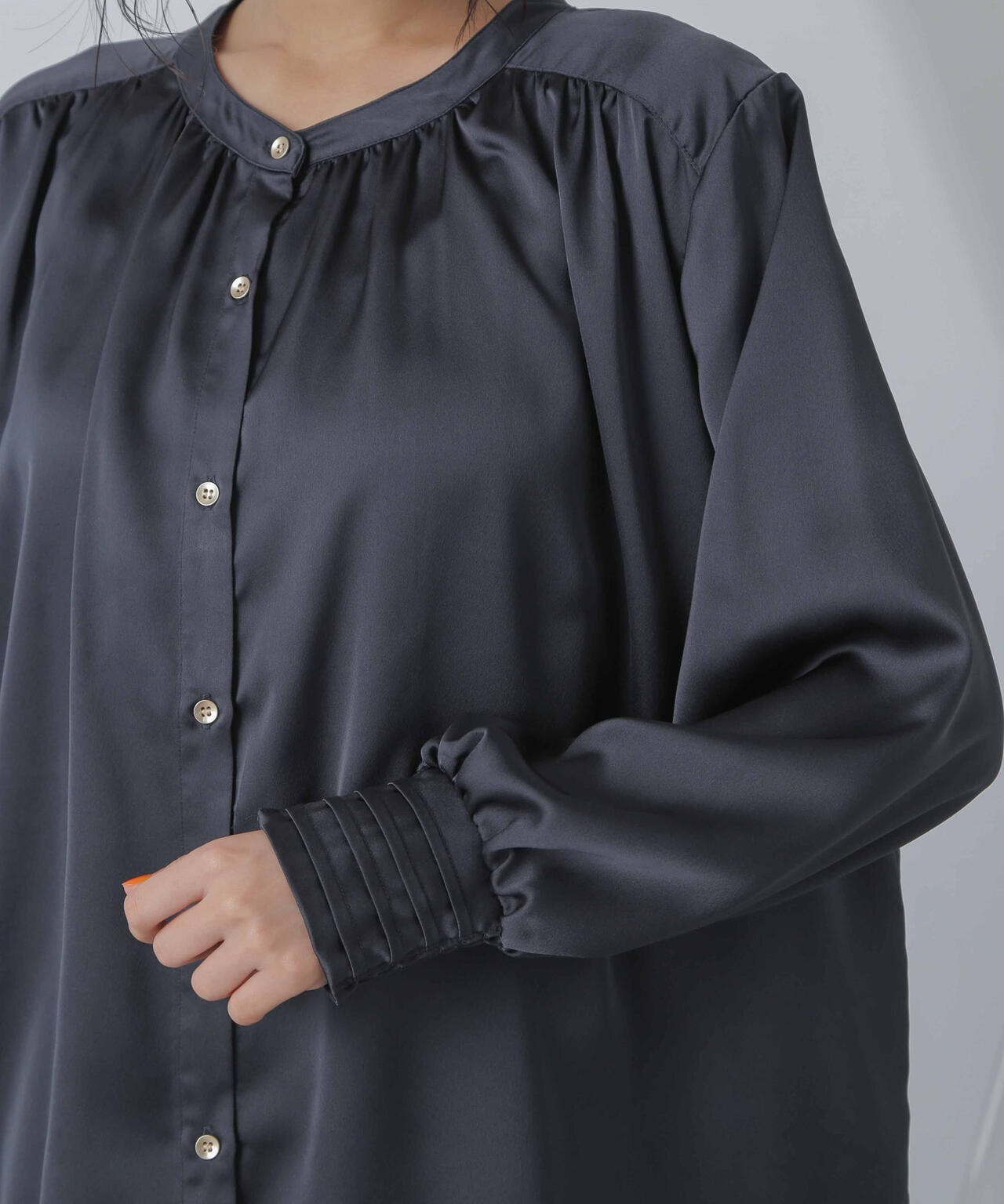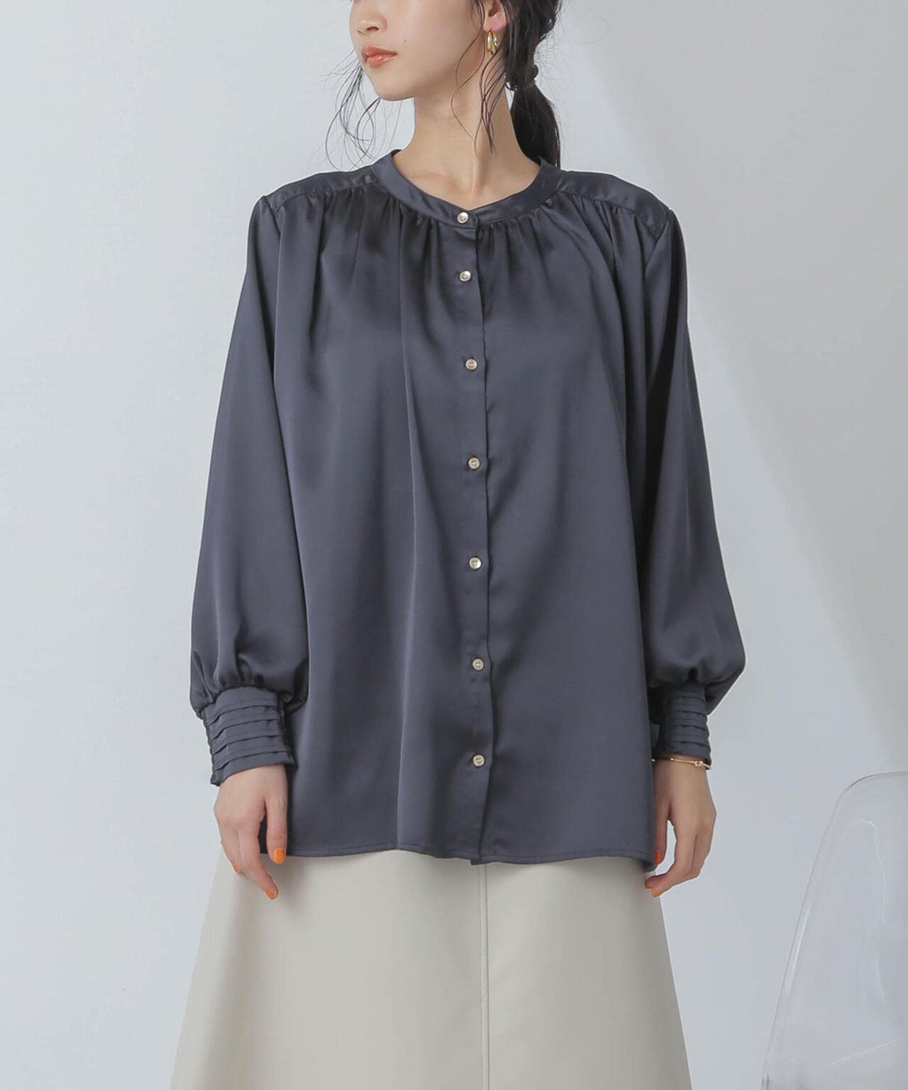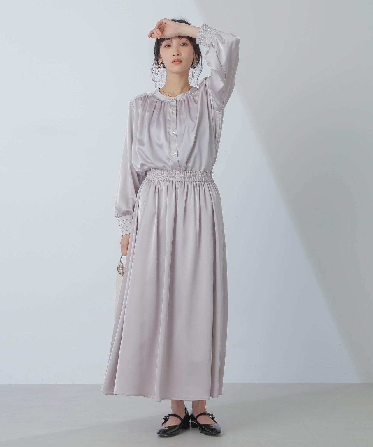 前後2wayサテンギャザーブラウス(セットアップ可)