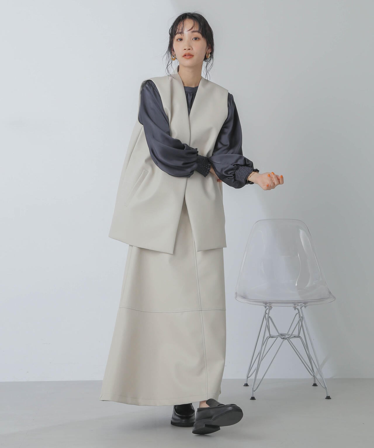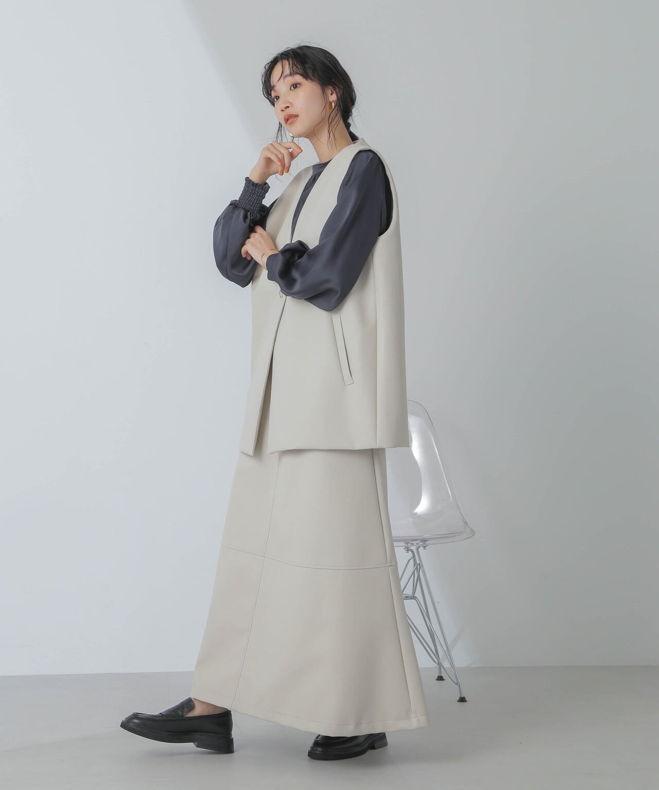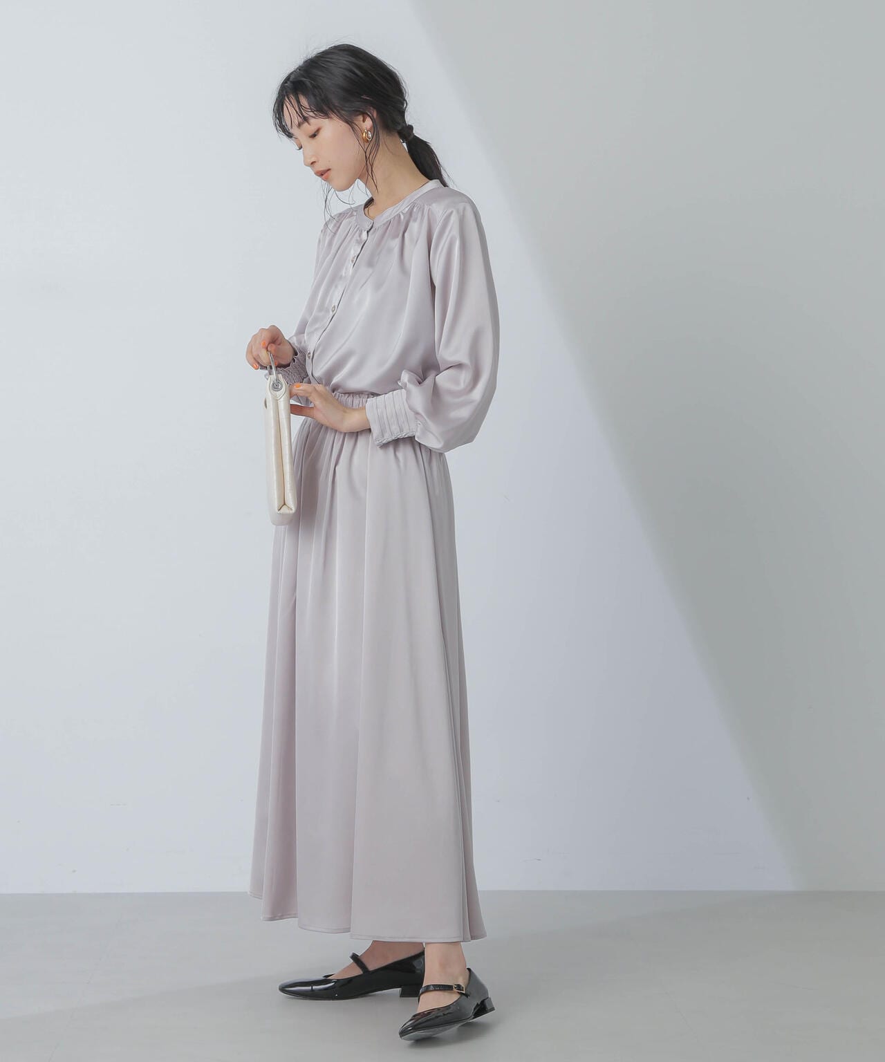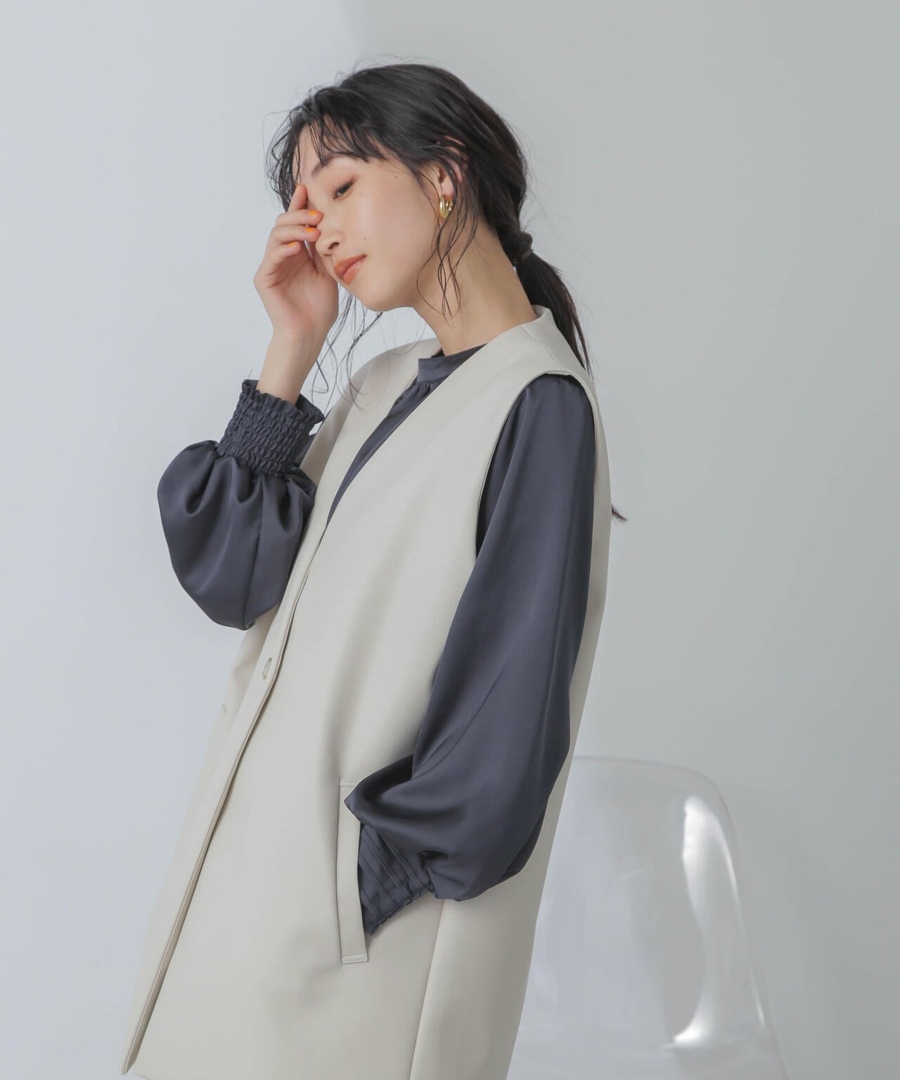 前後2wayサテンギャザーブラウス(セットアップ可)