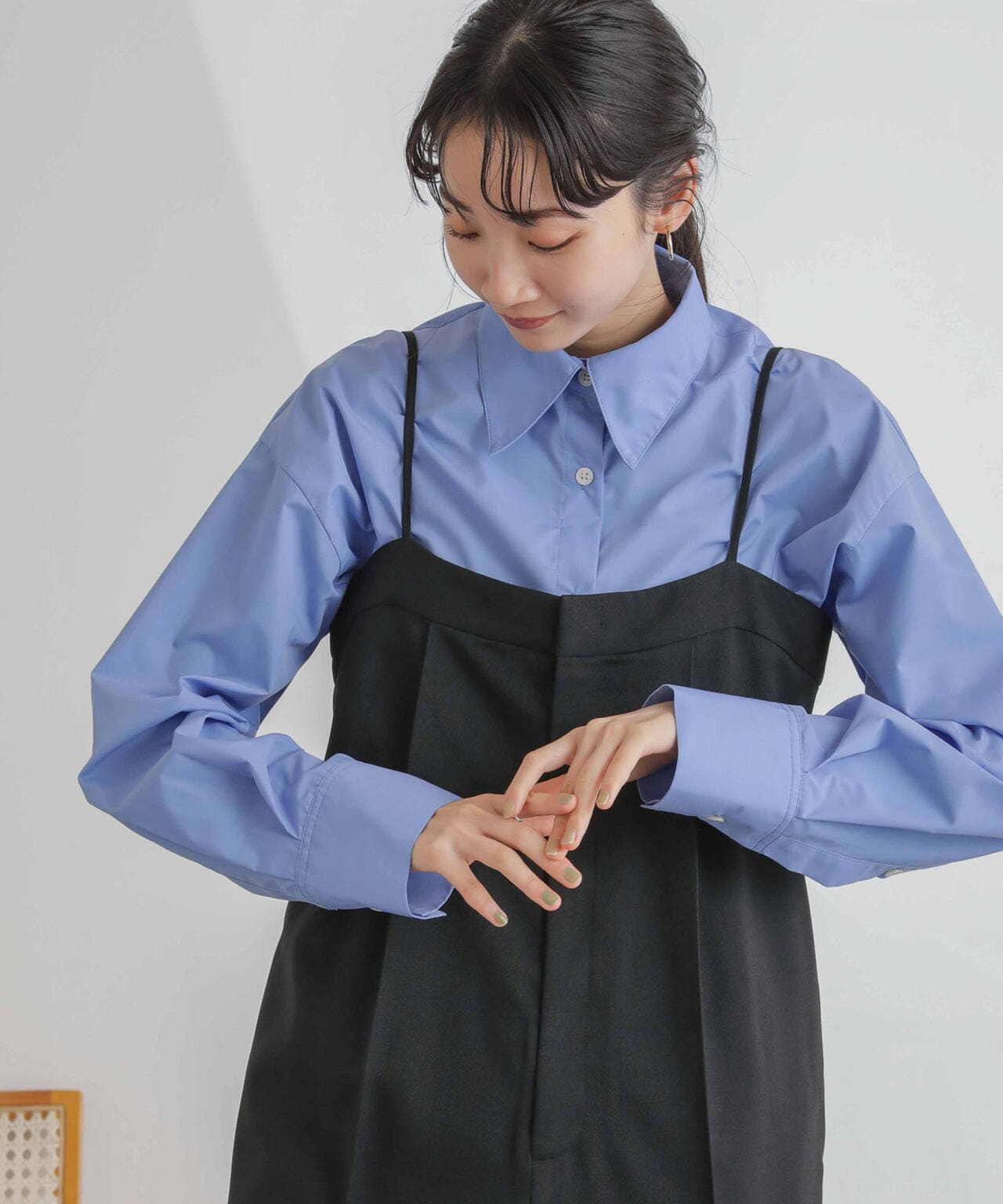 今年らしい短めの着丈がポイントの襟付きシャツ。程良くワイドな身幅と短い着丈のバランスは、スタイルアップも叶えてくれる一枚。1枚はもちろん、ジャンパースカートやキャミワンピなどの羽織りのスタイリングにもピッタリな万能アイテムです。