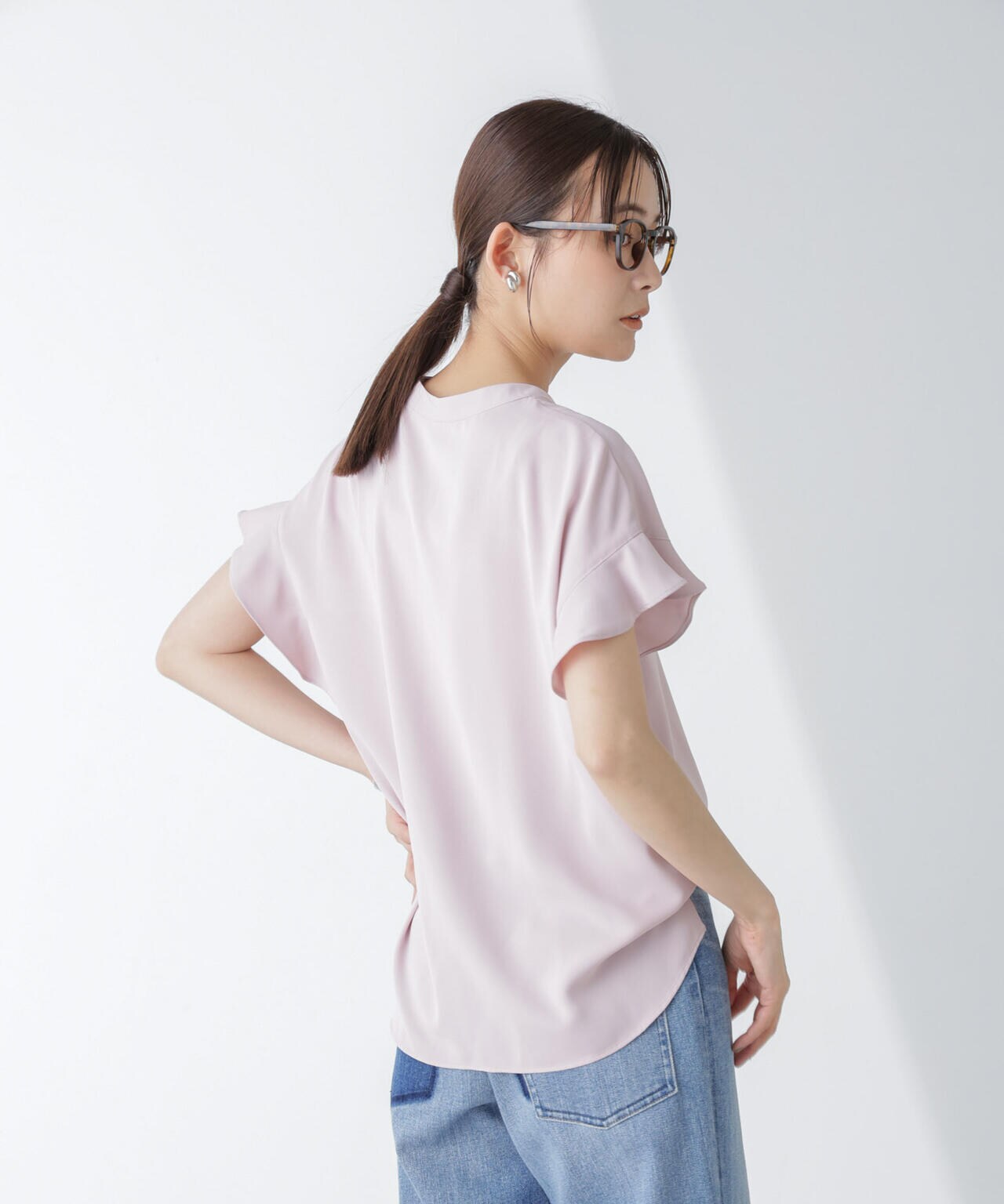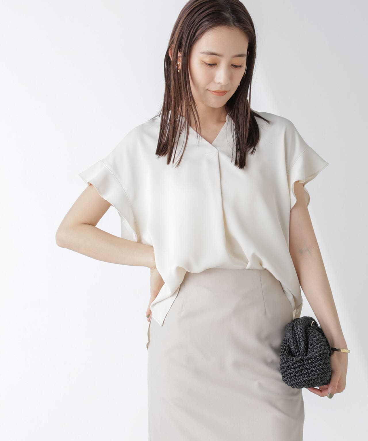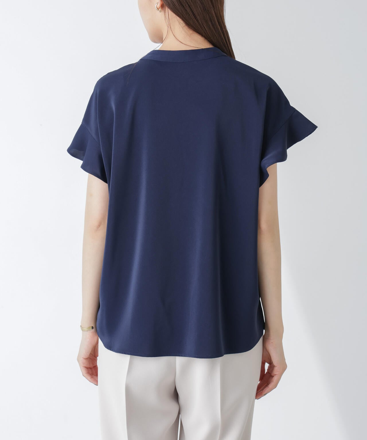 ・フレアスリーブが大人フェミニンな印象の半袖ブラウス