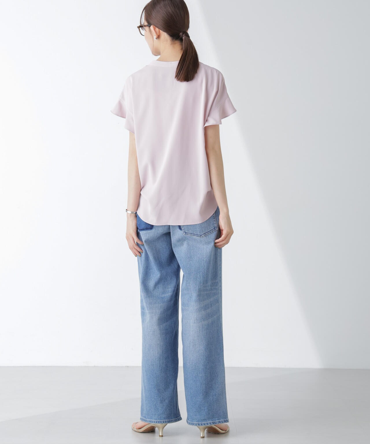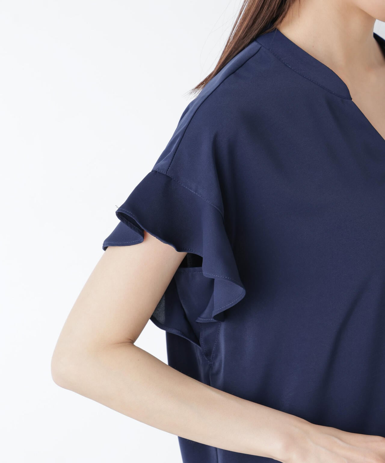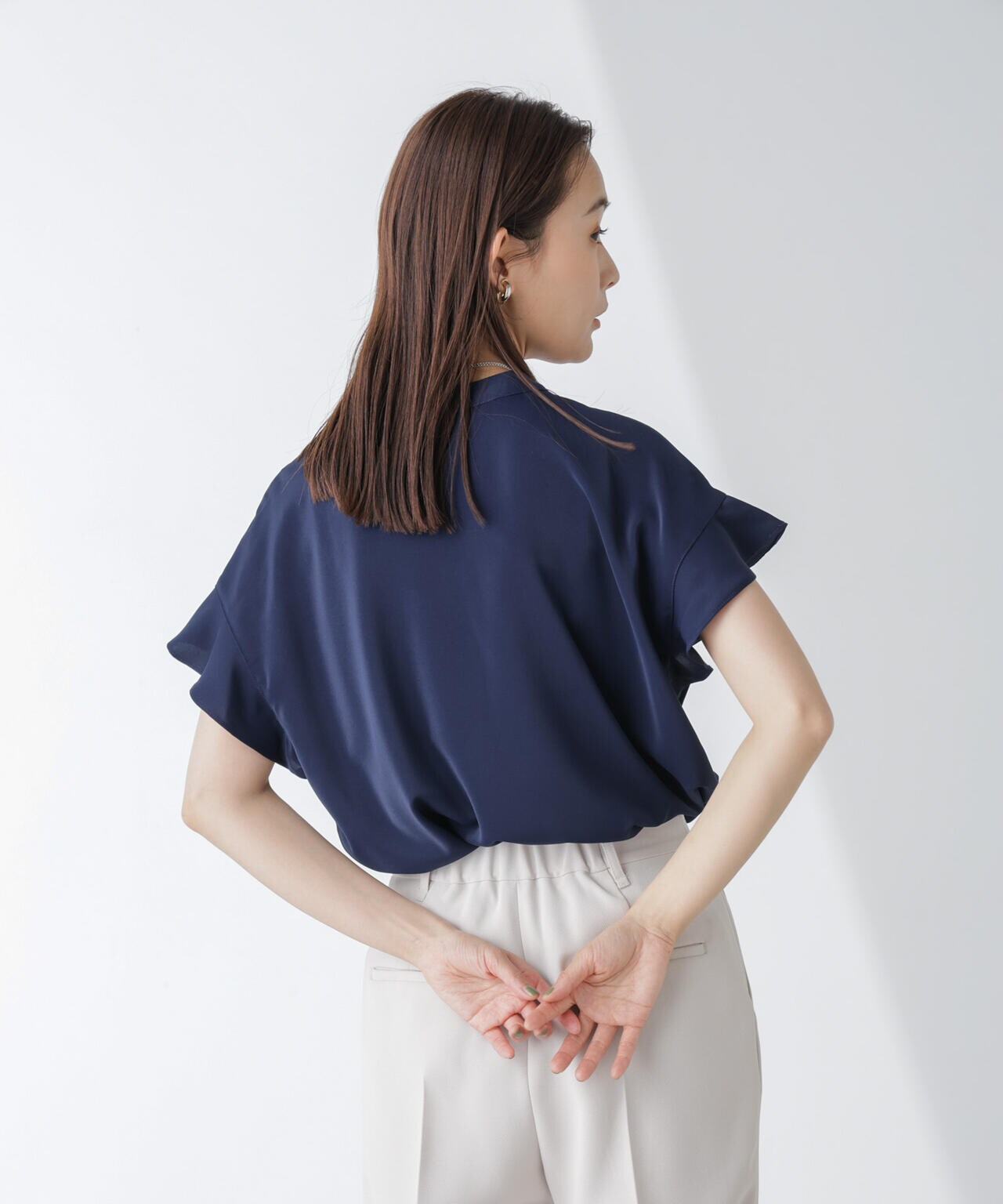 ・フレアスリーブが大人フェミニンな印象の半袖ブラウス