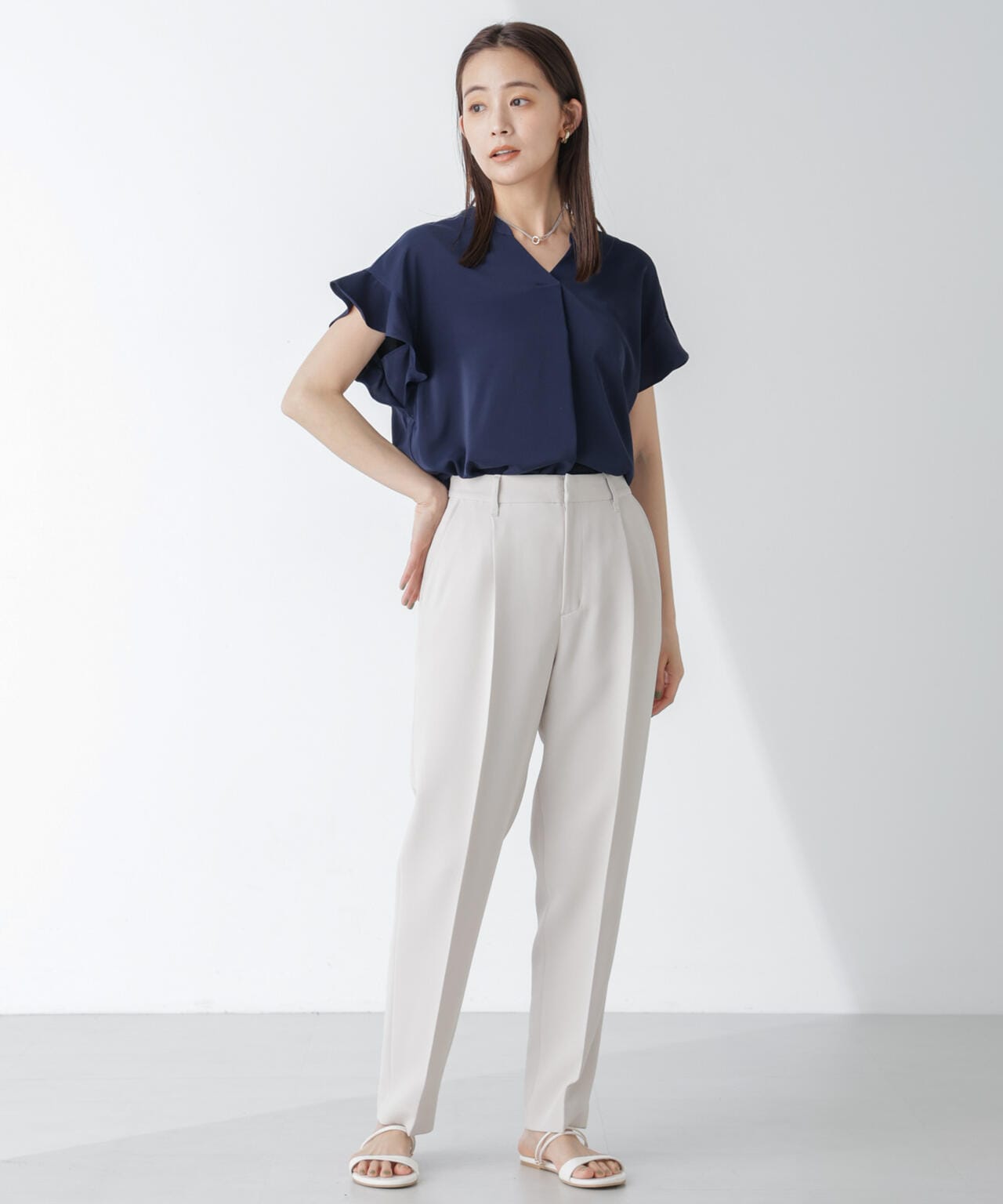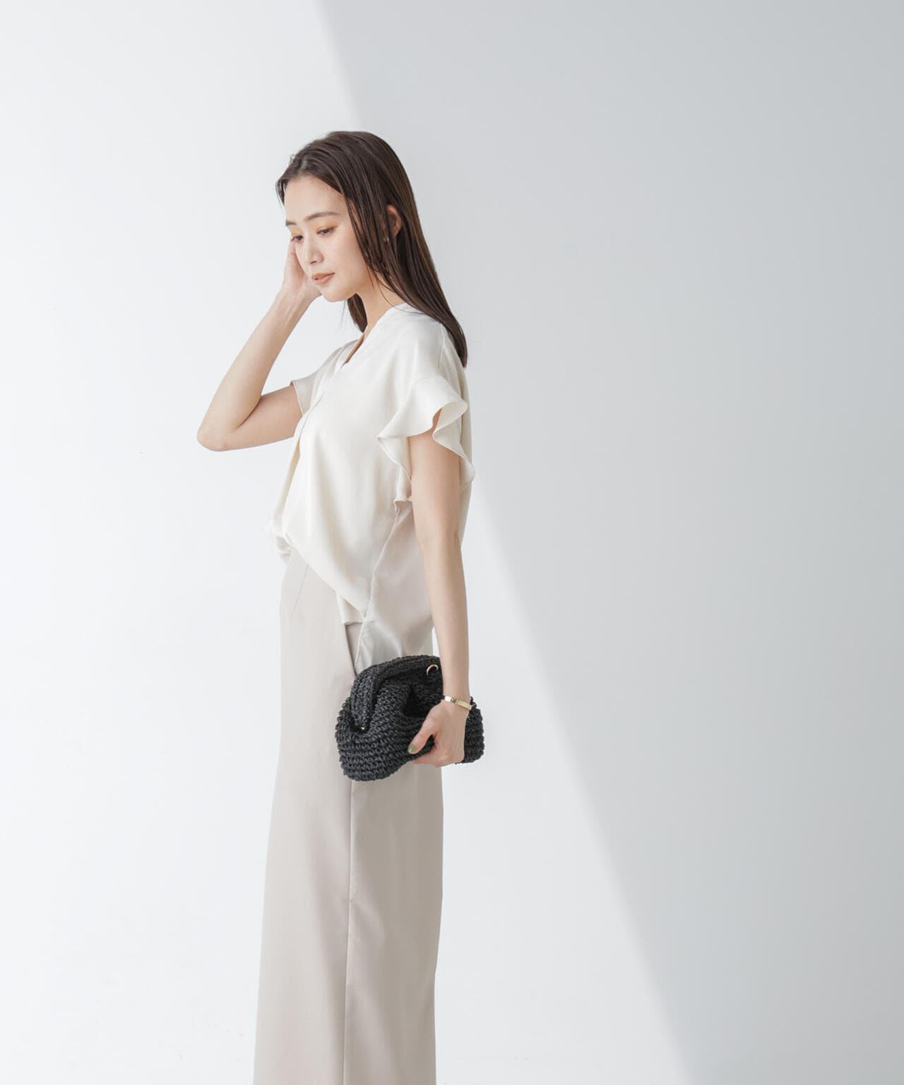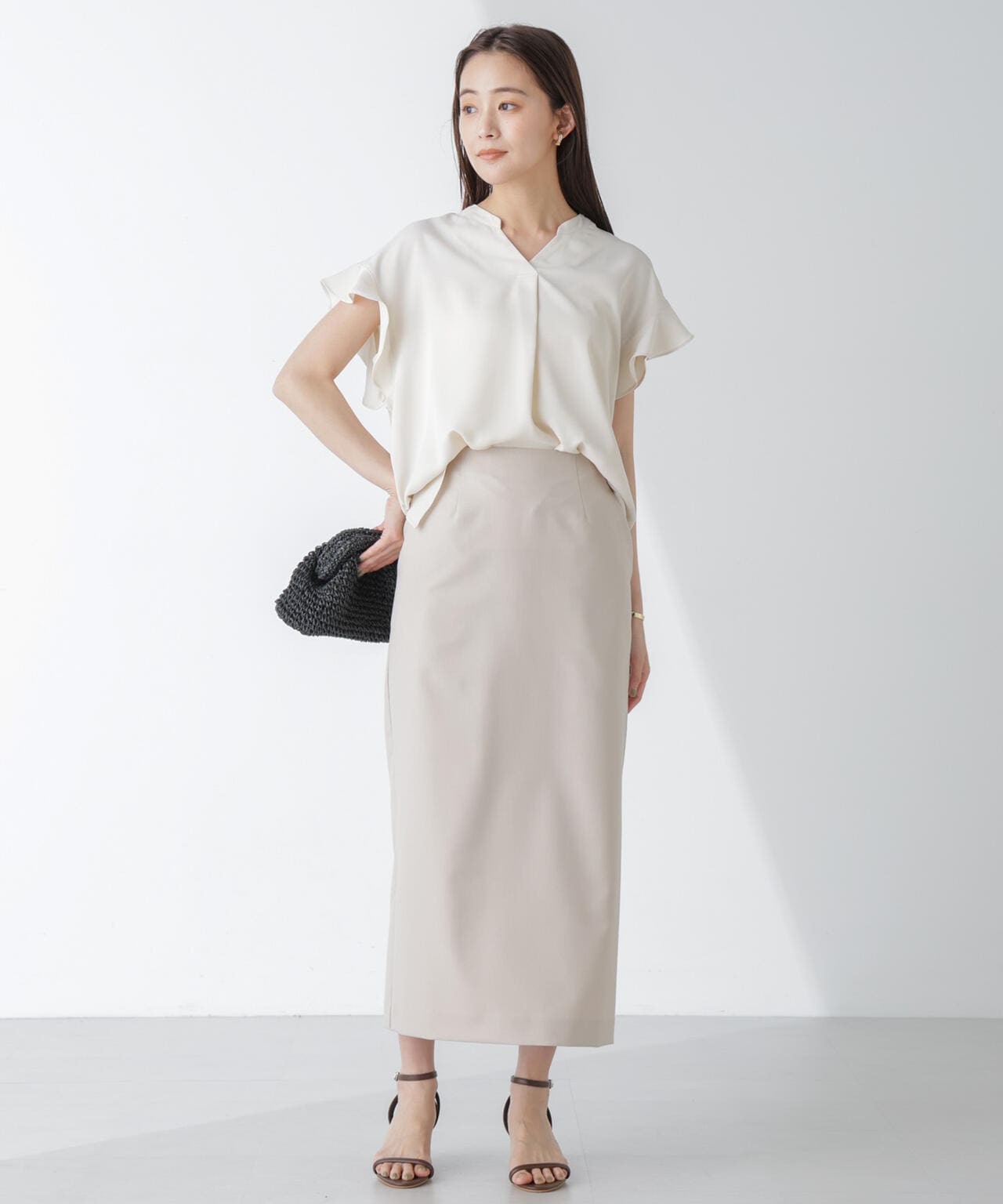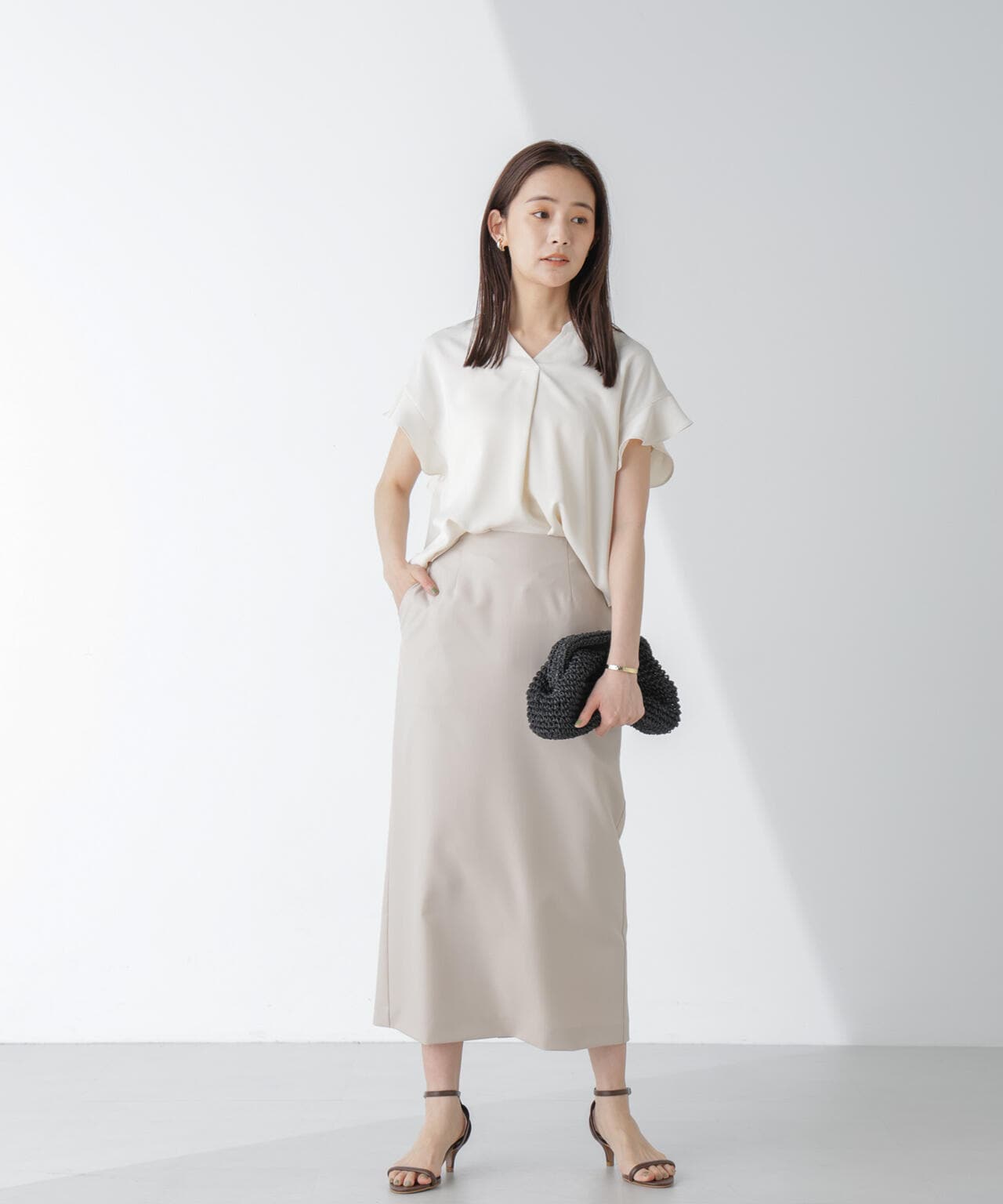 キレイめに通勤スタイルにはもちろん、デニムやカジュアルボトムとの合わせもおすすめです。