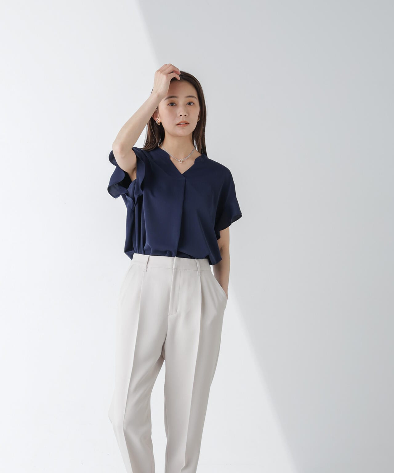『キレイめシーンに重宝する大人フェミニンブラウス』