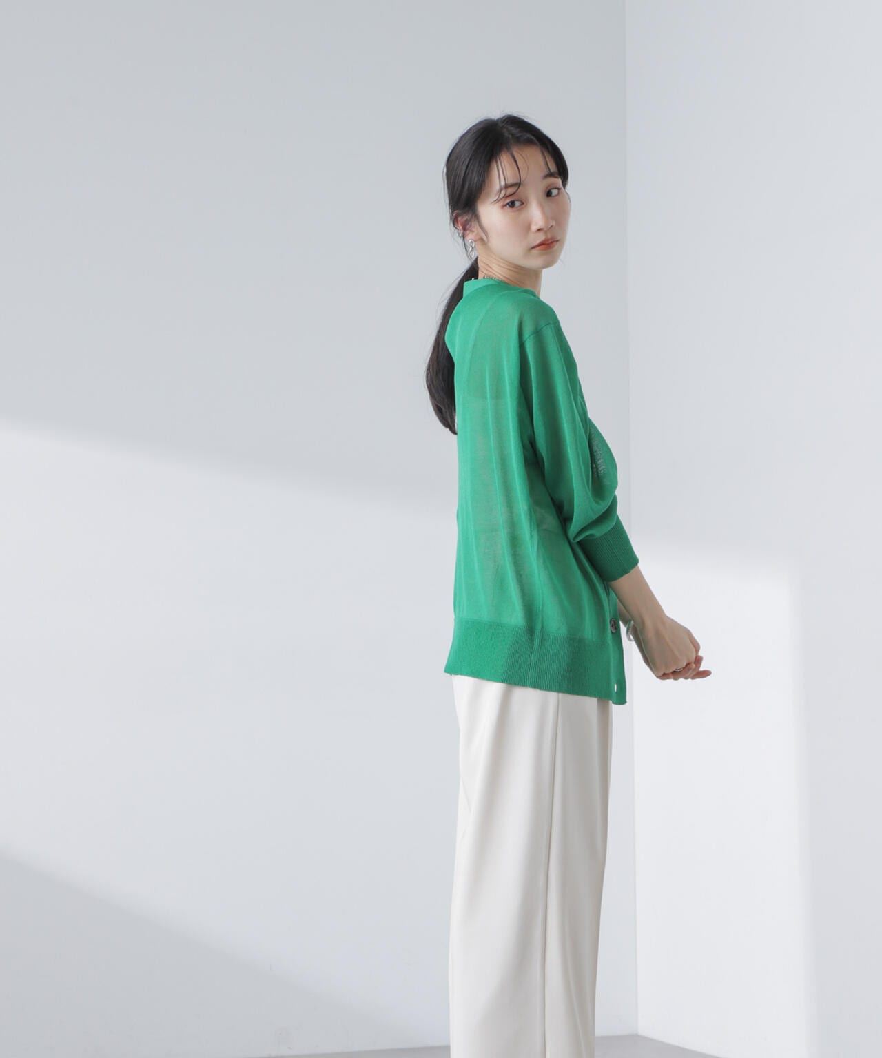 ・シアー感のある素材が涼し気で抜け感のあるVネックカーディガン