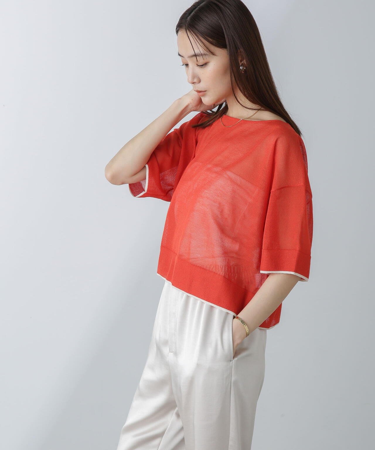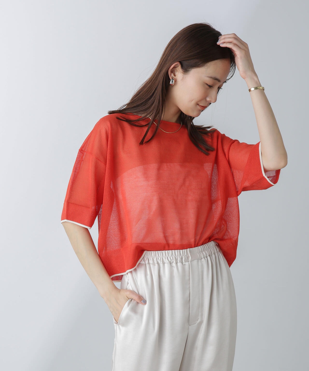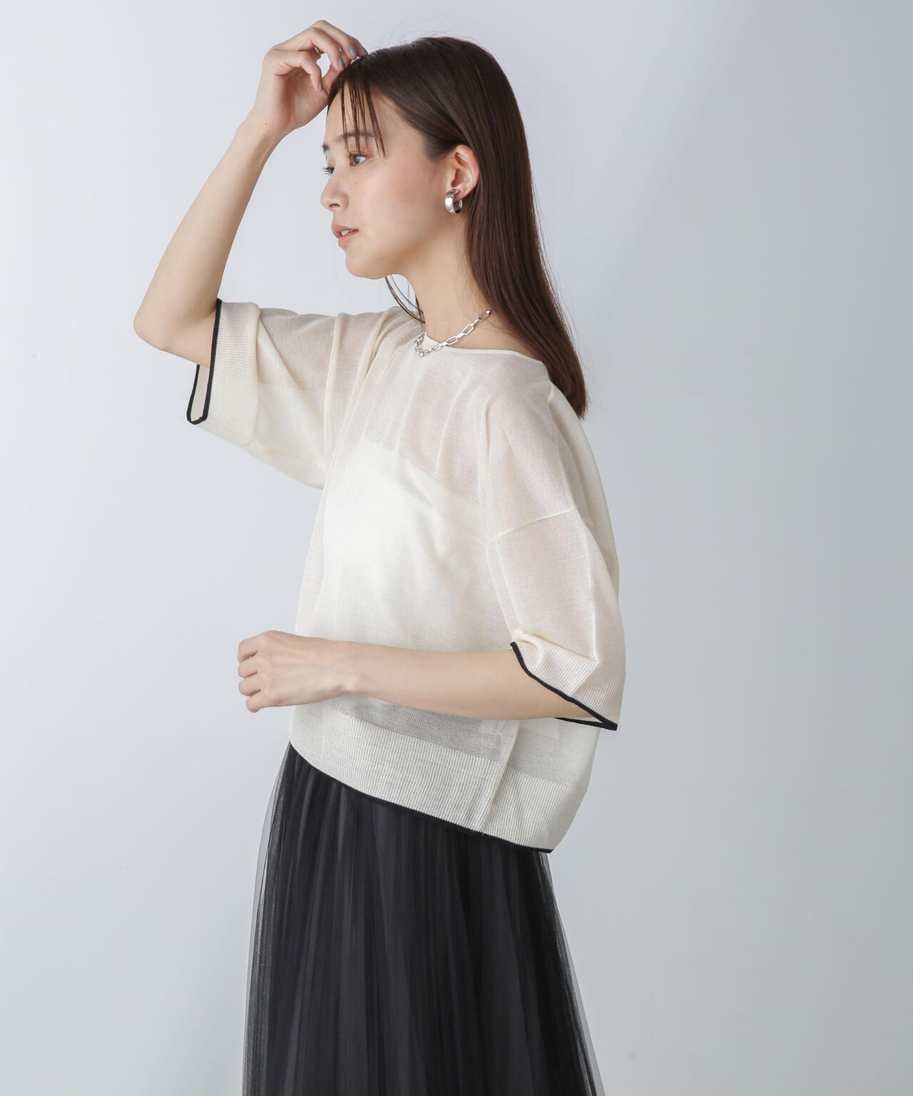 『軽やかなレイヤードが叶うシアーニット』