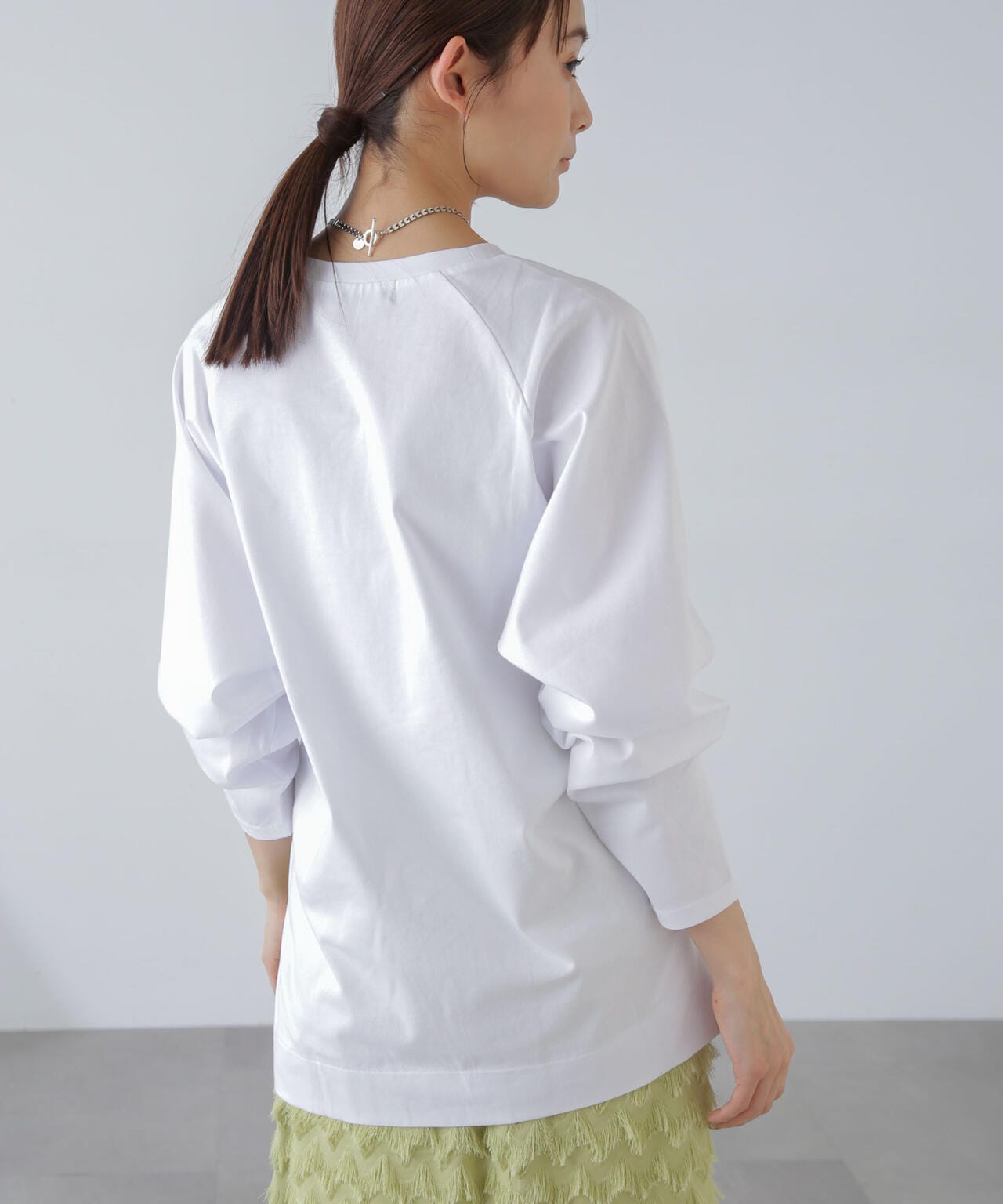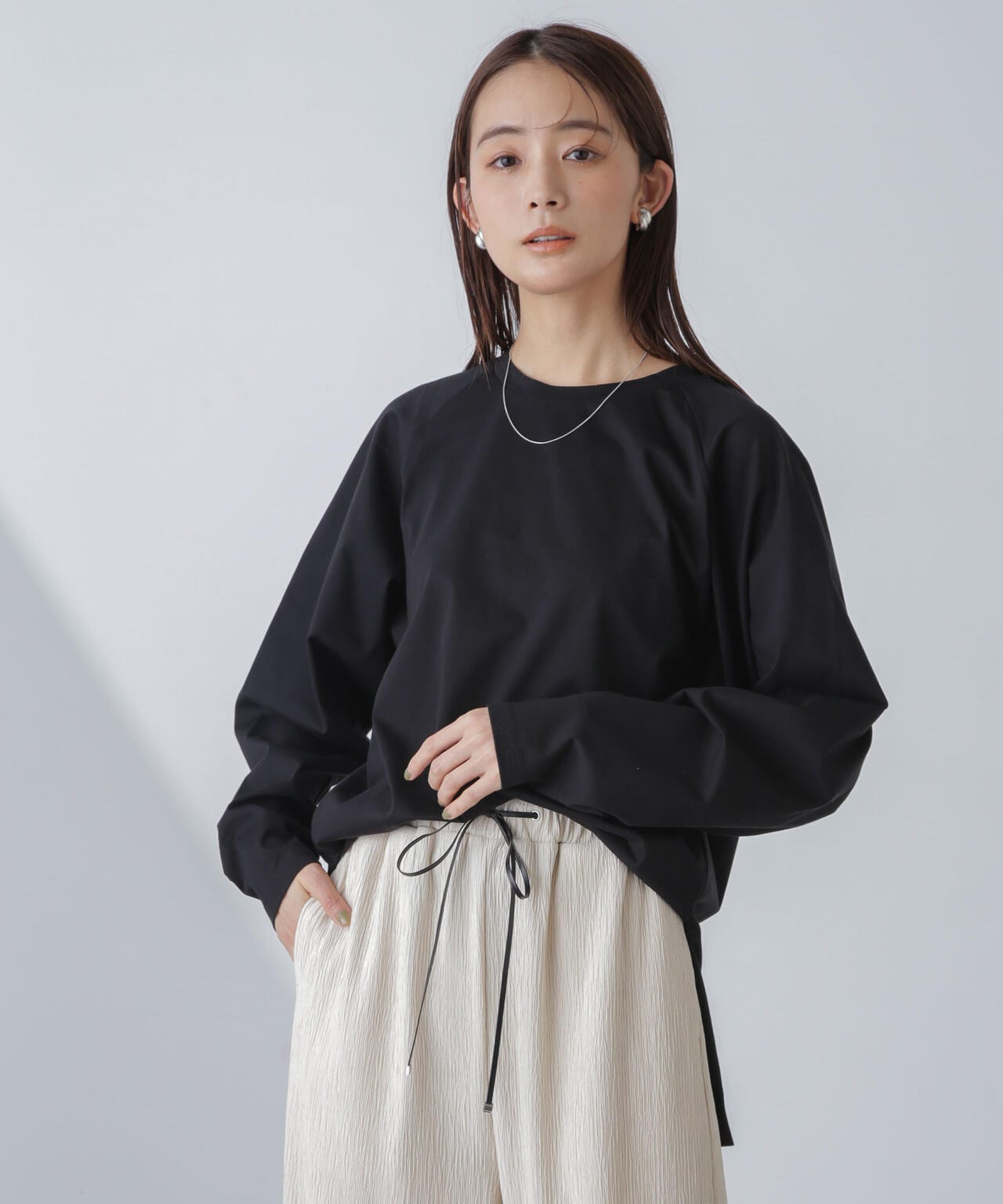 ・肩周りが華奢に見えるラグランスリーブのロンT