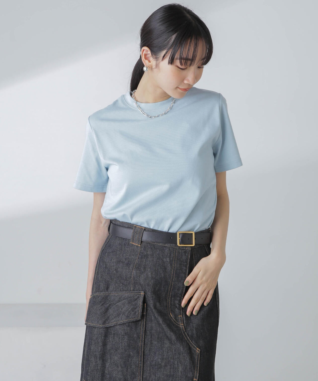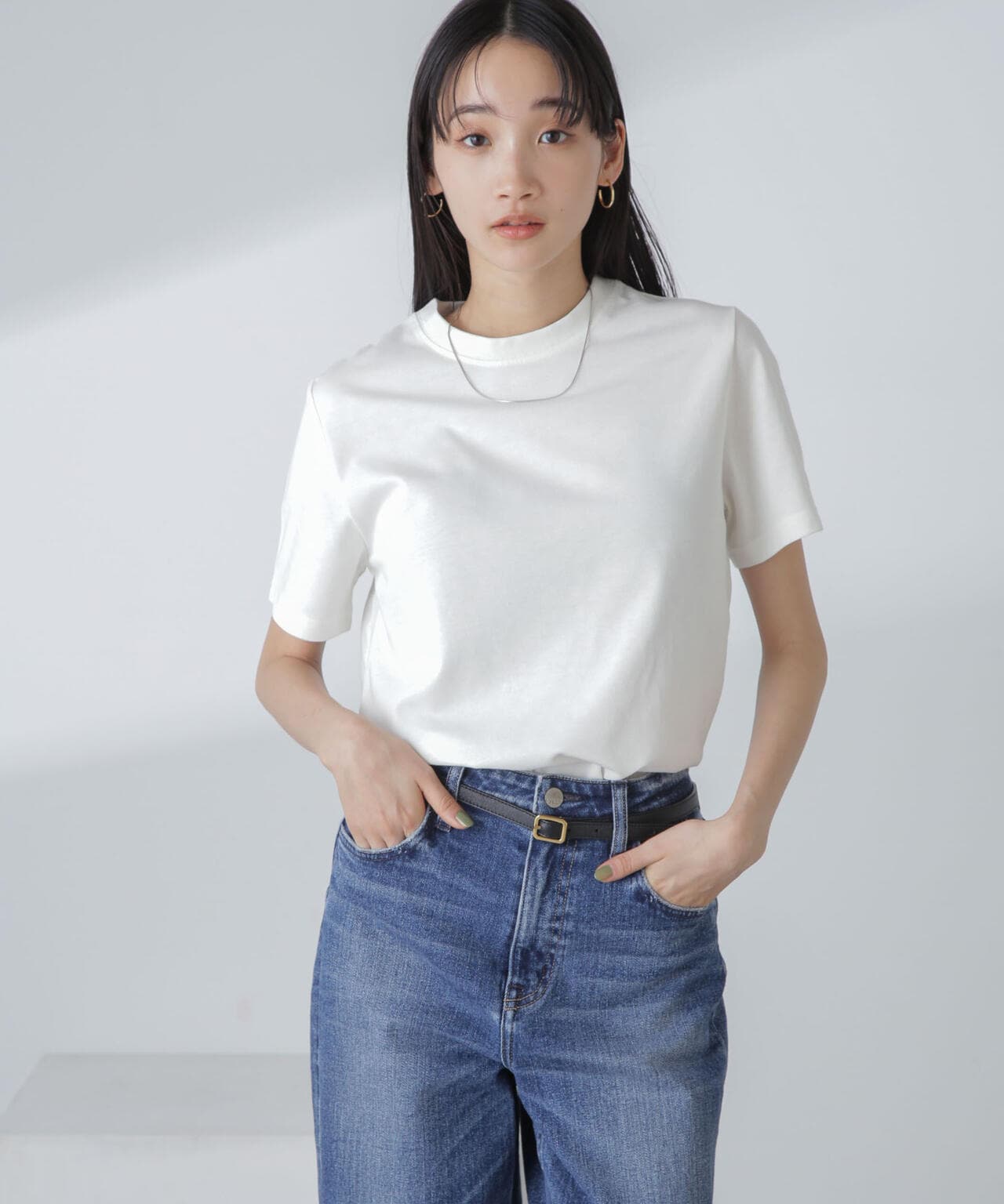 デイリーに頼れる高機能性を備えたベーシックな半袖Tシャツ。単品でトップスとしての着回しはもちろん、インナー使いもしやすくコーディネートに重宝。キレイめアイテムとも合わせやすいカジュアルすぎない素材感で、ジャケットのインナーとしても様になります。