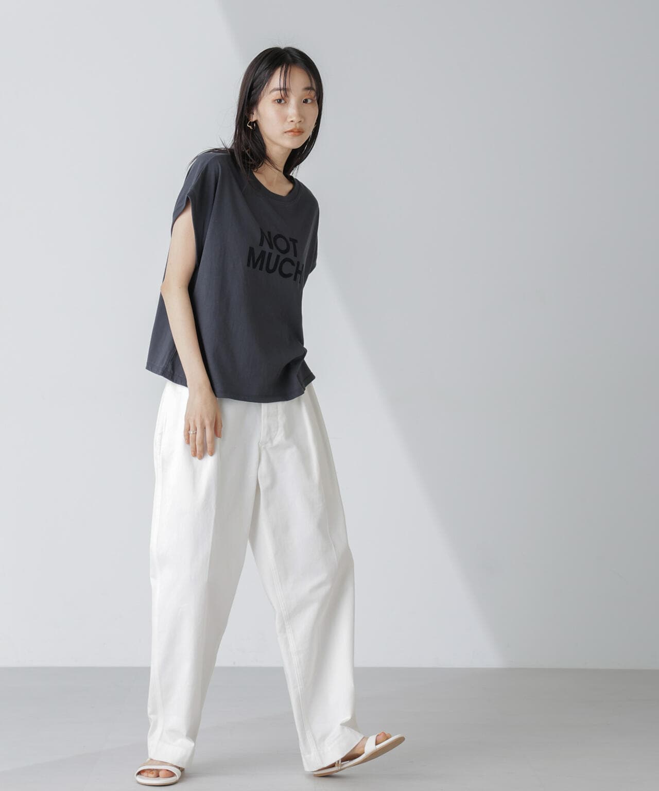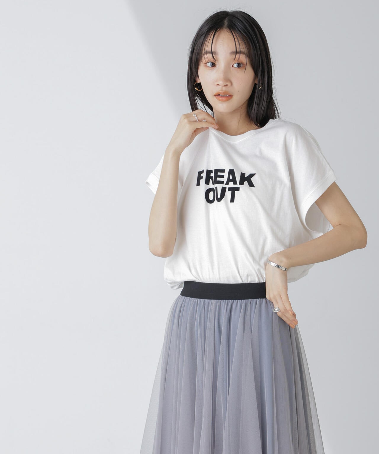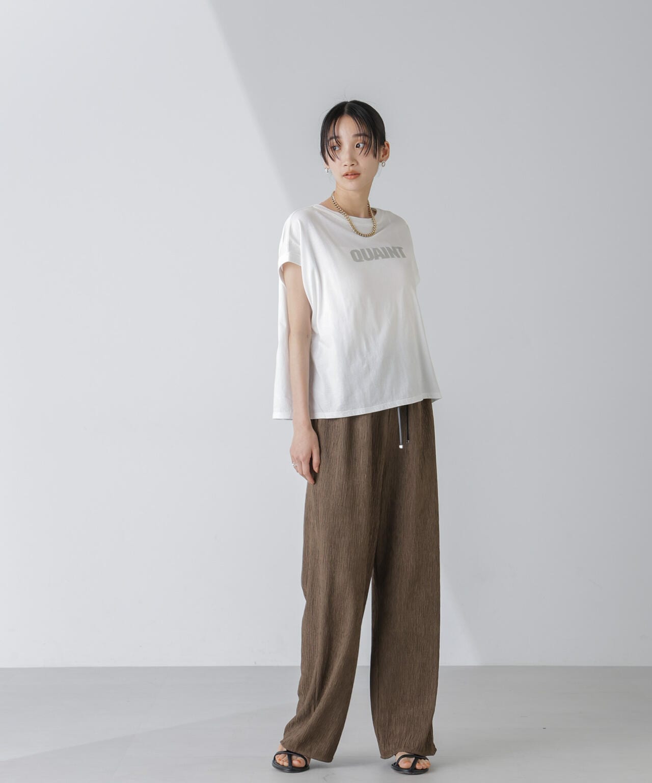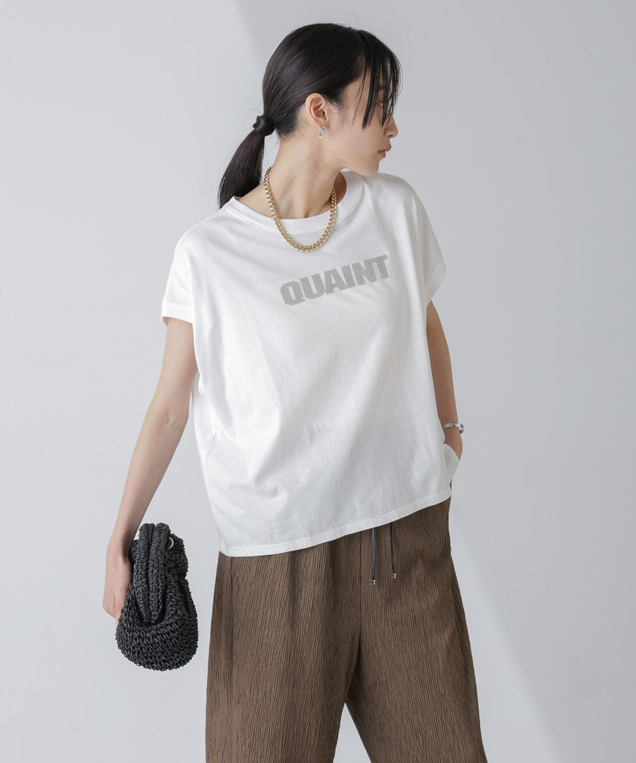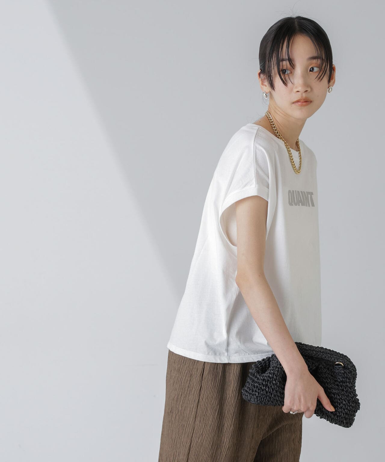 表面感のあるフロッキーロゴが目を引くロゴTシャツ。トレンド見えするややワイドシルエットのクロップド丈で、どんなボトムにも合わせやすいデザイン。サロペットやキャミワンピ、ジャケットなどのインナーとしても着回せるので、幅広いコーディネートを楽しめそう!
