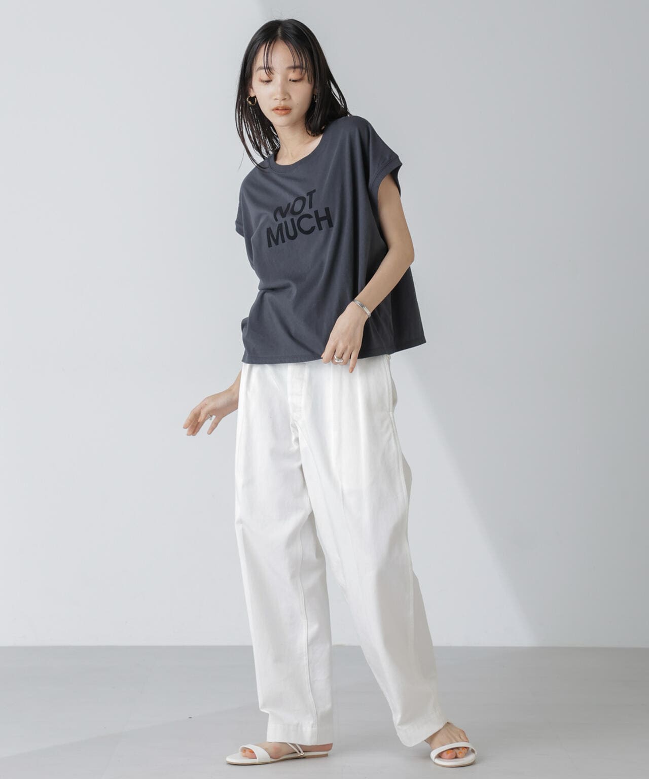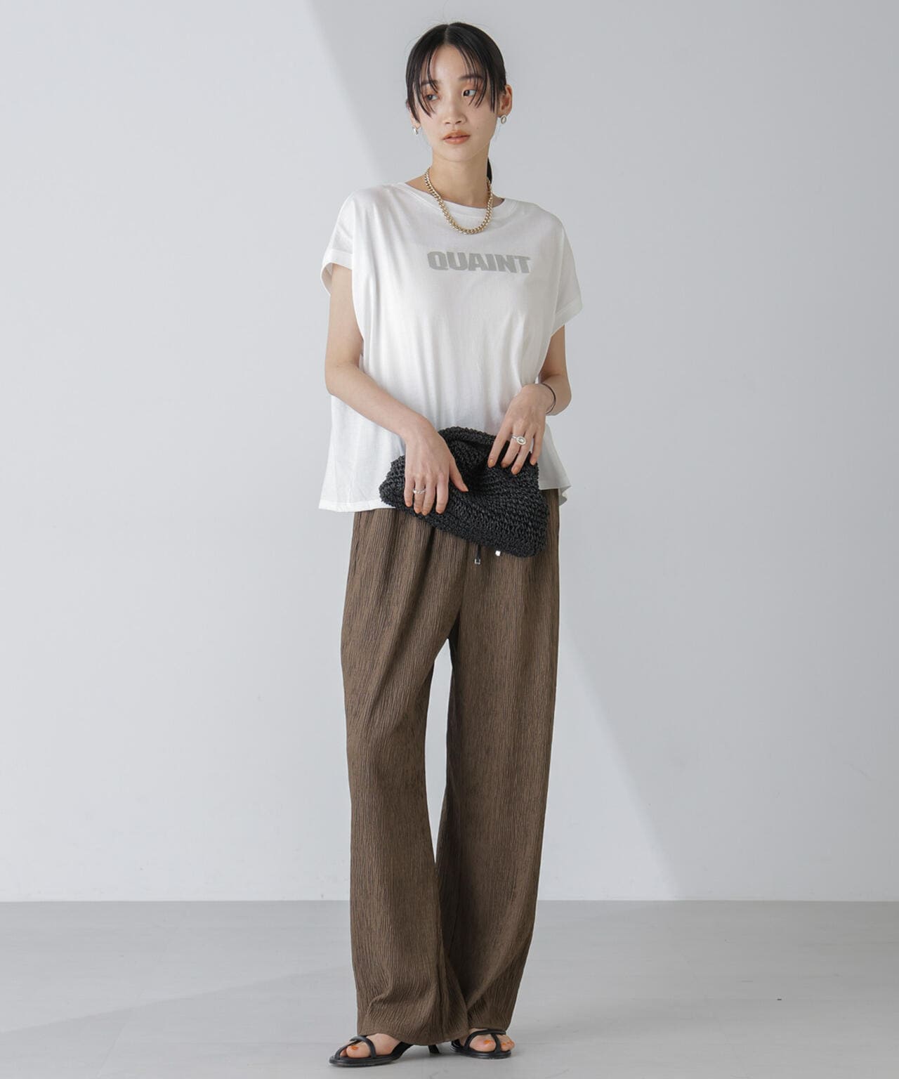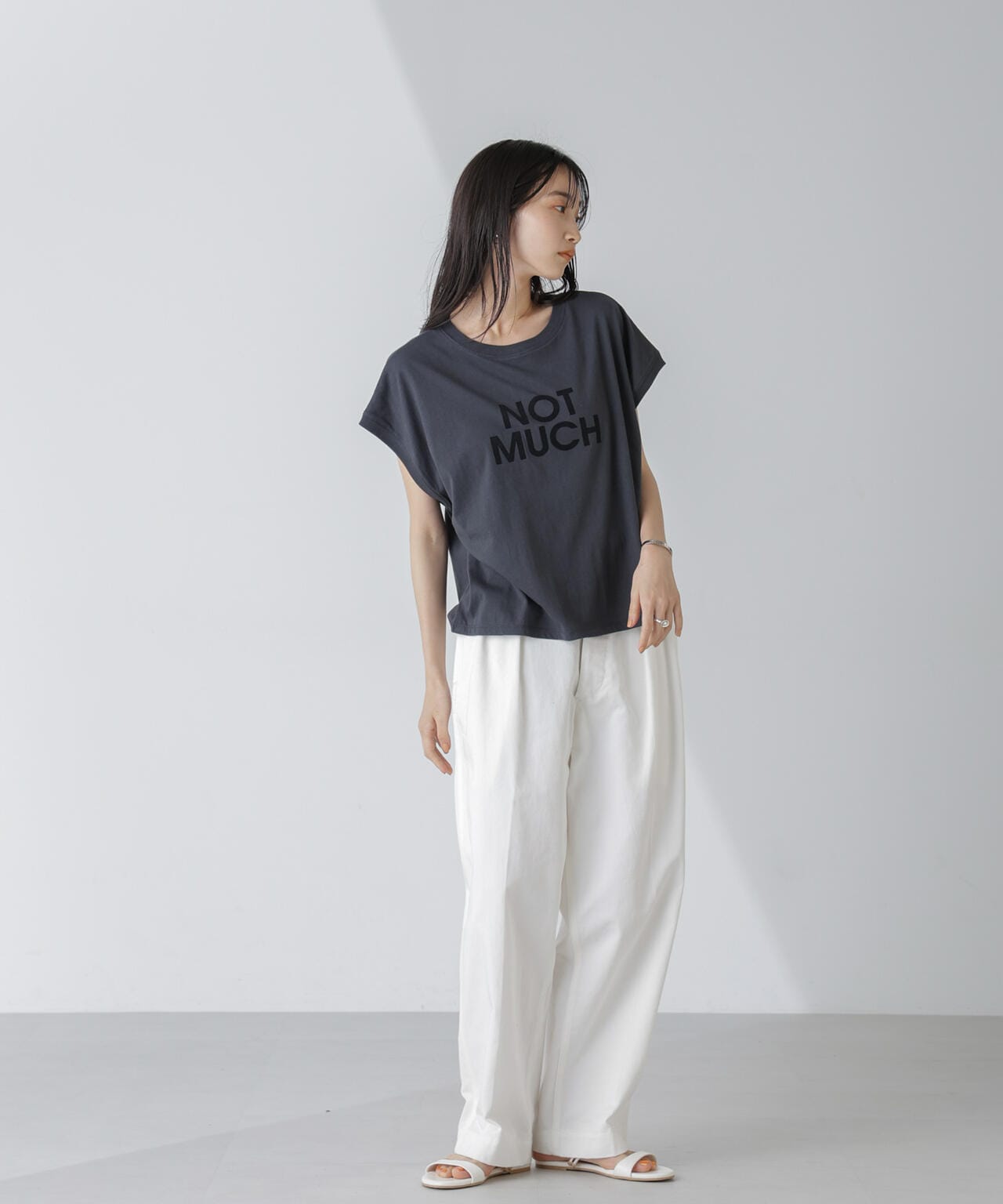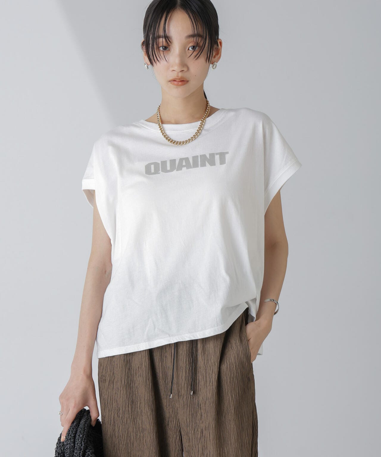 表面感のあるフロッキーロゴが目を引くロゴTシャツ。トレンド見えするややワイドシルエットのクロップド丈で、どんなボトムにも合わせやすいデザイン。サロペットやキャミワンピ、ジャケットなどのインナーとしても着回せるので、幅広いコーディネートを楽しめそう!