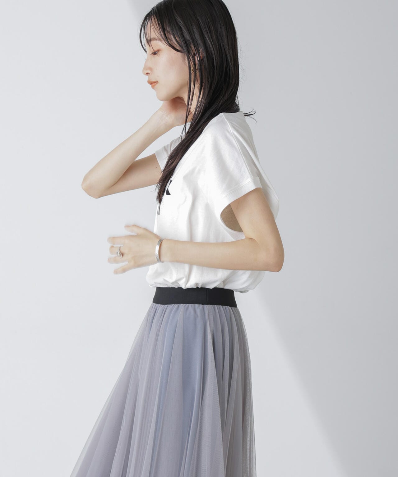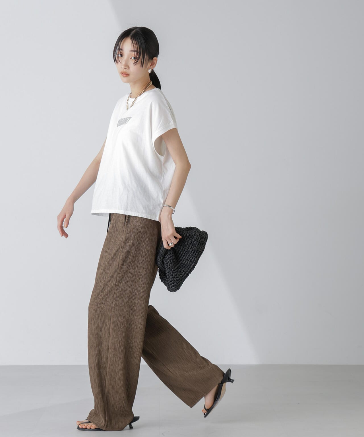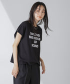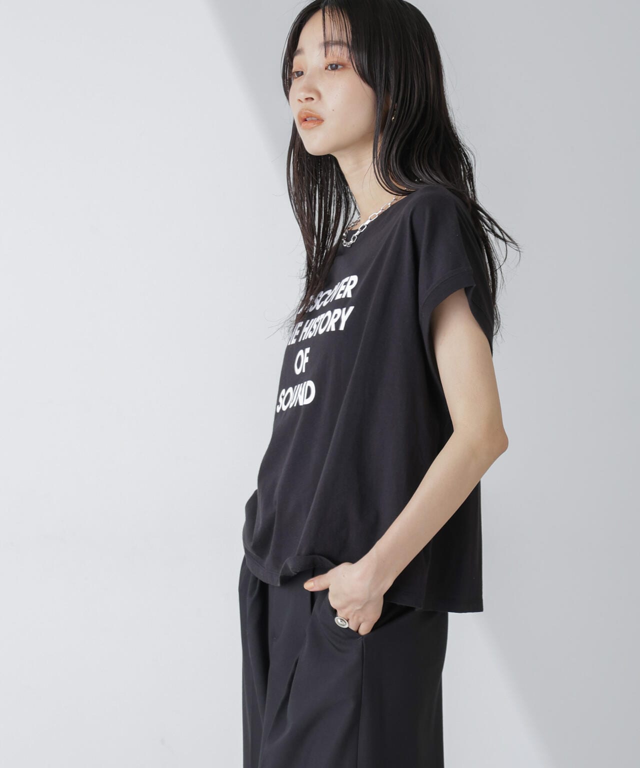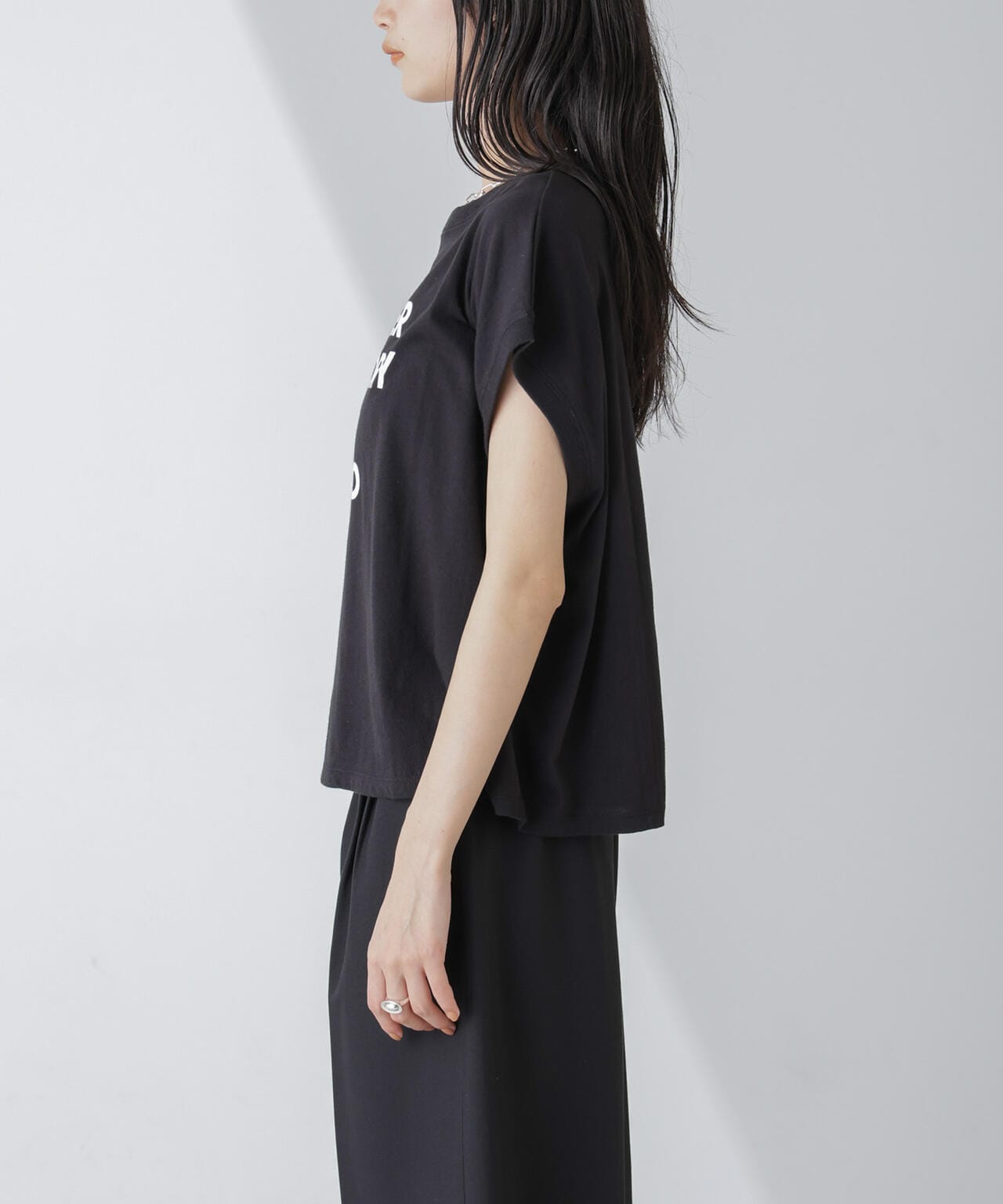 表面感のあるフロッキーロゴが目を引くロゴTシャツ。トレンド見えするややワイドシルエットのクロップド丈で、どんなボトムにも合わせやすいデザイン。サロペットやキャミワンピ、ジャケットなどのインナーとしても着回せるので、幅広いコーディネートを楽しめそう!