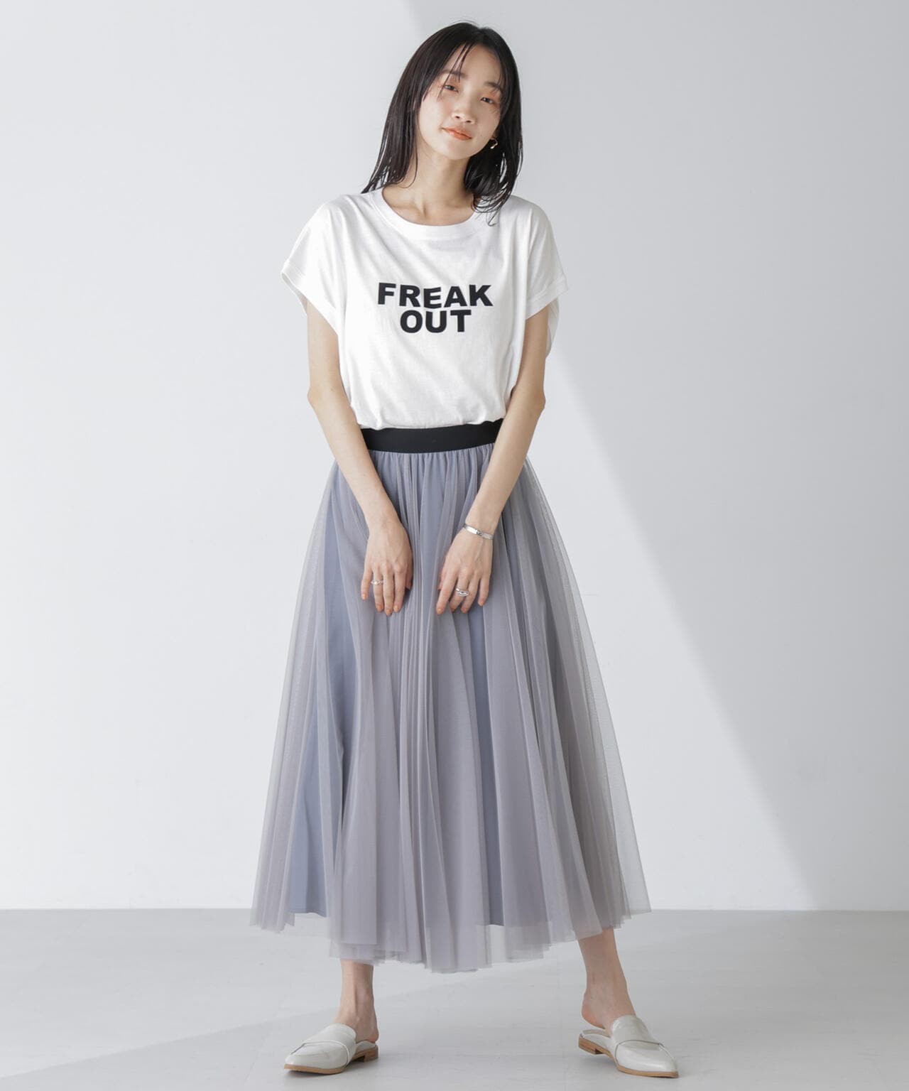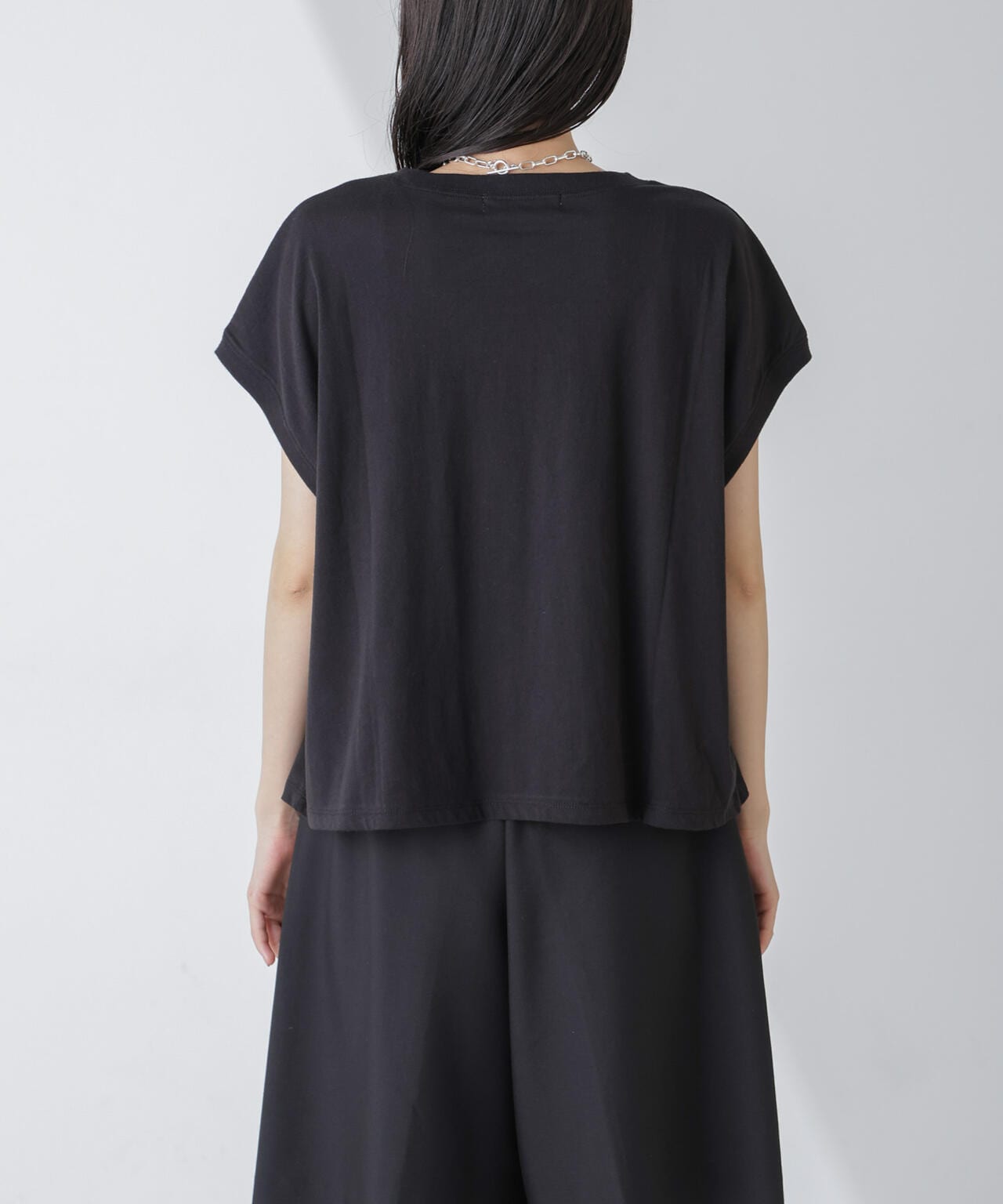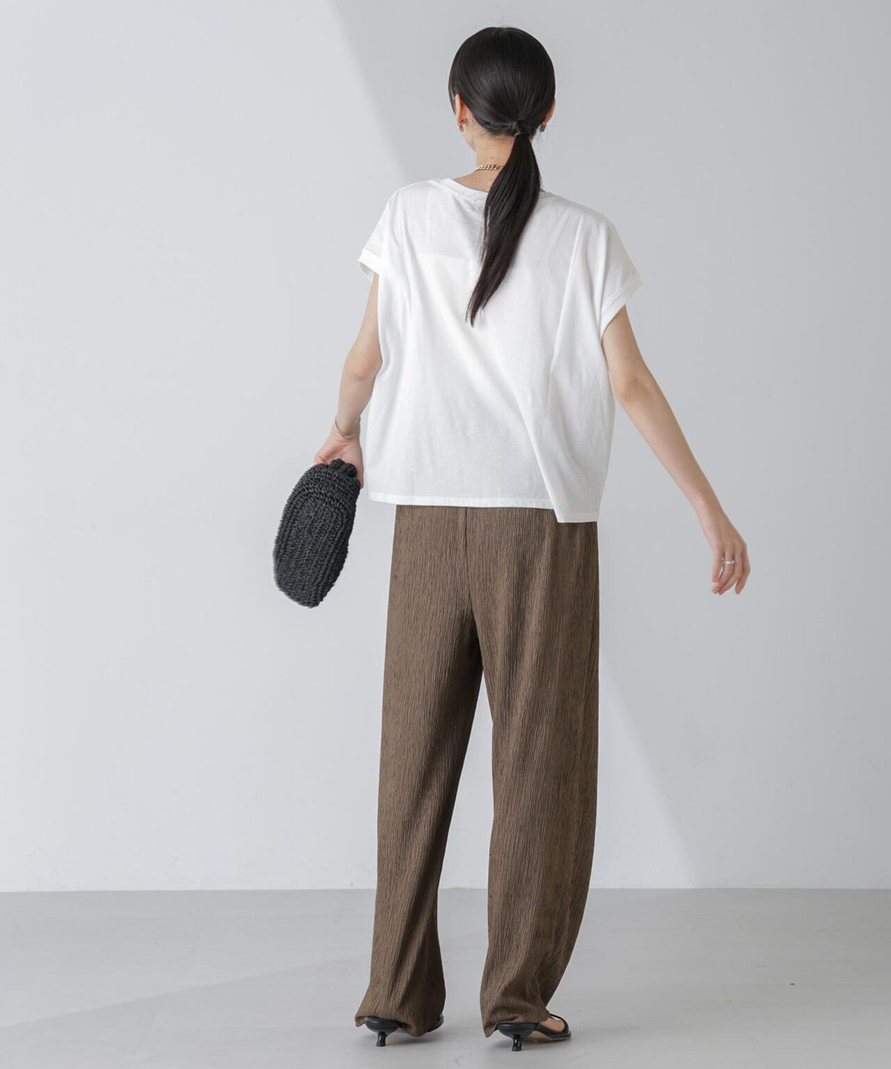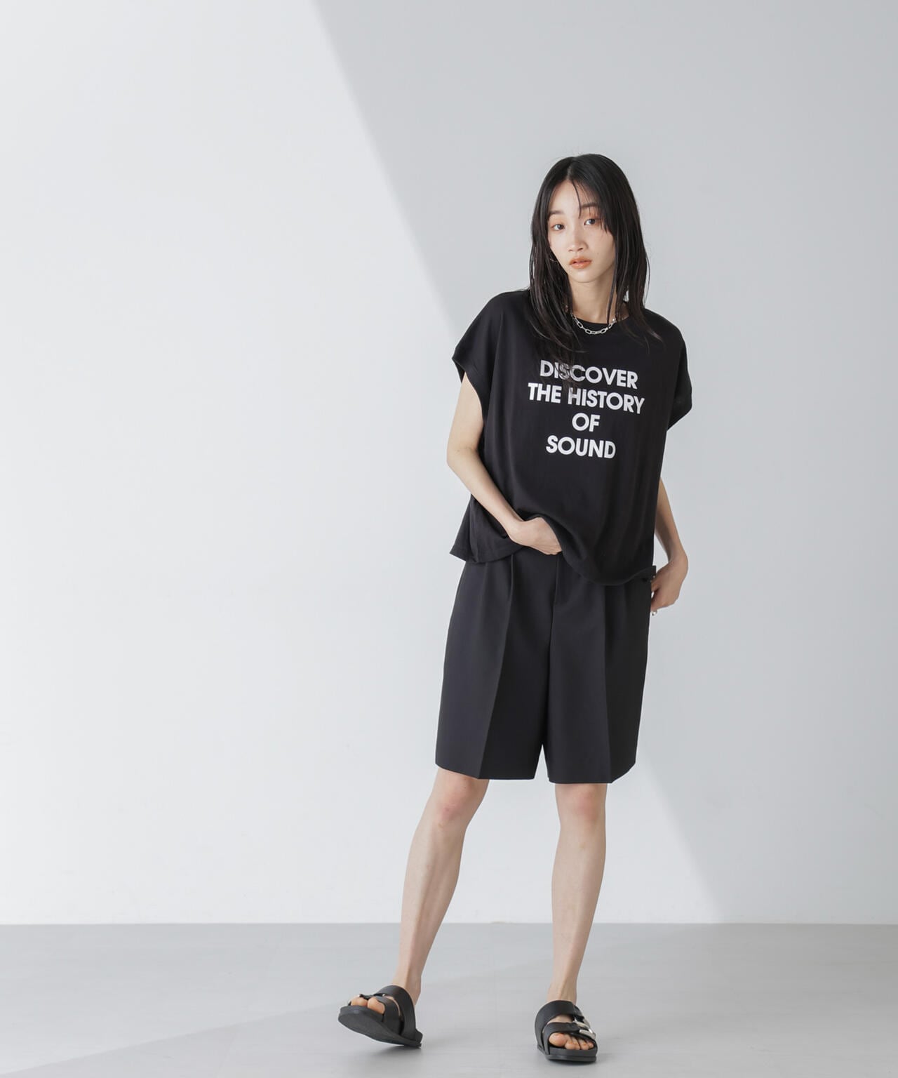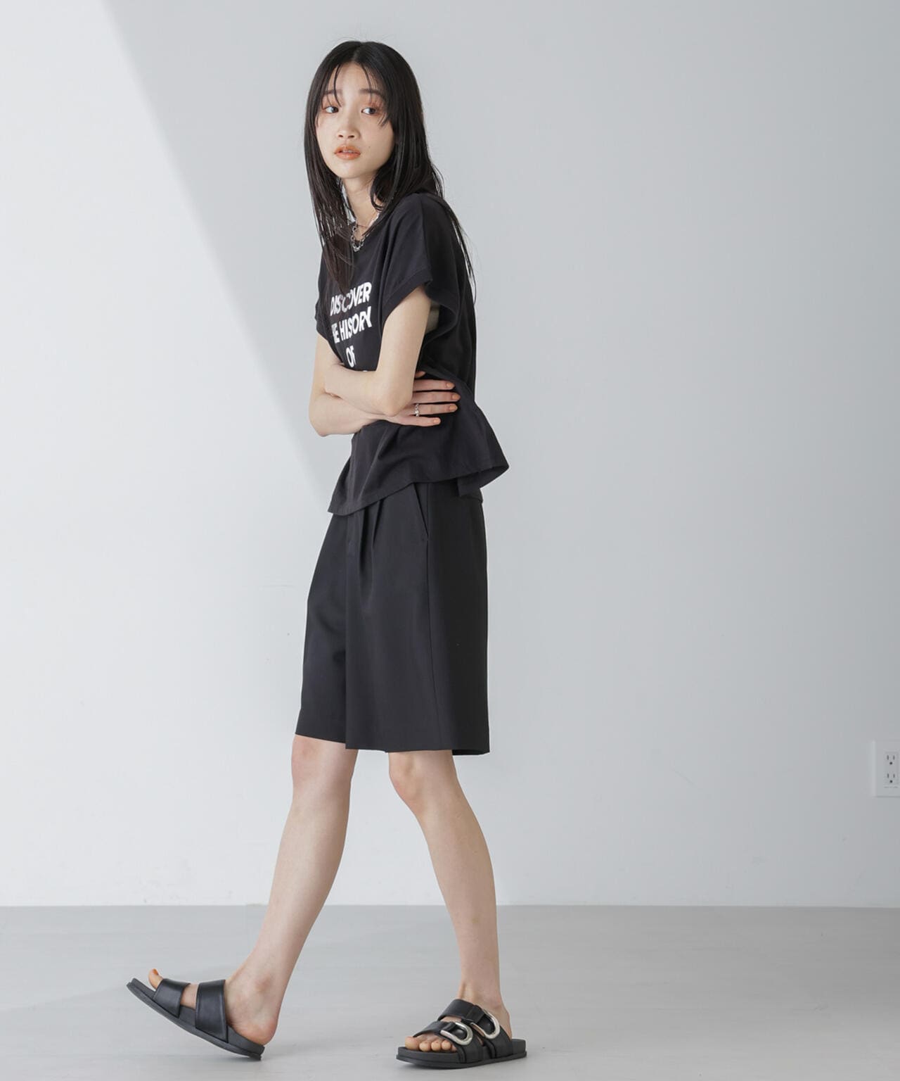 表面感のあるフロッキーロゴが目を引くロゴTシャツ。トレンド見えするややワイドシルエットのクロップド丈で、どんなボトムにも合わせやすいデザイン。サロペットやキャミワンピ、ジャケットなどのインナーとしても着回せるので、幅広いコーディネートを楽しめそう!