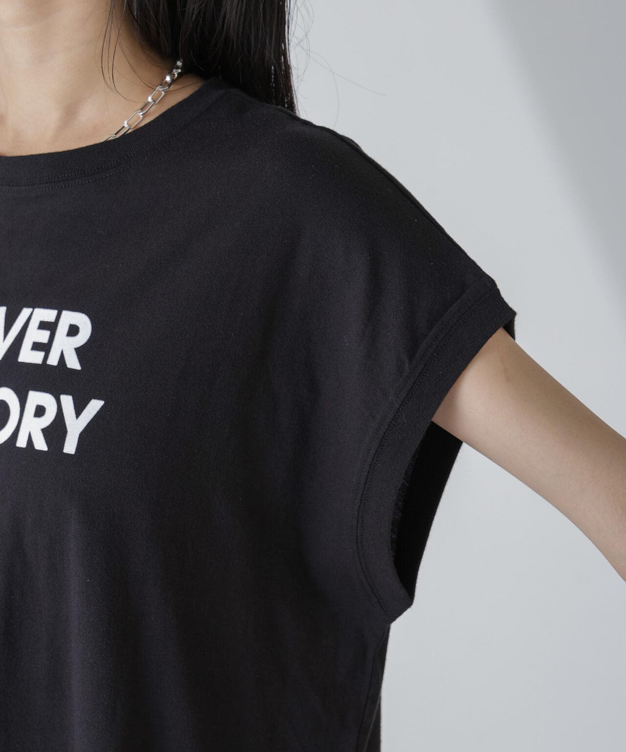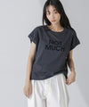 ・表面感のあるフロッキーロゴが目を引くロゴTシャツ