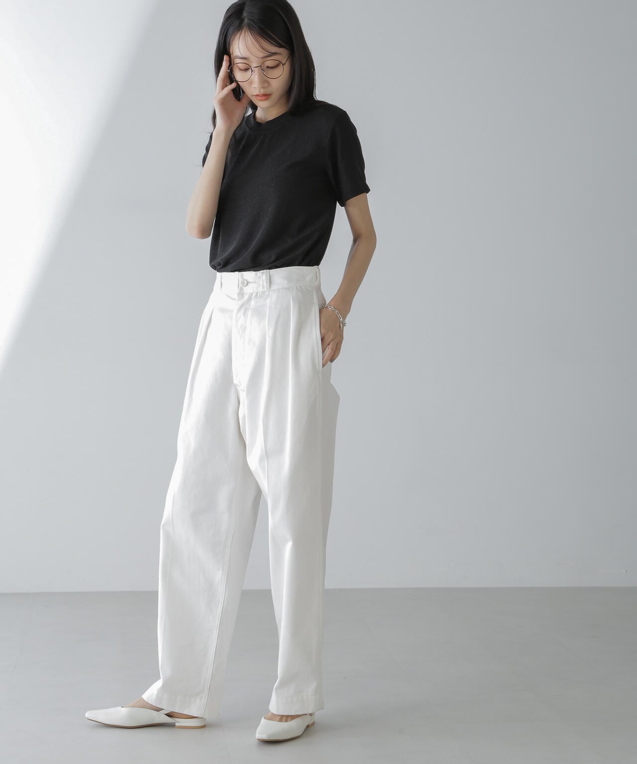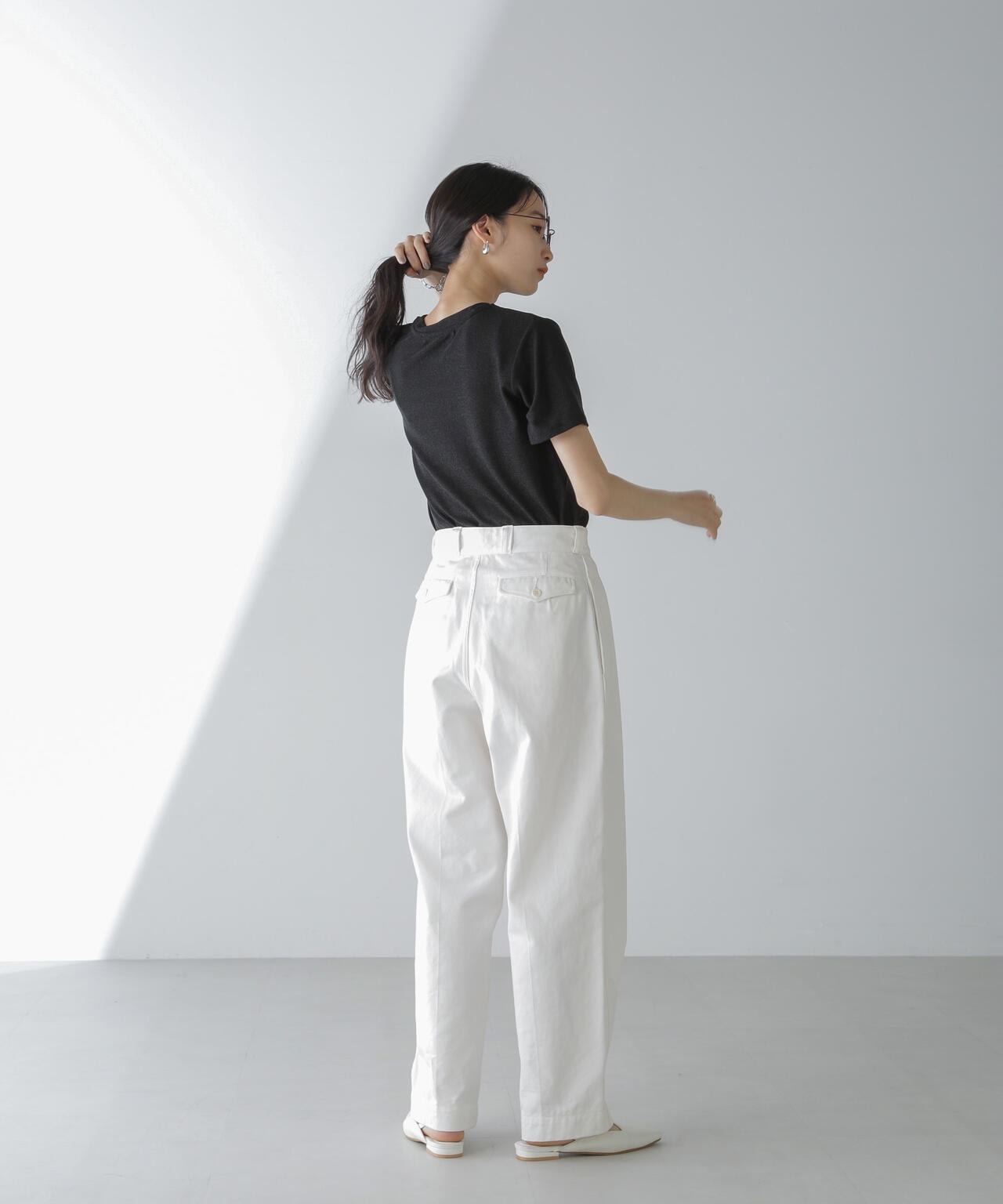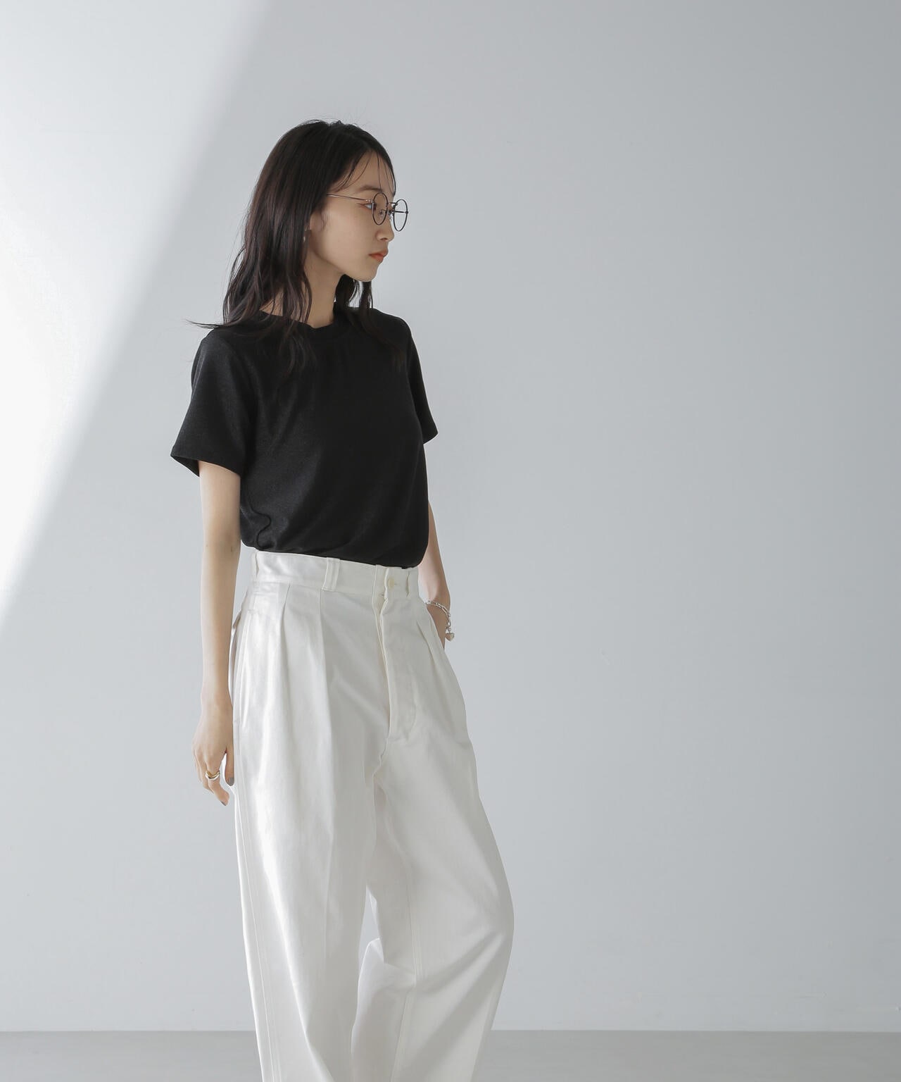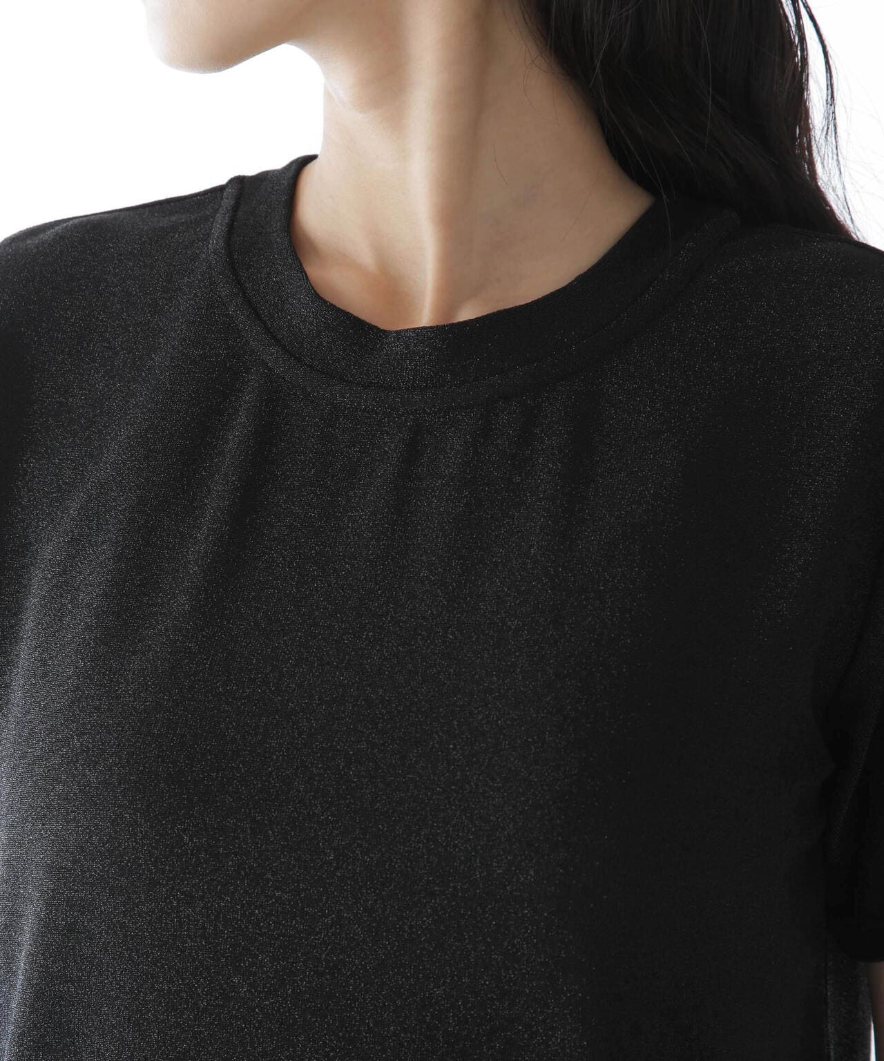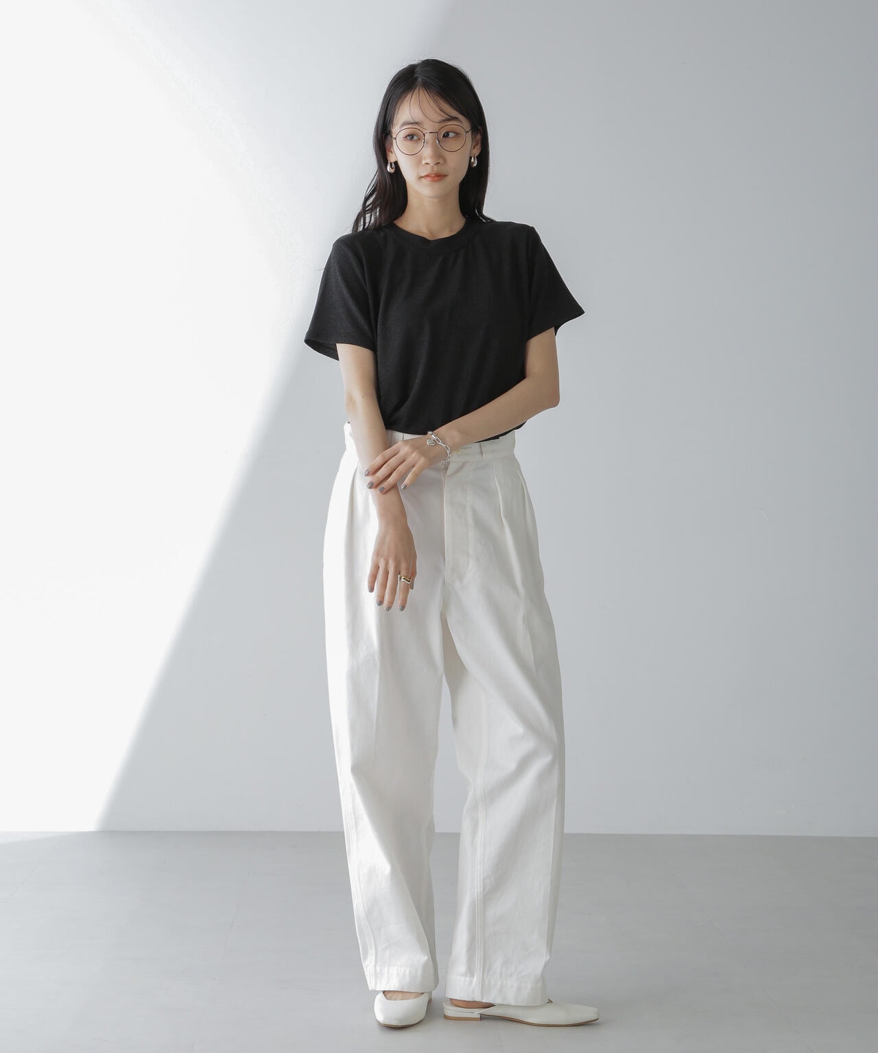 シーズンムードを盛り上げるラメ素材が映えるクルーネックTシャツ。伸縮性のある生地なので着心地が良く、デイリーコーディネートになじみやすい雰囲気がポイント◎。ジャケットやサロペットなどのインナーとしても重宝するから、シーズンレスで持っておきたいアイテムです。