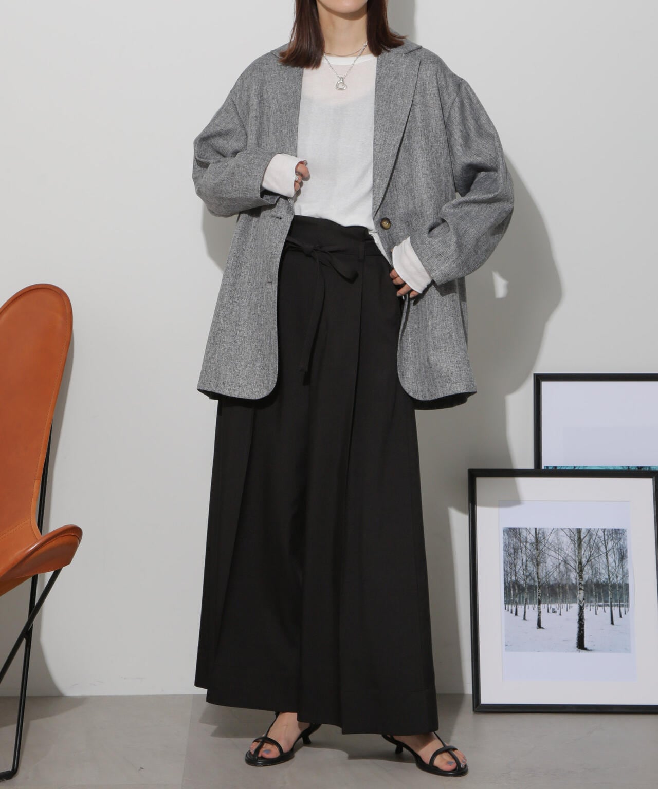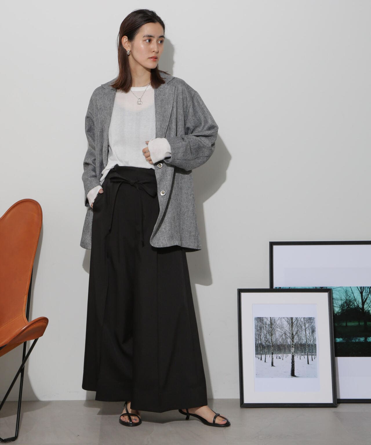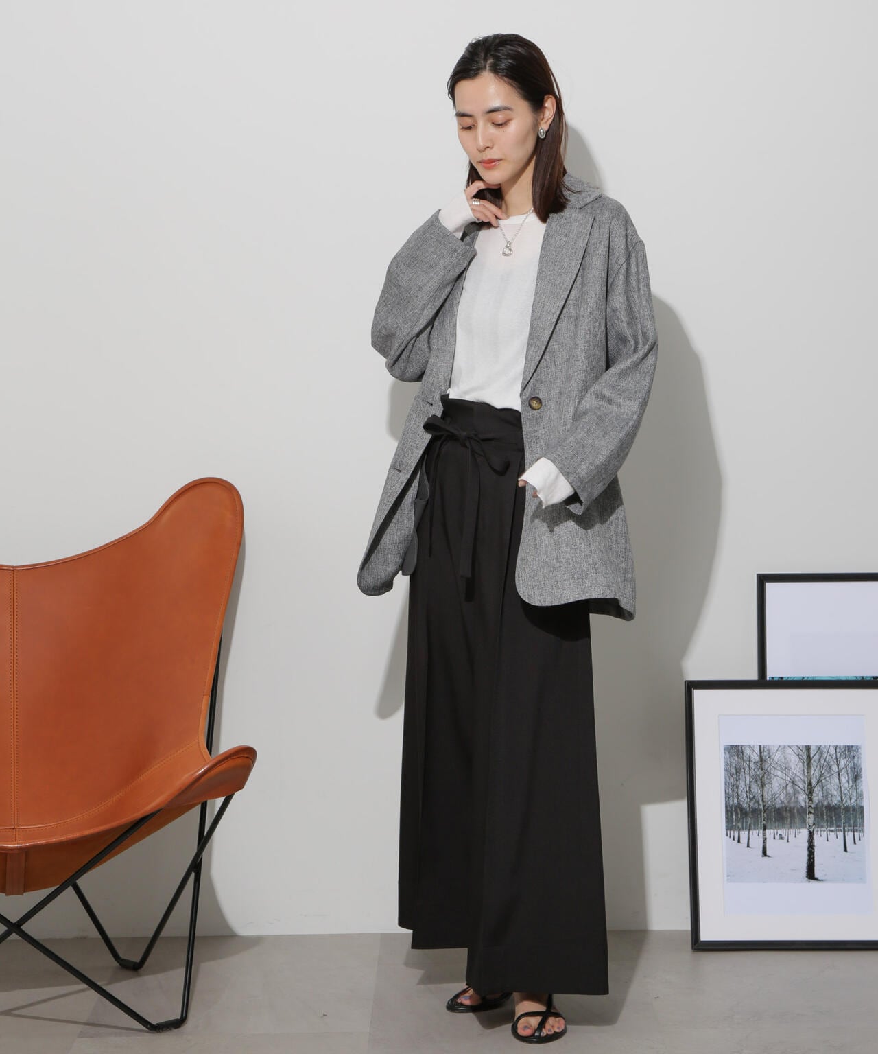 ・スタイルアップが叶うハイウエスト仕様のワイドパンツ