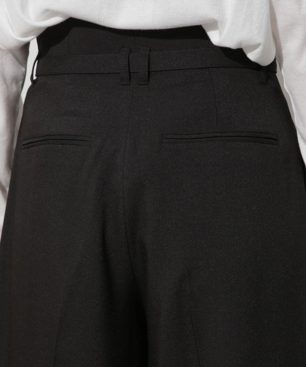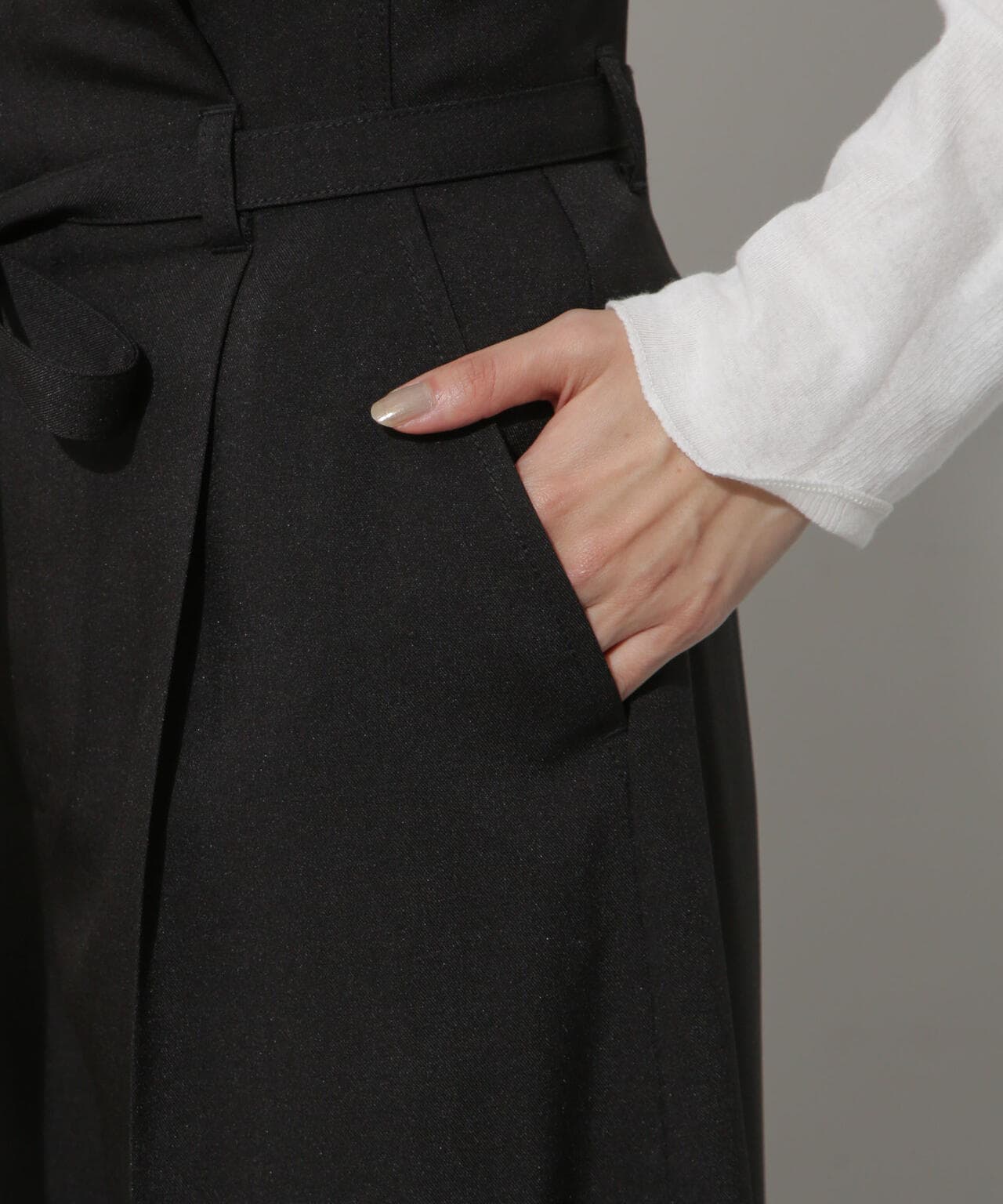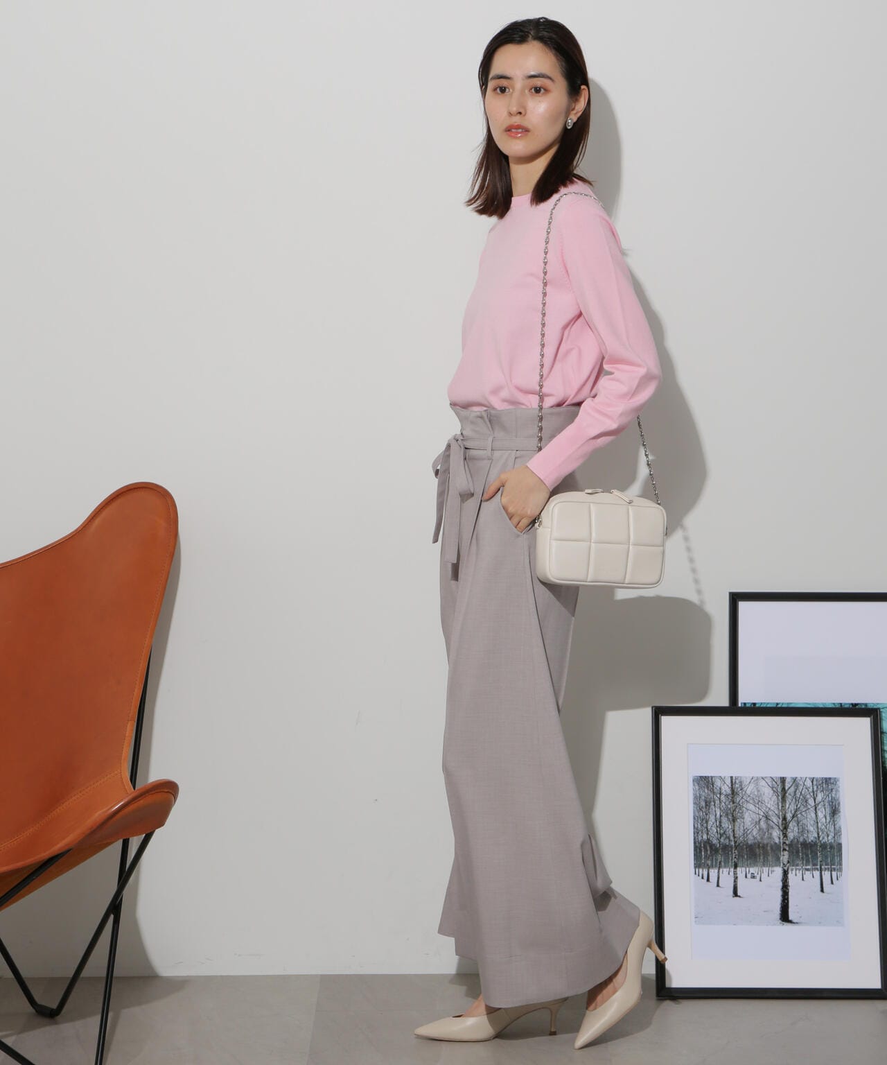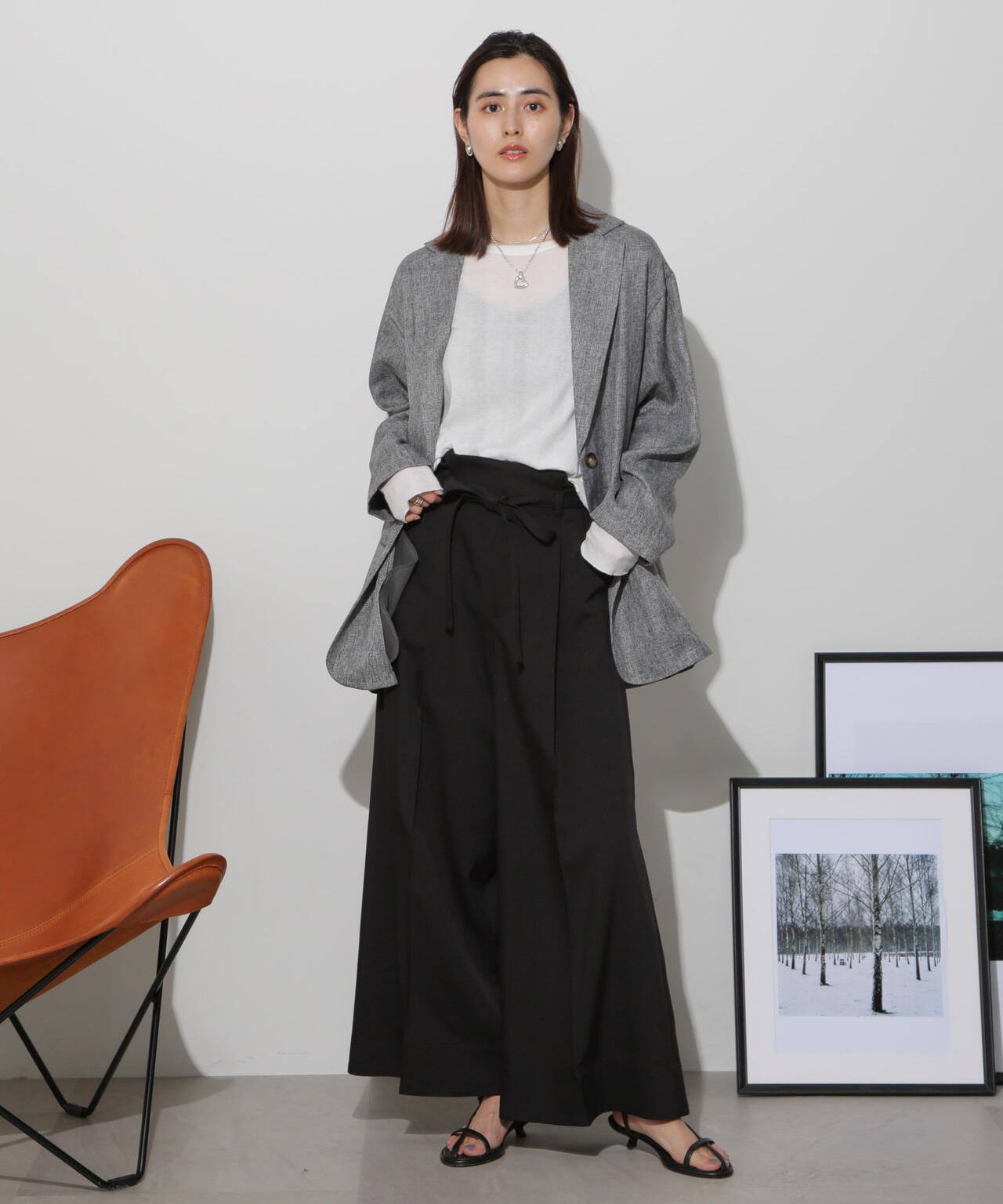 スタイルアップが叶うハイウエスト仕様のワイドパンツ。股上長めのすっきりしたウエスト周りに、今っぽい抜け感を出せるルーズなシルエットが絶妙なバランス。女性らしいウエストマークができる細身の共地ベルト付きで、タイトなトップスをインするだけで様になります。