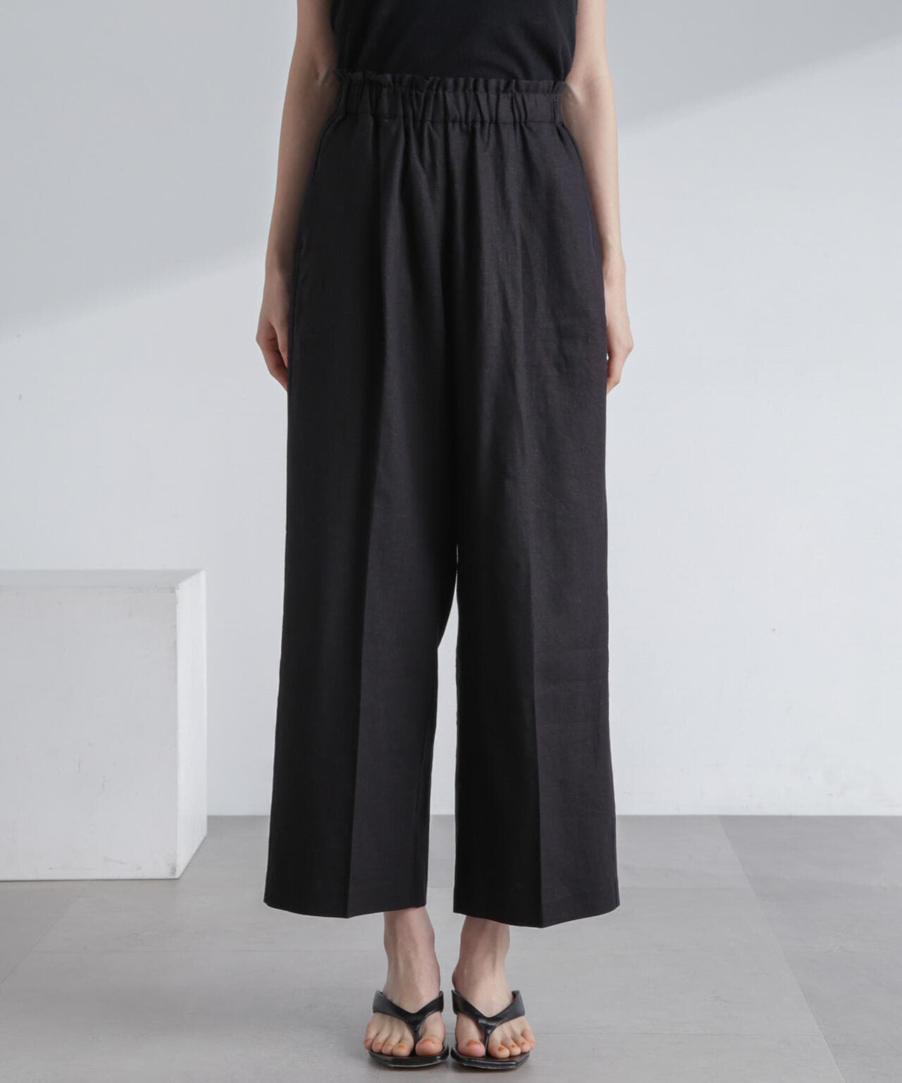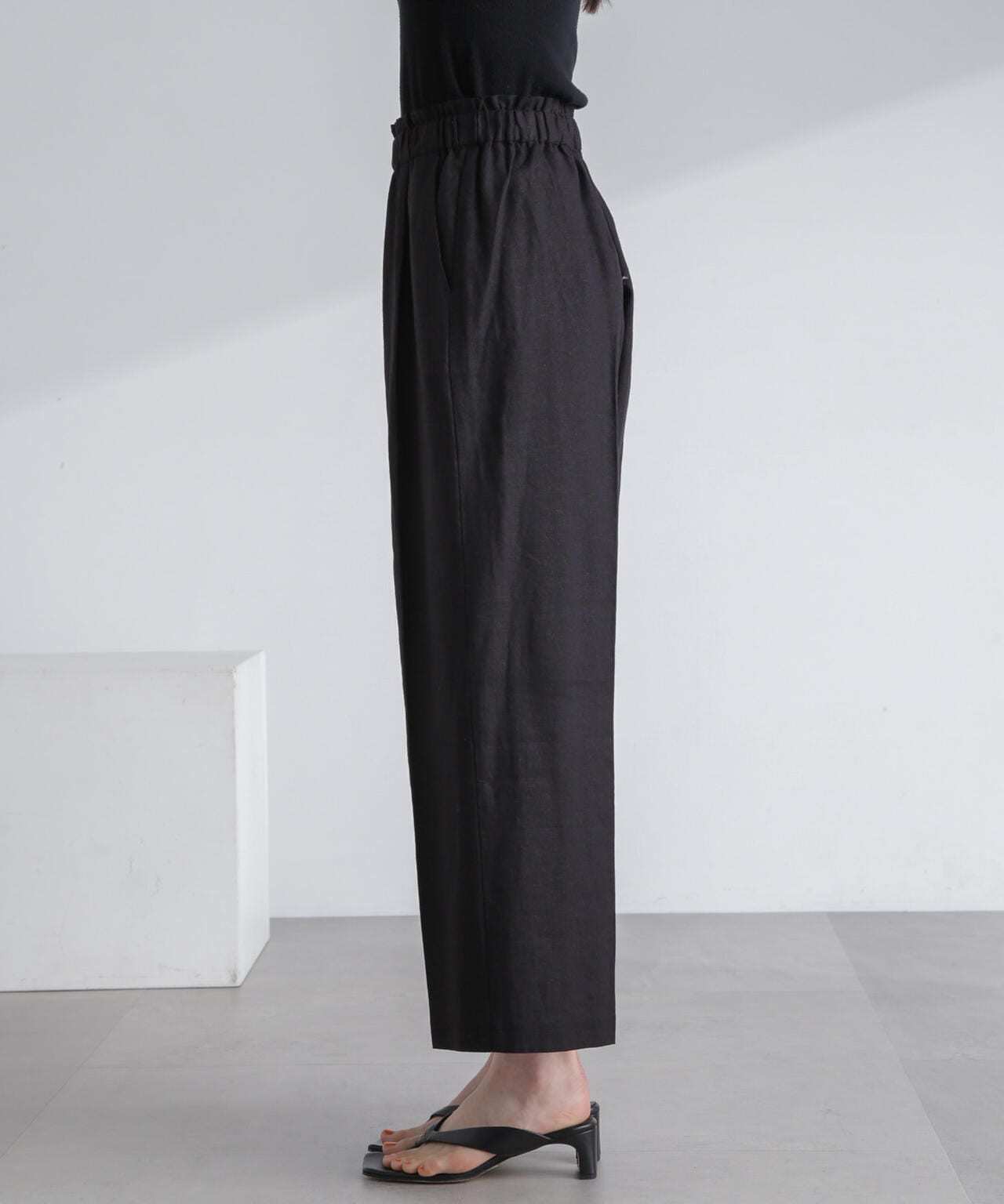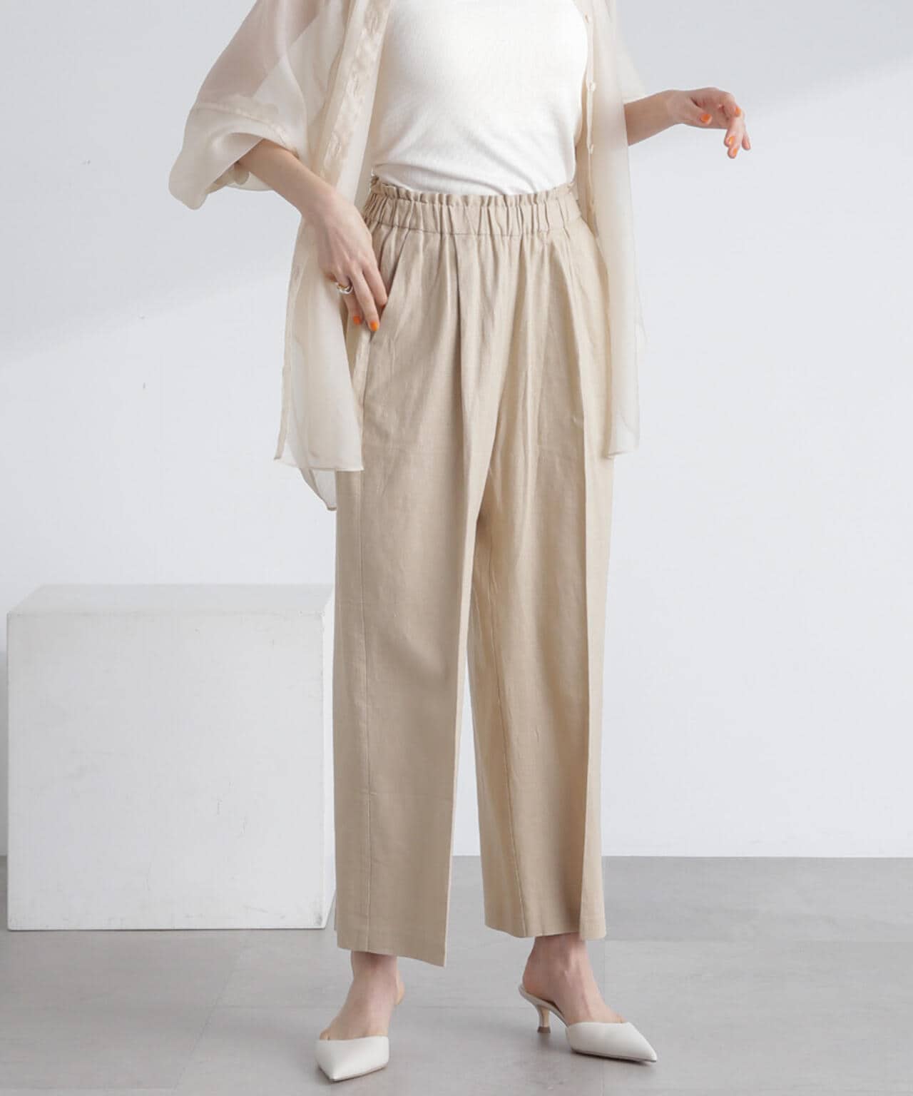 フレンチリネン混タックワイドパンツ