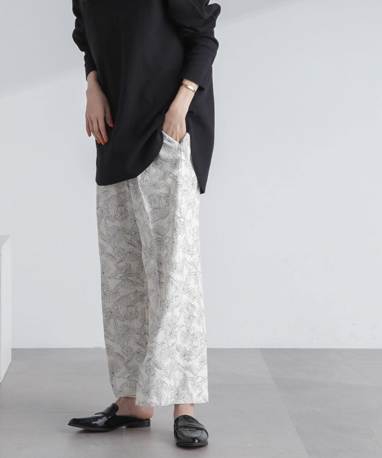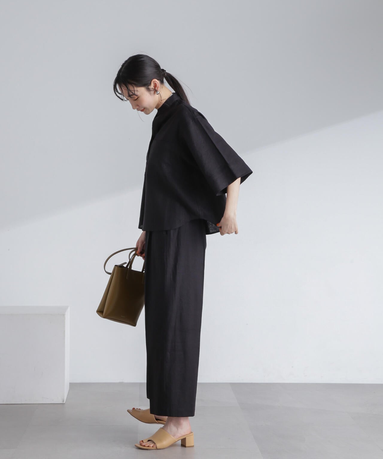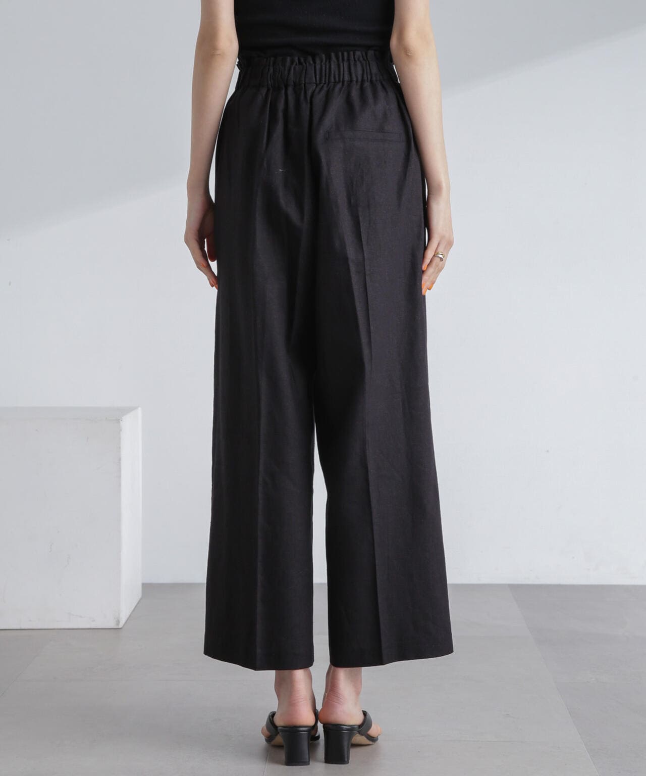 フレンチリネン混タックワイドパンツ