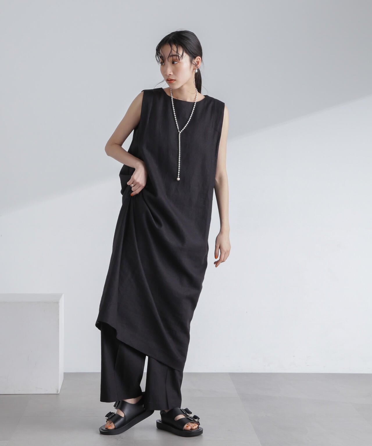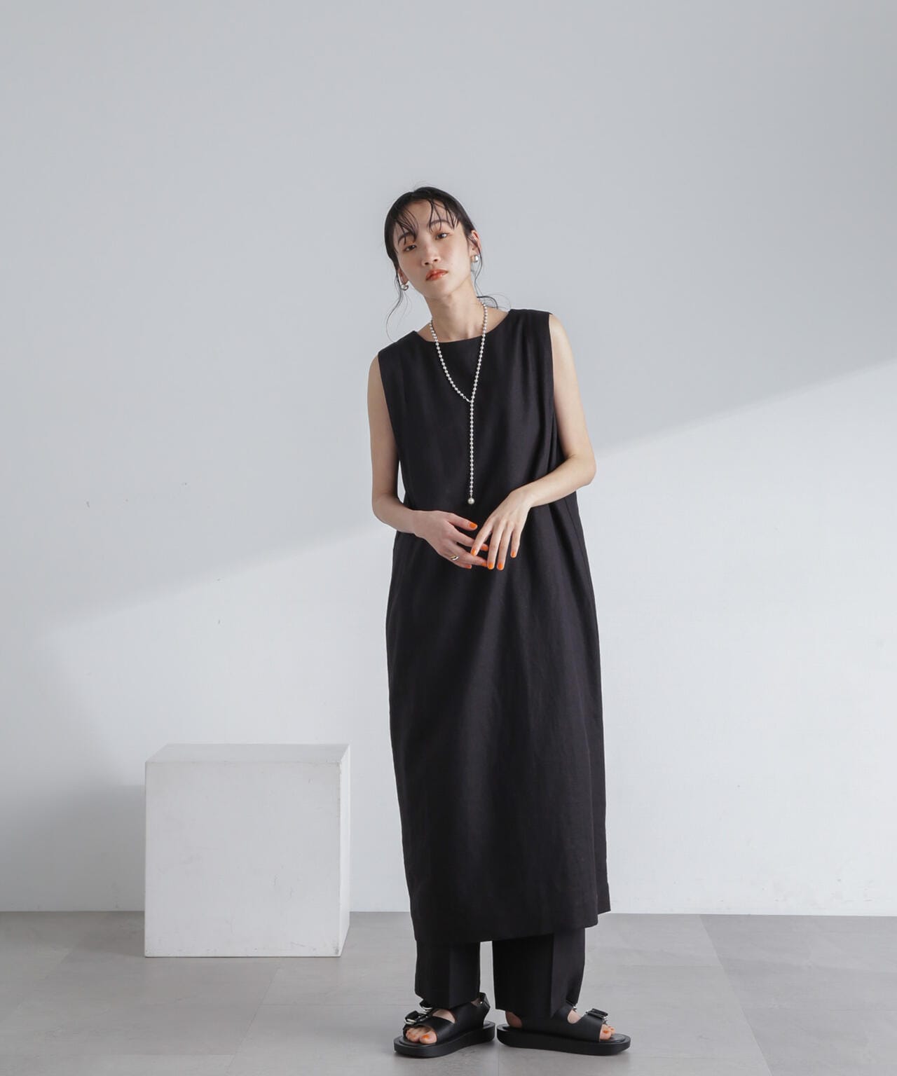 6734119317 フレンチリネン混ノースリーブワンピース
