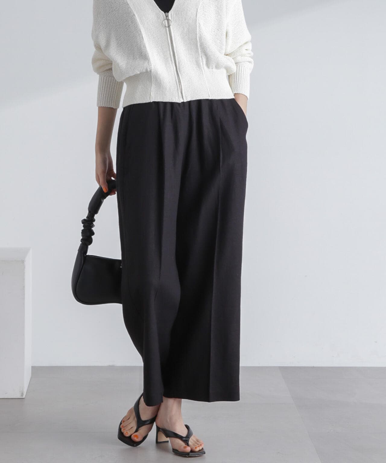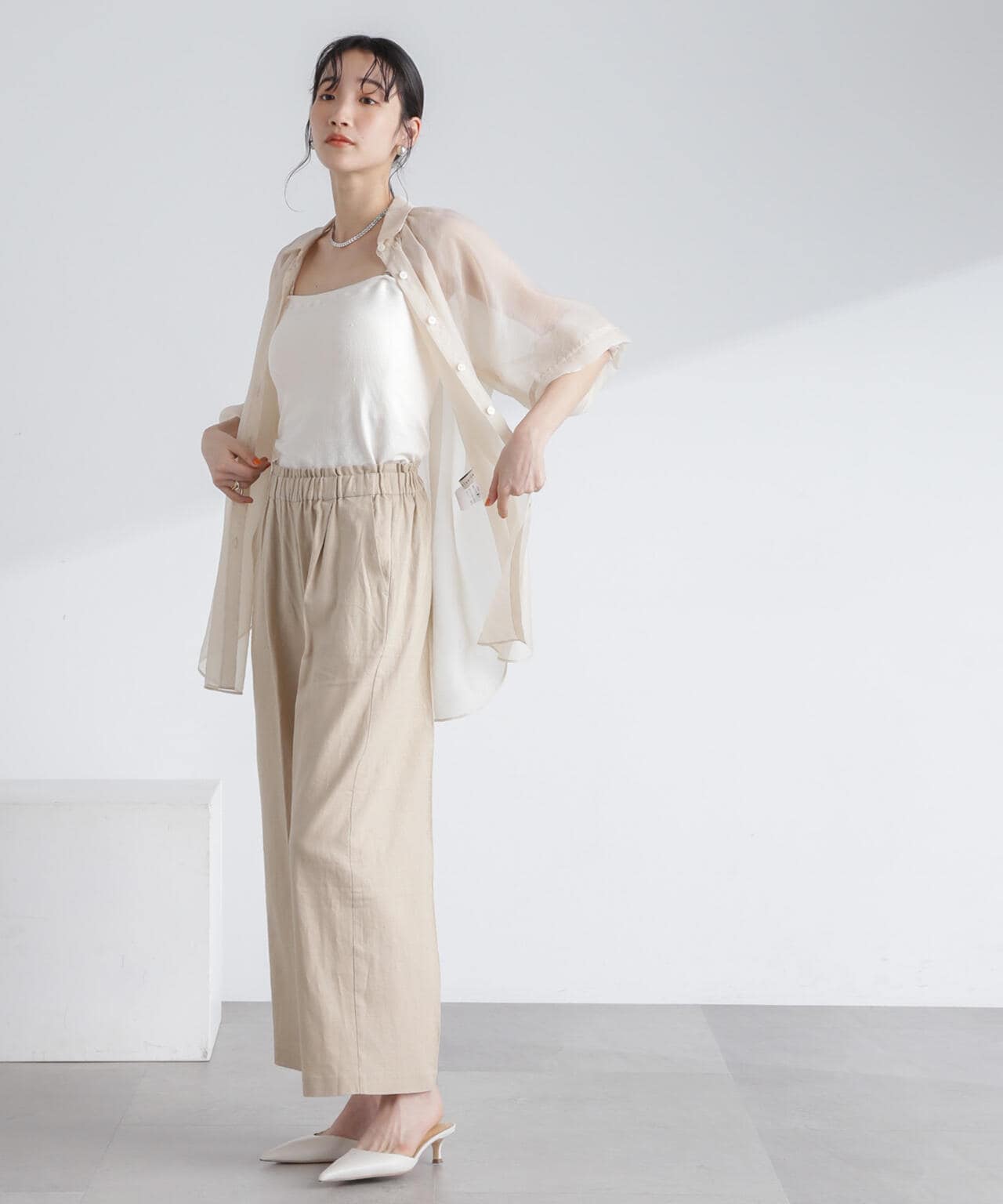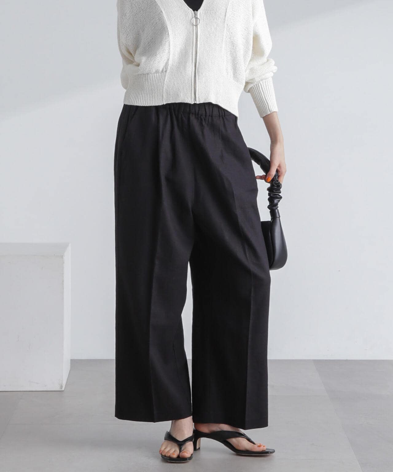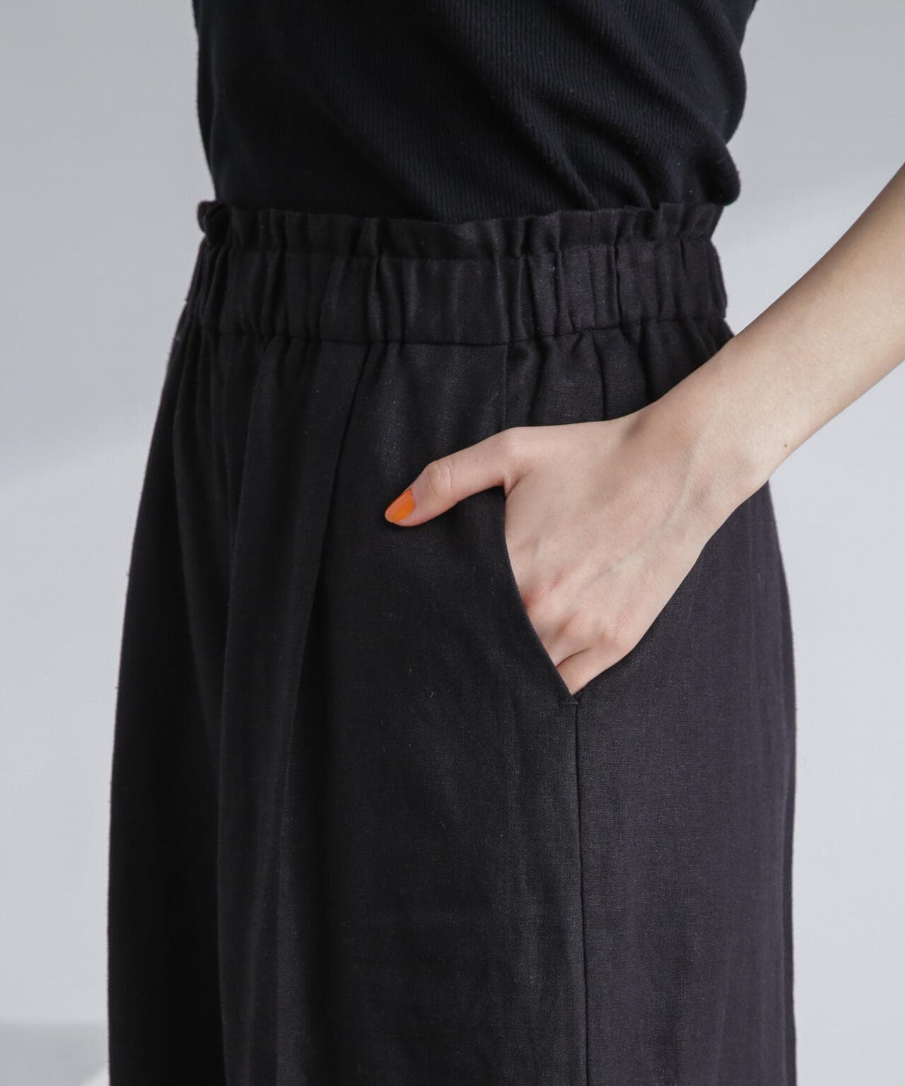 ・ナチュラルな風合いが魅力のフレンチリネン混素材のワイドパンツ