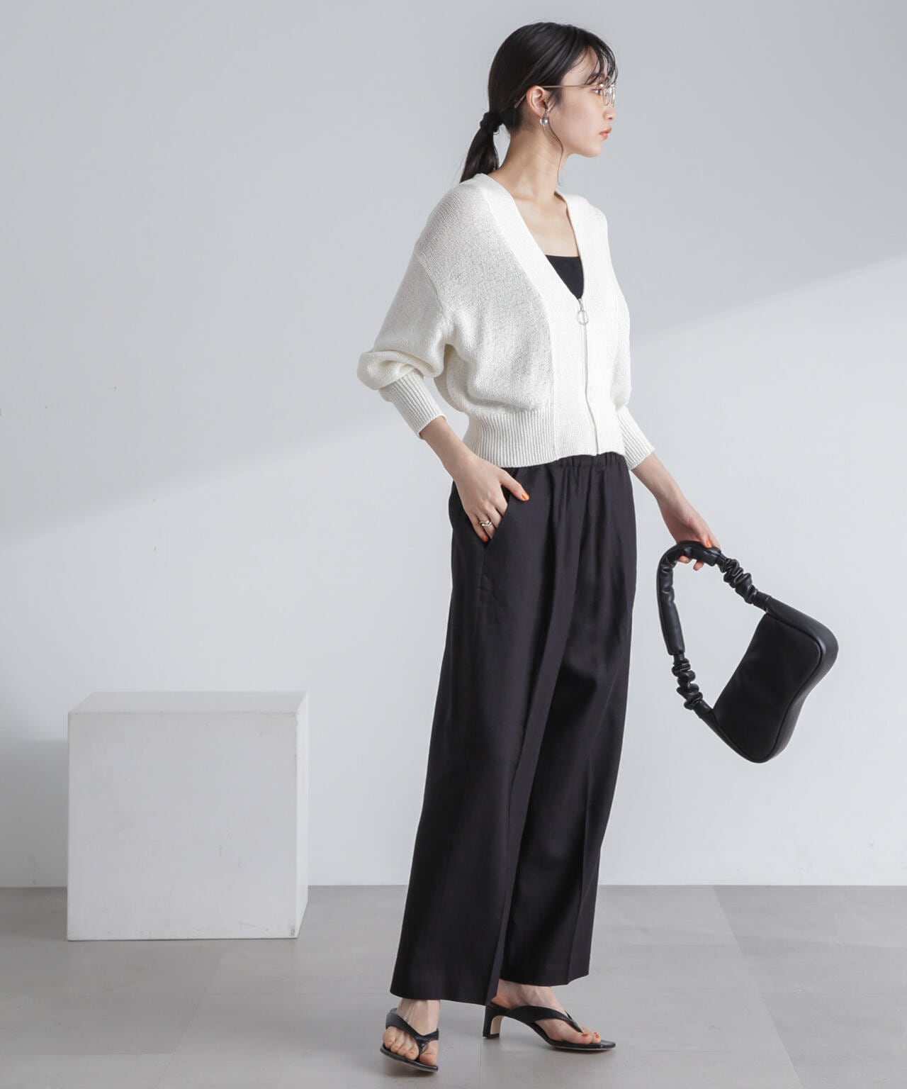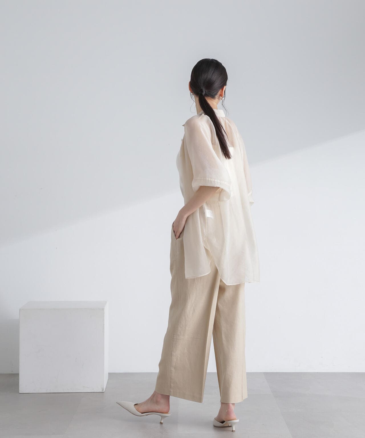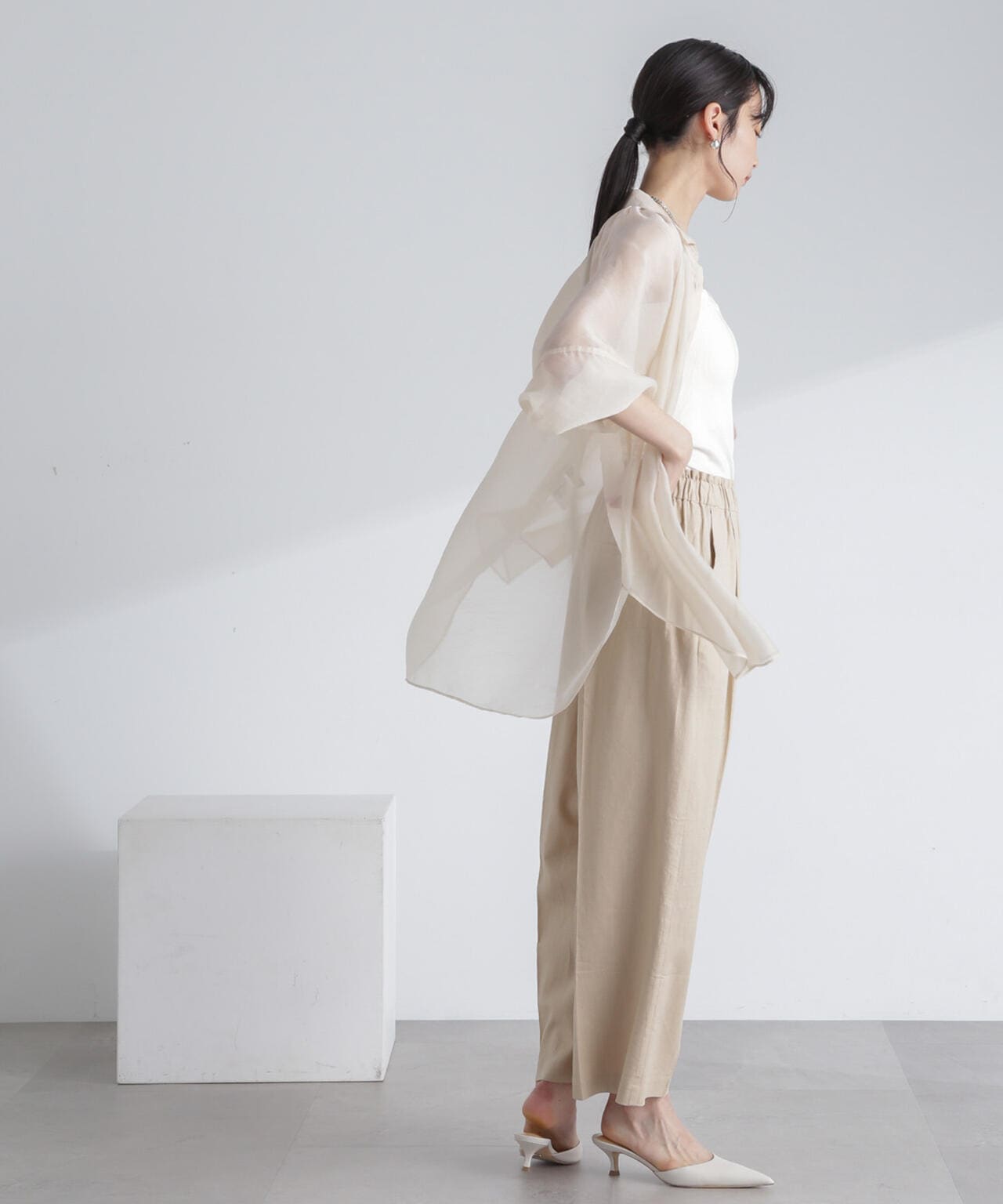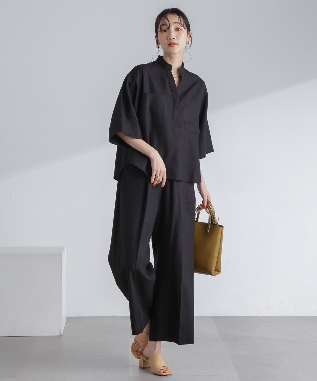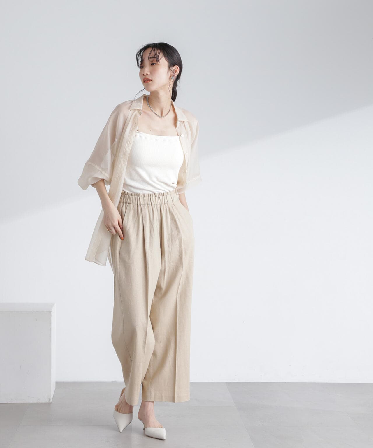 ・ナチュラルな風合いが魅力のフレンチリネン混素材のワイドパンツ