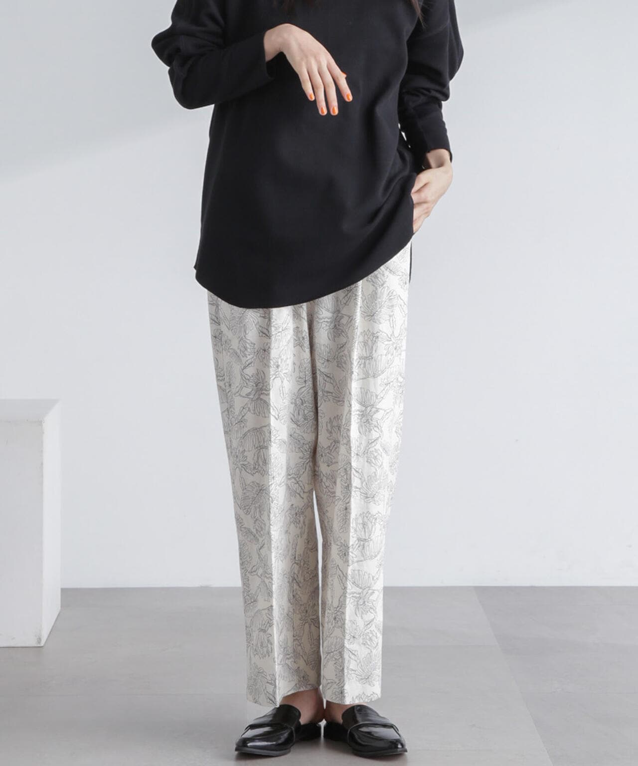 ナチュラルな風合いが魅力のフレンチリネン混素材のドロストパンツ。ワンタックとセンタープレスを効かせたキレイ目なシルエットながらも、ウエストゴム仕様でリラクシーな穿き心地。シンプルでどんなスタイルにも合わせやすく、同素材のブラウスやワンピースとセットアップコーデも素敵です。