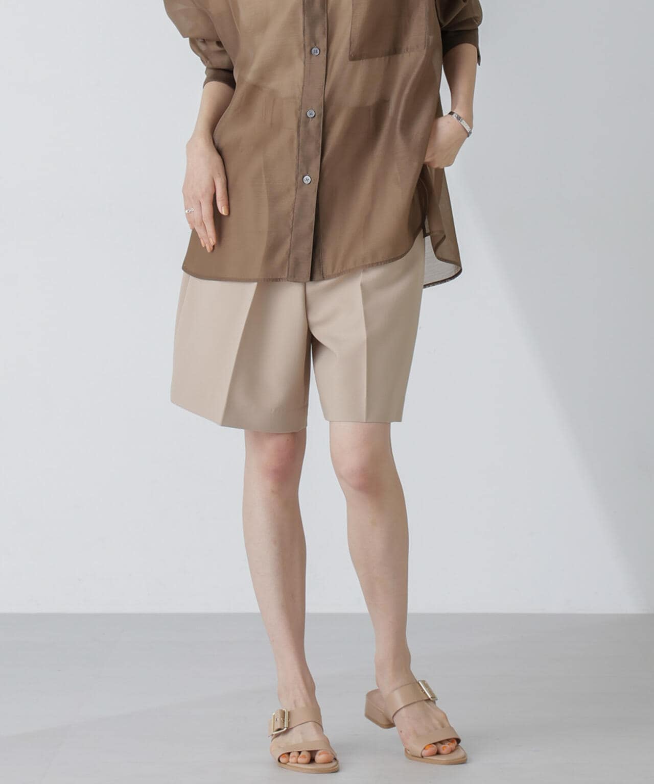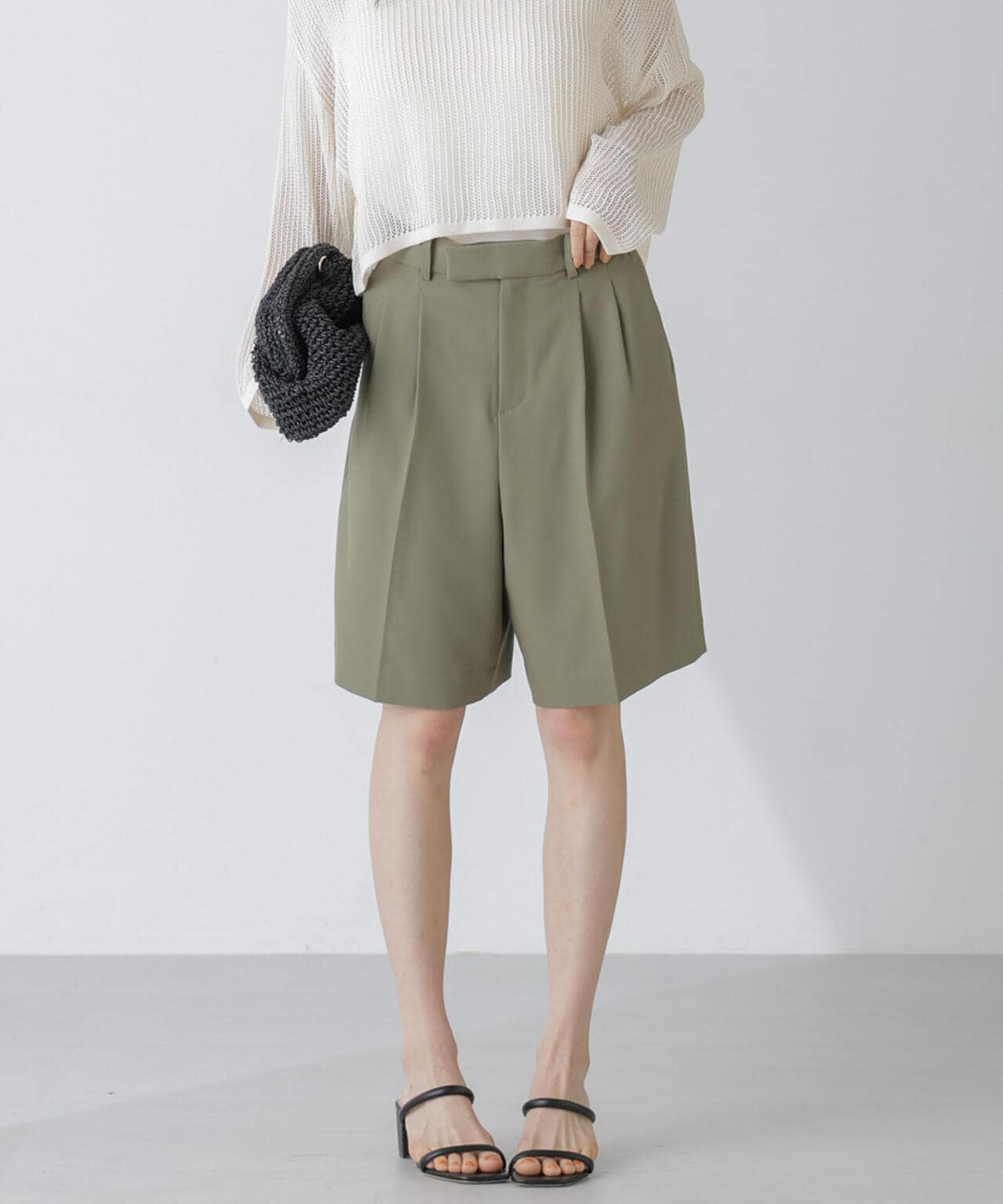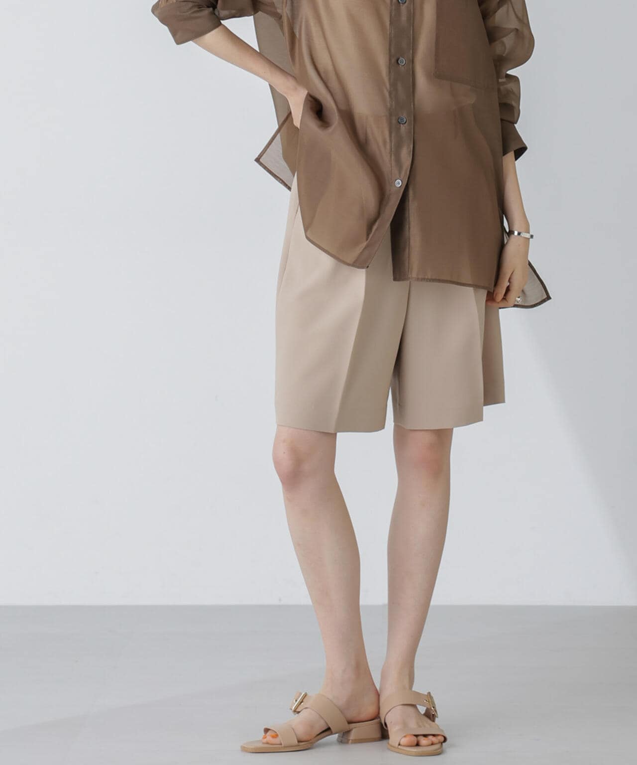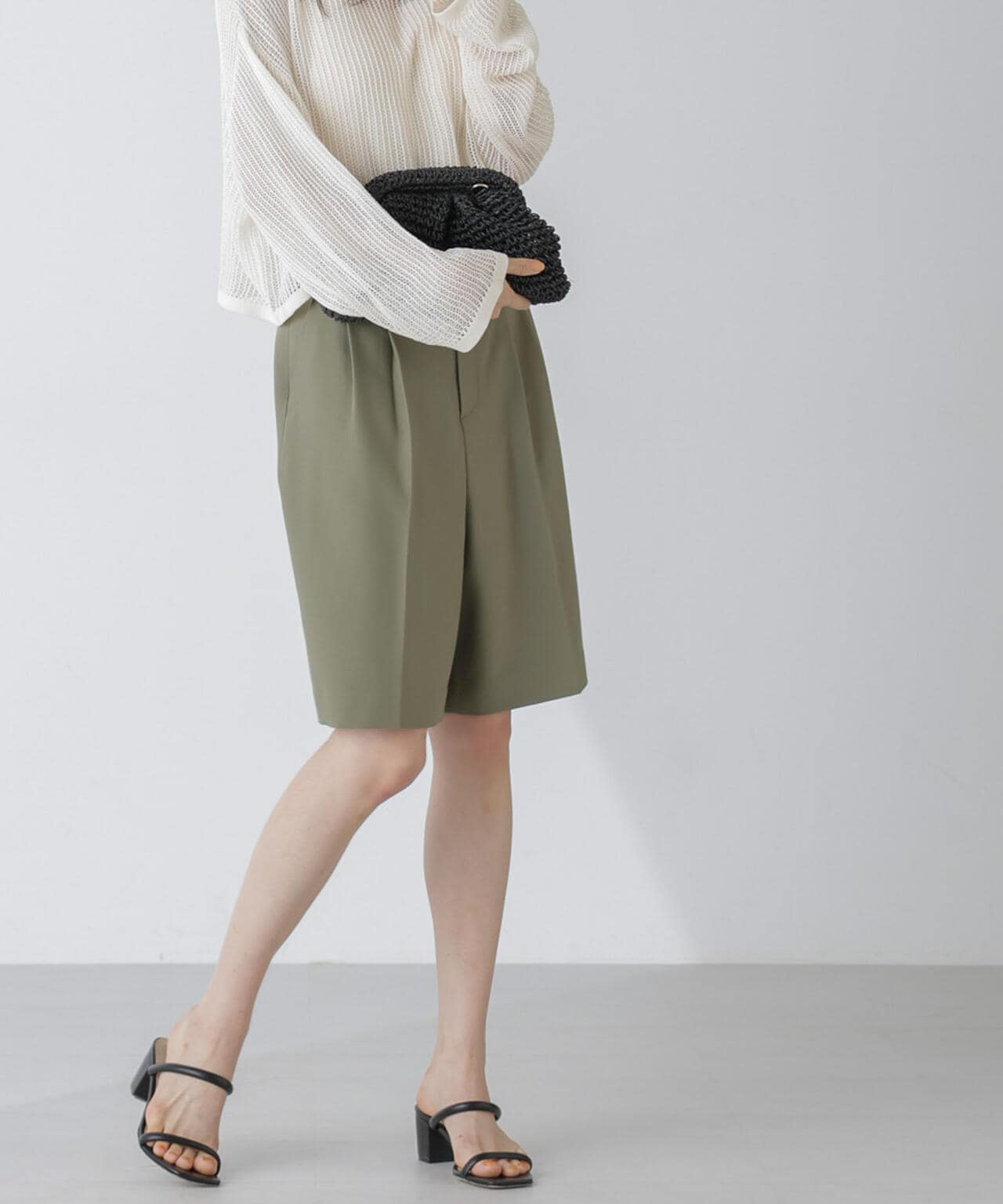 大人カジュアルスタイルにピッタリなキレイ目ショートパンツ。落ち感のある柔らかな素材を使用して、短すぎない着丈とタック分量のあるシルエットで上品な印象に仕上げました。ビッグサイズのトップスやシンプルなTシャツ、大き目のジャケットを合わせて、トレンド感あるスタイリングも素敵です。